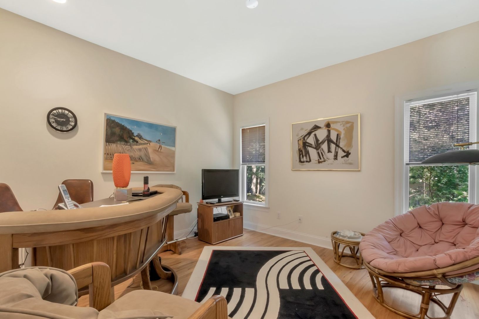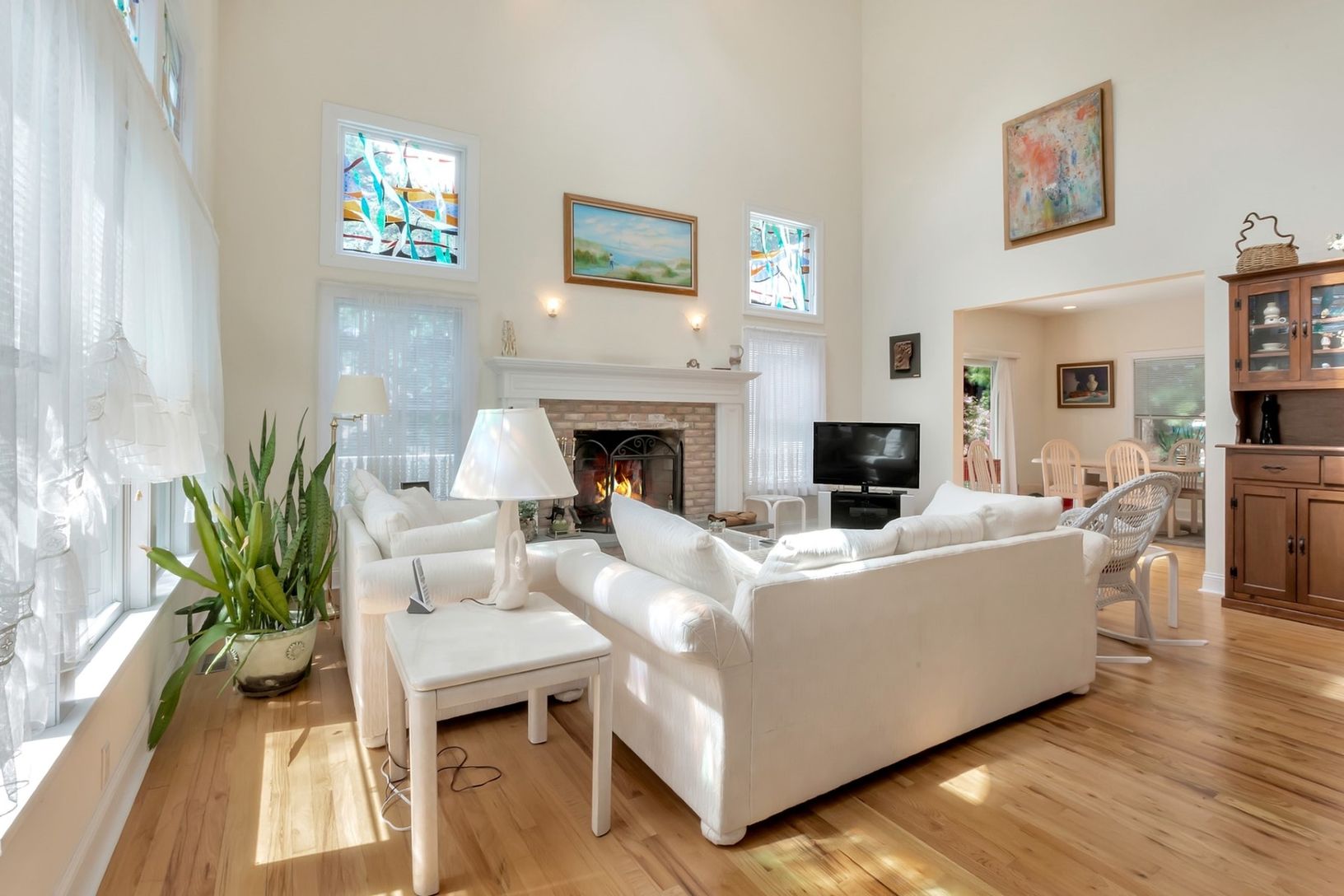 Well maintained traditional home located in East Hampton Village fringe offers the perfect summer getaway. The cathedral ceiling and open floor plan create a light and bright feeling perfect for entertaining. The one of a kind stained glass inserts in the top windows are by a famous artist: Inge. This 4 bedroom, 3 and 1/2 bath home features a separate office /den off the kitchen, spacious dining area and living room complete with fireplace. Ma