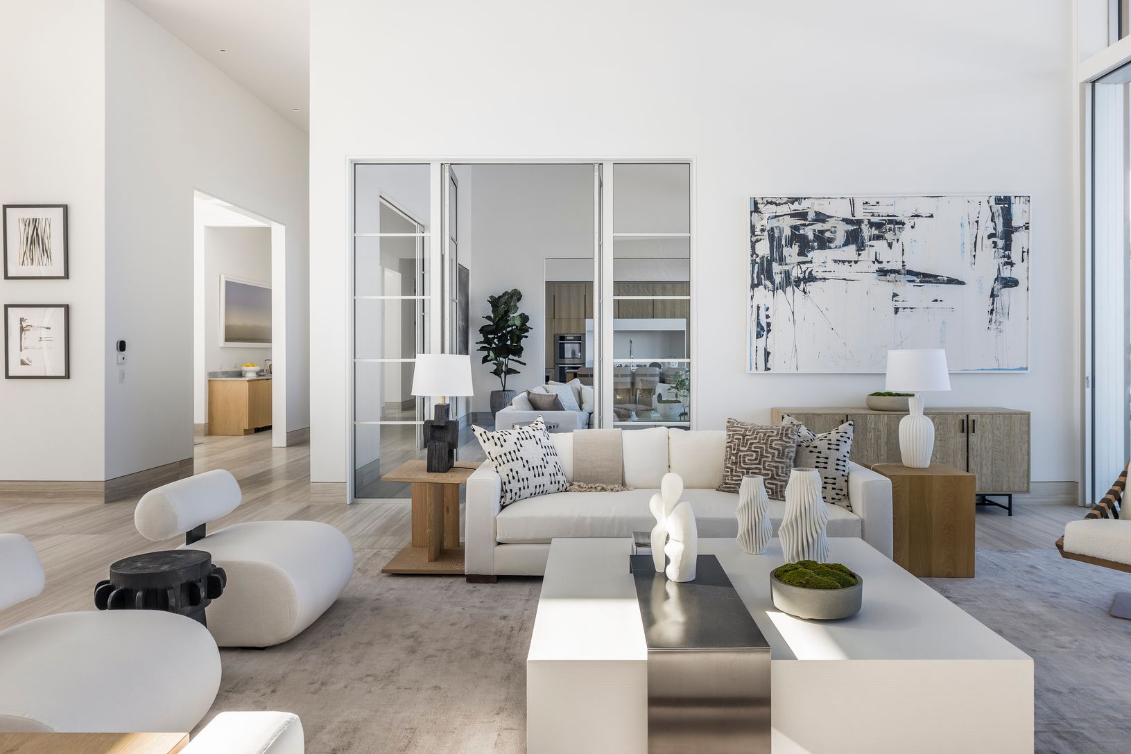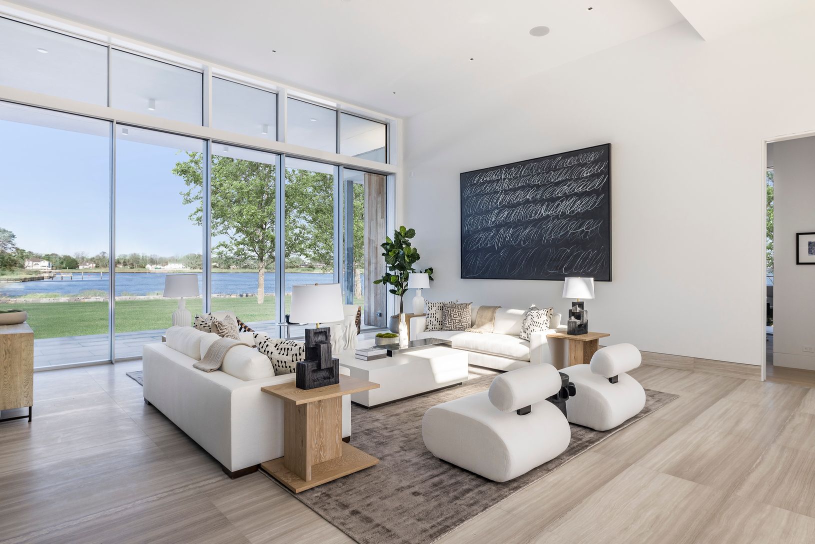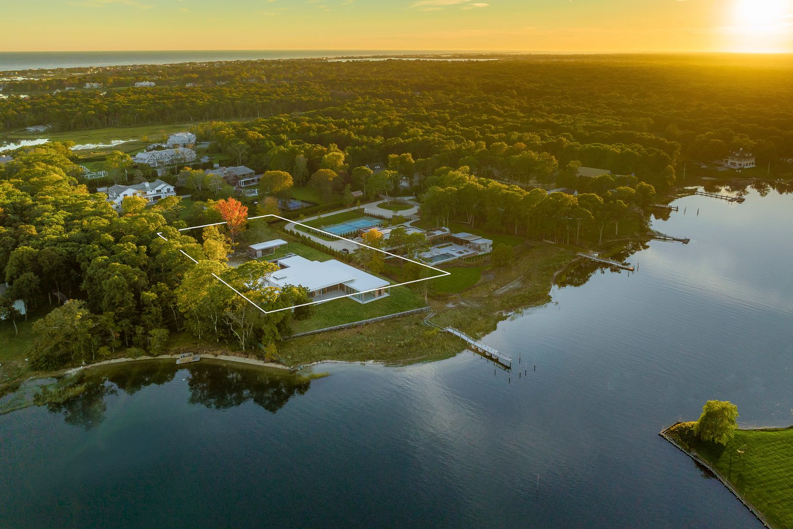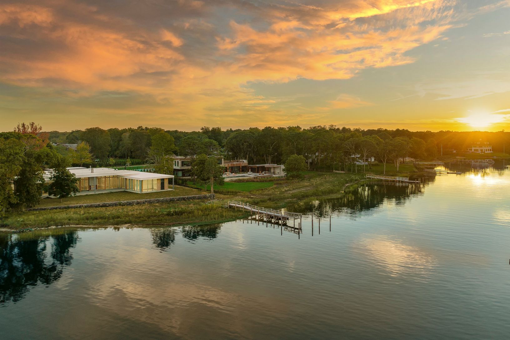 Welcome to 27 Bay Road. Enjoy high-end modern design, easy single-level living and stunning waterfront views in this just completed new-construction compound featuring a seven-bedroom main residence, pool, spacious cabana and boat dock. This 2.22-acre sanctuary on a protected Quogue Village inlet is perfect for boat lovers. Offering +/- 7,000 square feet of sleek living space, the main house impresses with chic contemporary style and an open-p