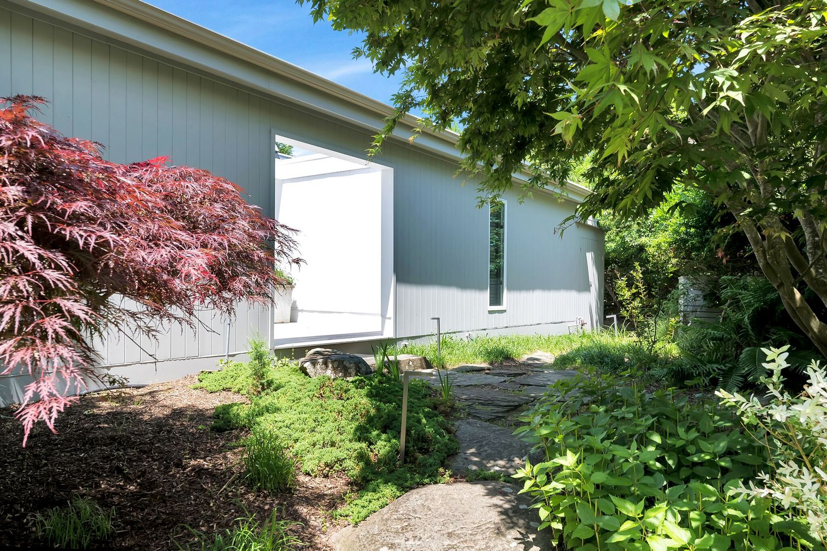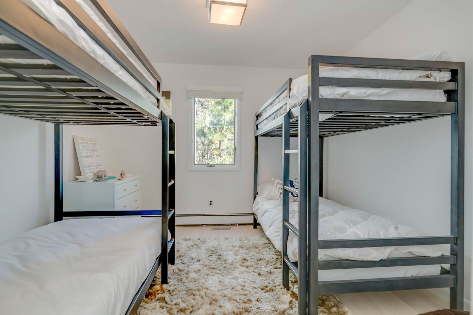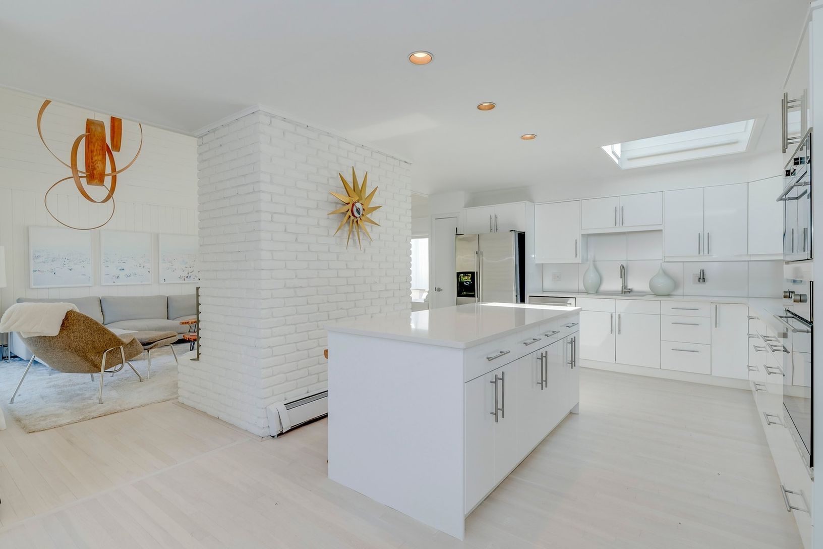 Modern one story. 4 bedrooms, 2 baths beach house with heated gunite pool tucked away for privacy; just a short distance to a sandy ocean beach. Large living room with fireplace, open eat-in kitchen and den all leading to the very private deck to enjoy the sunsets overlooking acres of dunes reserve.