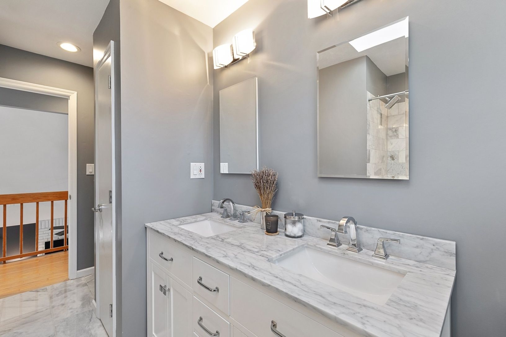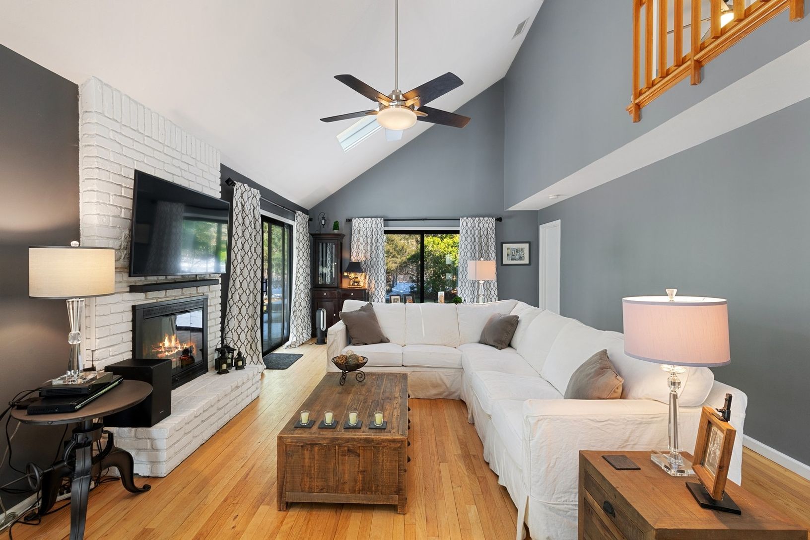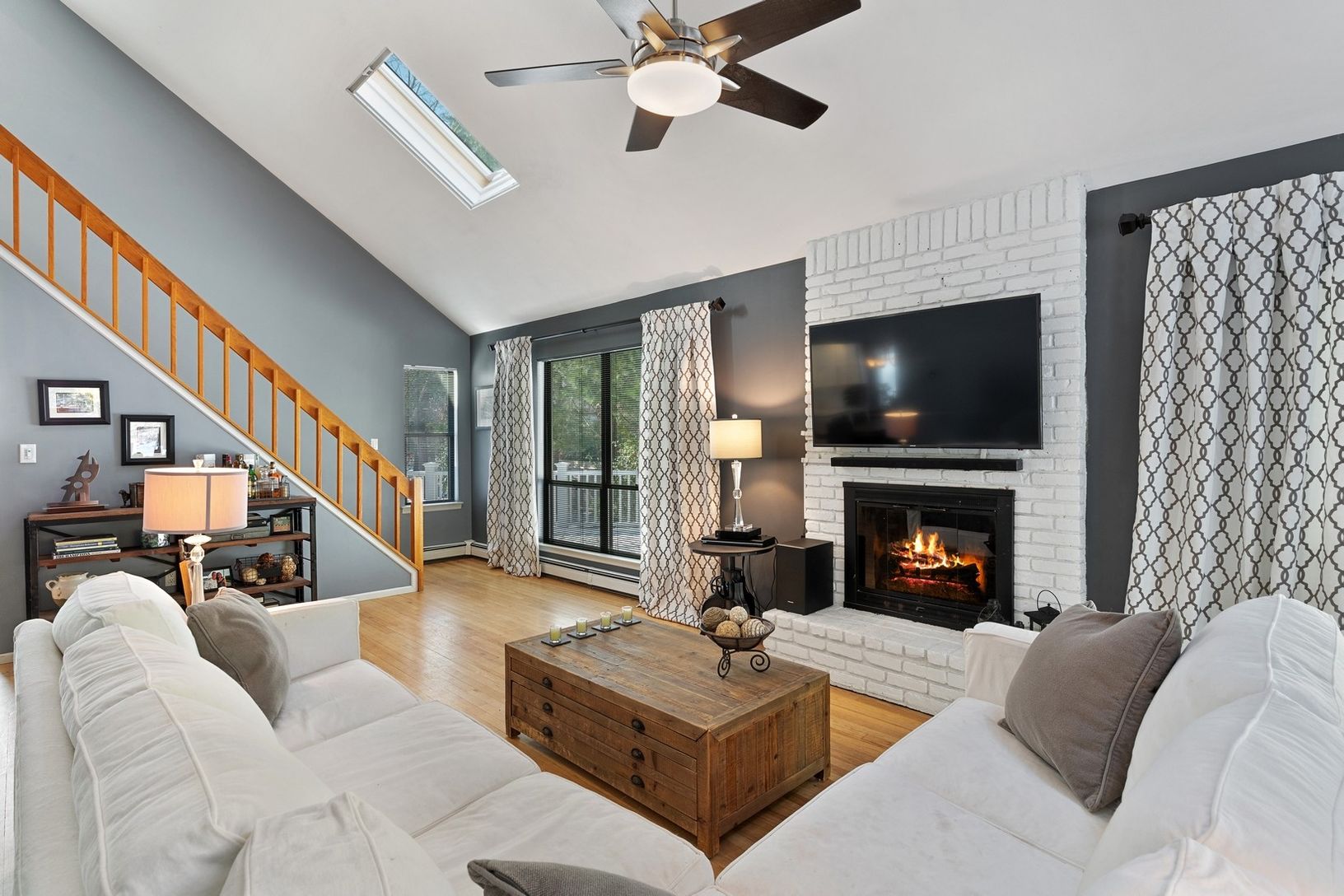 Newly listed, recently renovated and just minutes away from East Hampton Village, Wainscott and Sag Harbor. This comfortable contemporary has 3 bedrooms and 2.5 baths. Entry foyer leads you into the living room with cathedral ceilings, skylights and a wood burning fireplace. There are sliding glass doors that lead to the large wrap around deck. The chef's kitchen has high-end appliances and opens to the spacious dining area. There is ample