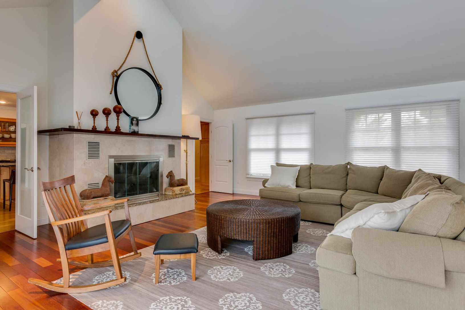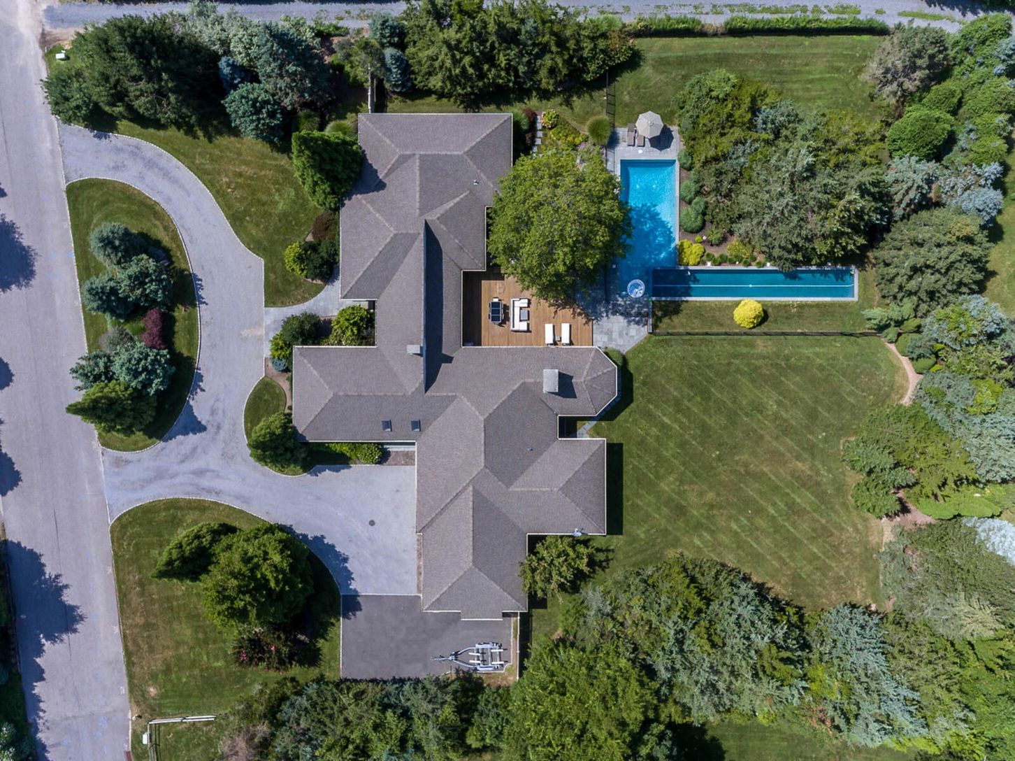 5400 sq ft home with 6 bedrooms, 4.5 baths all on one level. Situated on 1.3 acres, features include sun-filled living room with fireplace, gourmet eat in kitchen, family room with fireplace, den, formal dining with butlers pantry, Master suite, jr master suite and 4 additional bedrooms. A screened in porch with fireplace overlooks the private yard complete with outdoor kitchen, 1,000 sq ft deck and blue stone patio surrounding two connected h
