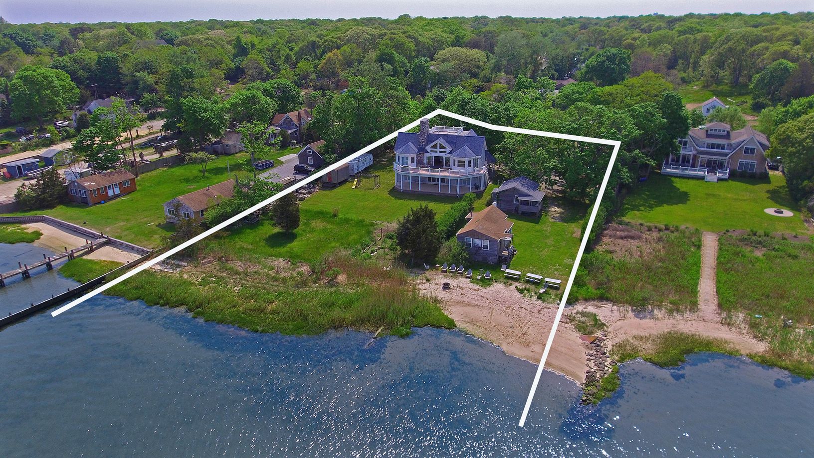 Situated on 1.2 +/- waterfront acres, this four bed & three & a half bath home offers 186' +/- of frontage on the open bay, complete with sandy beach! The spacious, light-filled 2nd story open floor plan frames picturesque views of the Shinnecock Bay from every room. Rooftop access from the loft provides sweeping waterviews. Zoned RWB, two cottages on the property allow for additional living space or income potential. First time on t