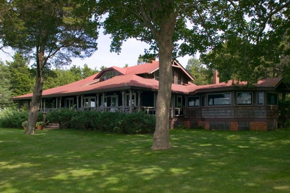 A one-of-a-kind waterfront compound on Peconic bay in a very private setting. Property is sub-divided into 4 parcels...3 on land, one on beach. Parcel #1 has main house and small guest house, #2 has barn and large garage with apt above, #3 is a vacant wooded lot and #4 is beachfront (scenic easement). Now you can own a waterfront property as extraordinary as this authentic 1910 Adirondack compound on 5 ½ acres on Little Peconic Bay. Stroll a