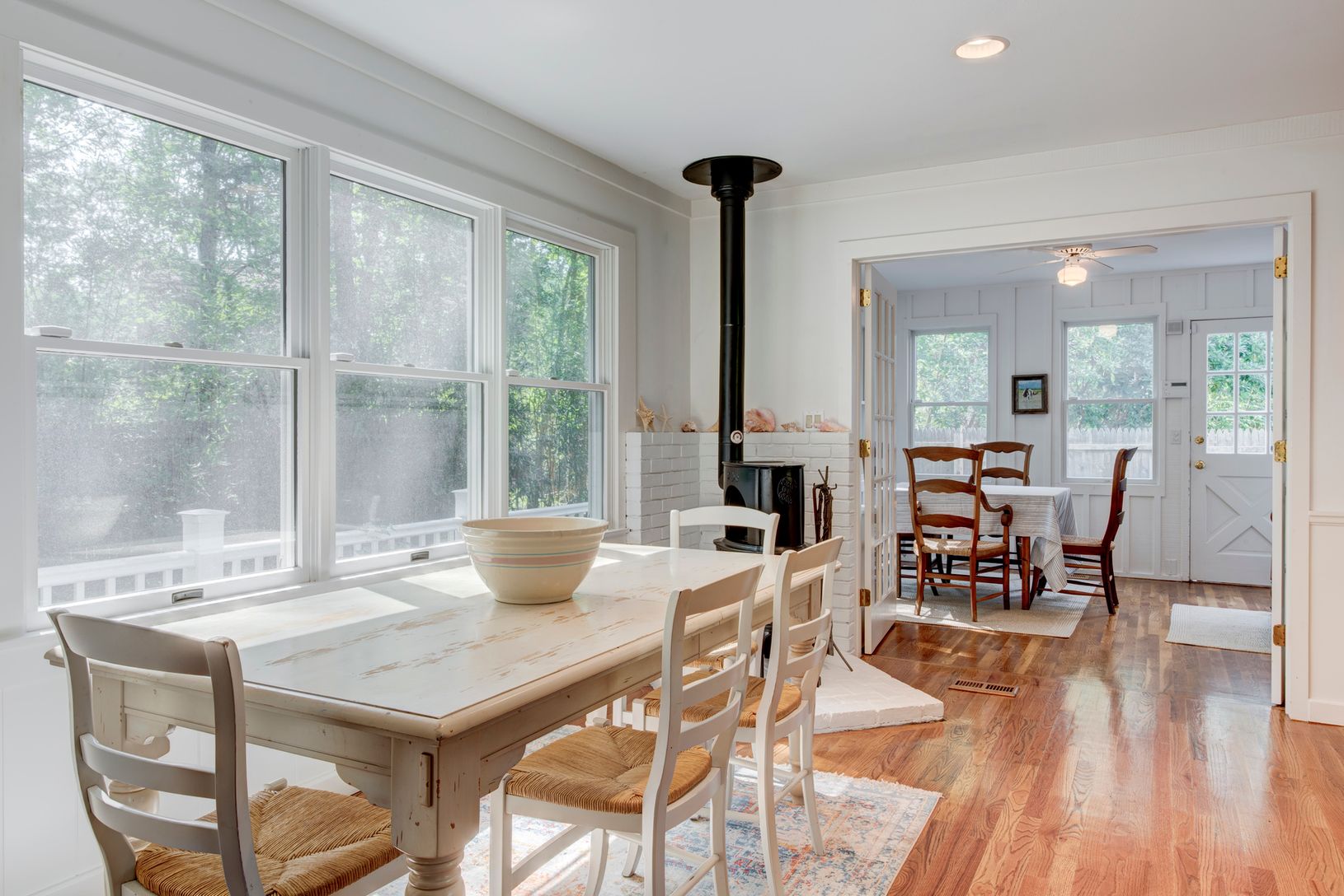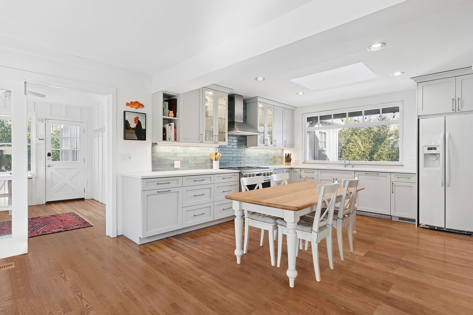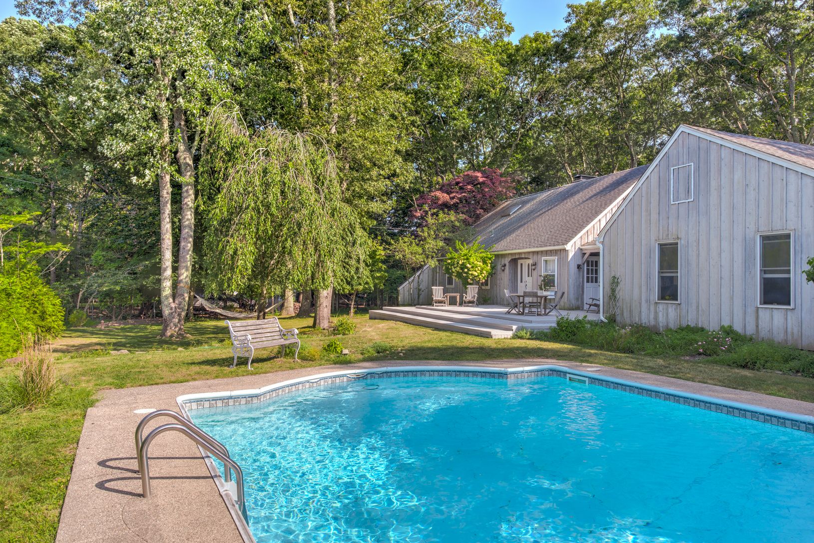 This East Hampton, light filled, spacious, impeccably maintained 6 bedroom, 3.5 bath home is the perfect getaway. Located in the renowned Springs art community, this recently renovated 2800 sq. ft. home is sited on a very private .47 acres at the end of a cul-de-sac, bordering a 23-acre nature preserve. Featuring an open layout, the main level includes a large brand new renovated eat-in kitchen that flows to a separate dining area and living r