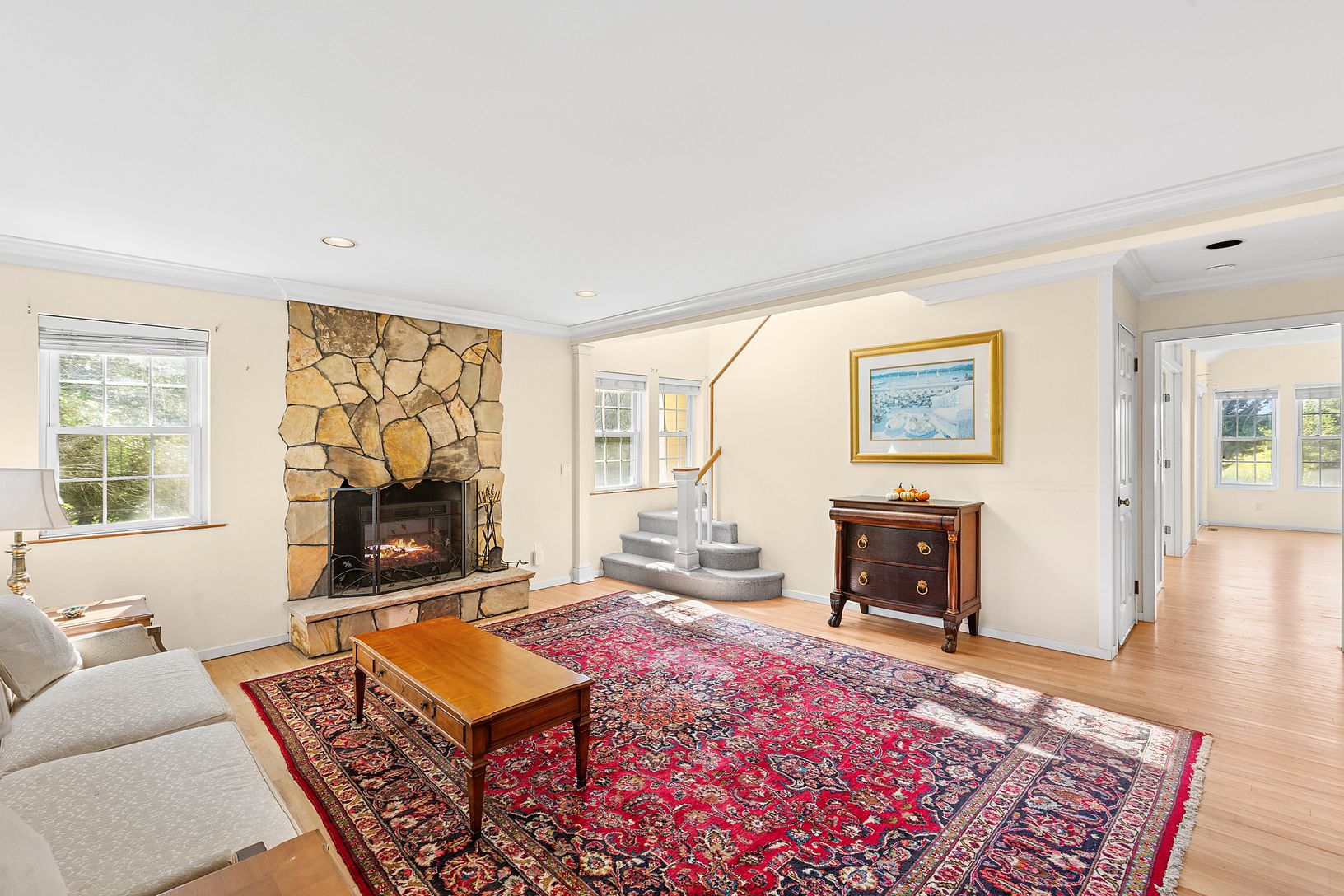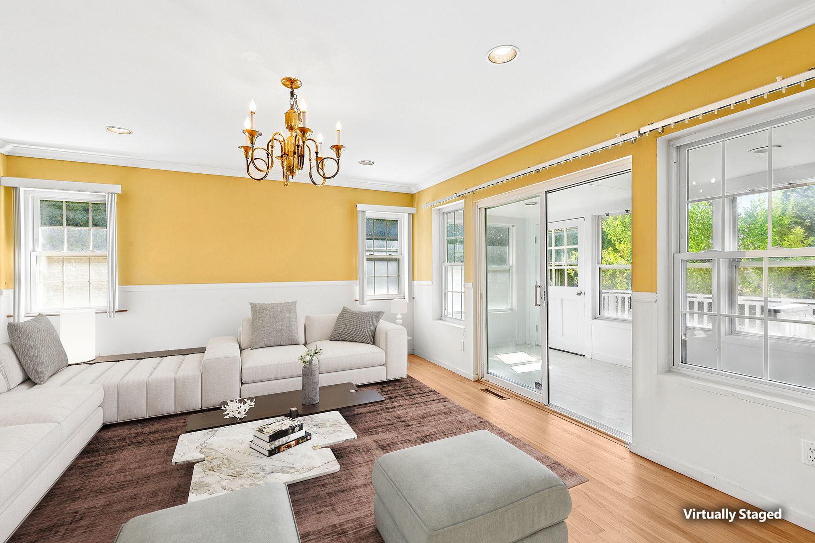 In highly desirable Southampton, this charming home located in the hamlet of Water Mill, backs onto open farmland, offering beautiful views and a peaceful setting. The house features an open floor plan on the main level with a living room, dining room, den, and a sun-filled enclosed porch, along with an attached two-car garage and bonus rooms. Upstairs, a spacious primary suite enjoys sweeping farm views, and two guest bedrooms share a full ba