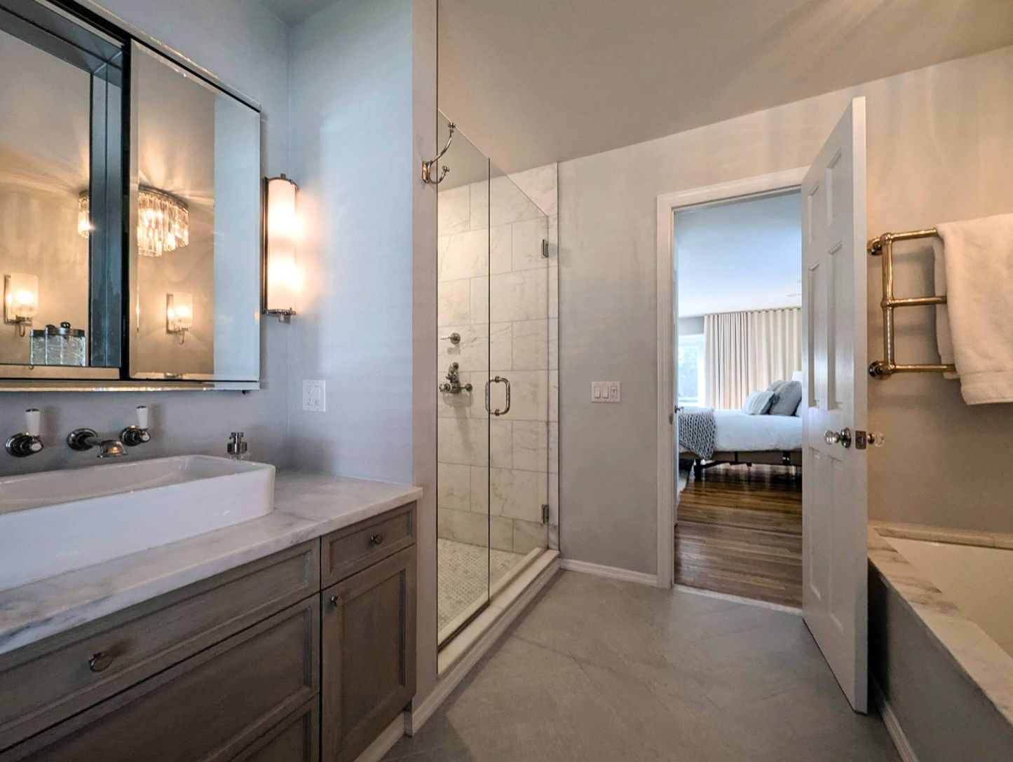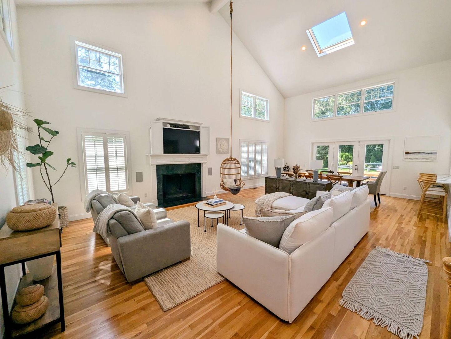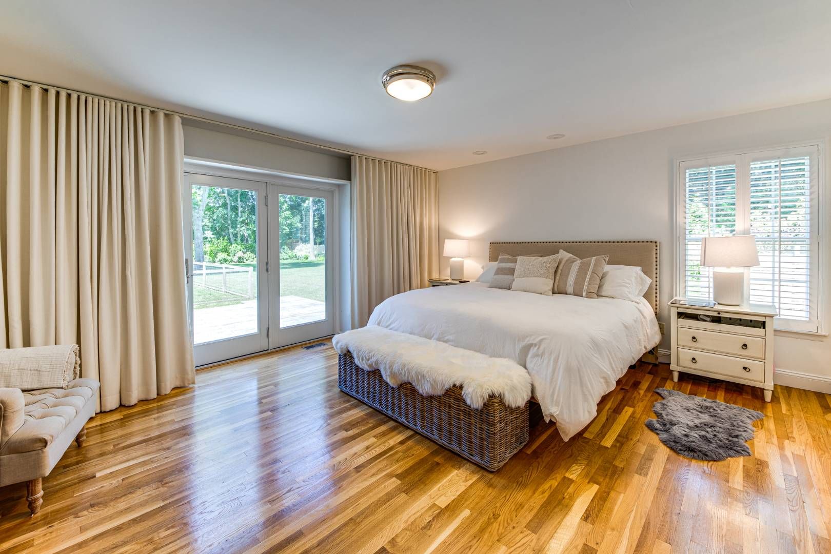 This recently renovated 6 bedroom, 4.5 bath East Hampton fringe home is ideally located a mile from the Village of East Hampton. Enter into a double height great room with open floor plan. The beautiful chefs kitchen has been updated with Wolf/Subzero and looks out to the rear deck and 20' x 40' heated pool. An adjacent 7 acre reserve provides both views and privacy. There is a primary suite located on the first floor. The second level has an
