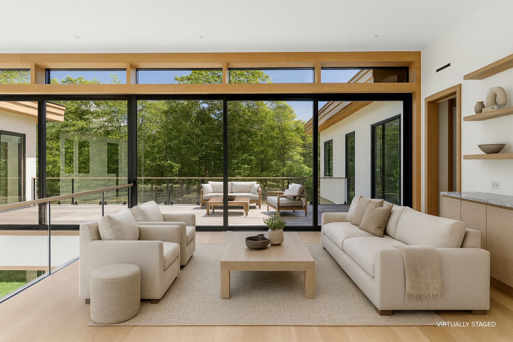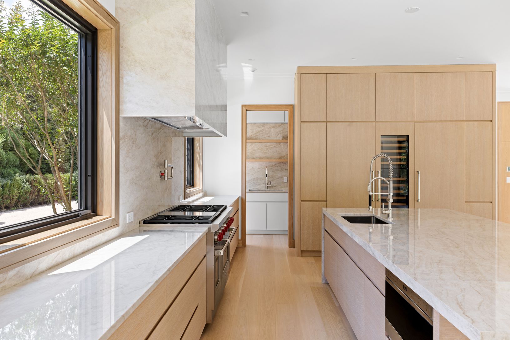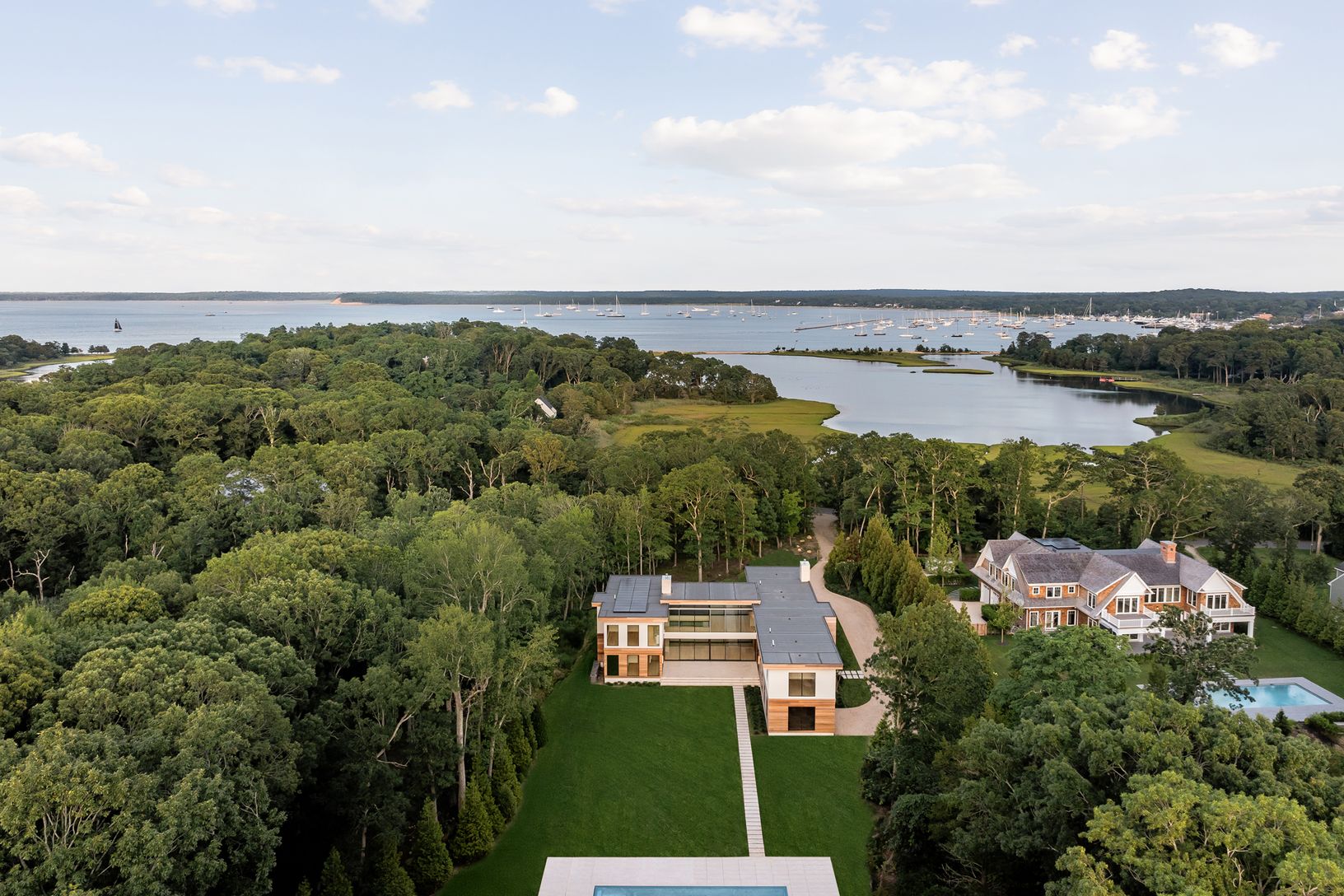 Positioned between Fresh Pond and Sag Harbor Bay, the property offers water views and a se
