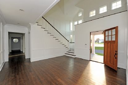 Designed by a prominent Hamptons architect, this traditional new construction in Bridgehampton's horse country on a shy acre has seven bedrooms, seven and one half baths and three finished levels over 7,200 +/- sq. ft. plus 800 +/- sq. ft. of unfinished space. An imposing mahogany front door opens to a grand foyer with a three-story staircase and abundant natural light. The custom kitchen enjoys the latest luxury appliances, custom cabinetry,