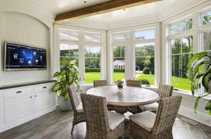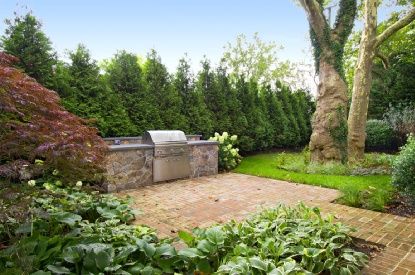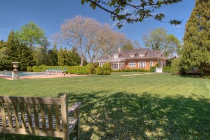 Beautifully manicured country home on a private lane in the Estate Section of Water Mill. Return to the good life of glamorous lawn and pool parties in this 1850s carriage house, brilliantly re-mastered to highest standards of detail with state-of-the-art technology. Your dazzling new kitchen boasts two of every top professional stainless appliance, allowing friends and loved ones to congregate inside or out at the brick terraces then dine on
