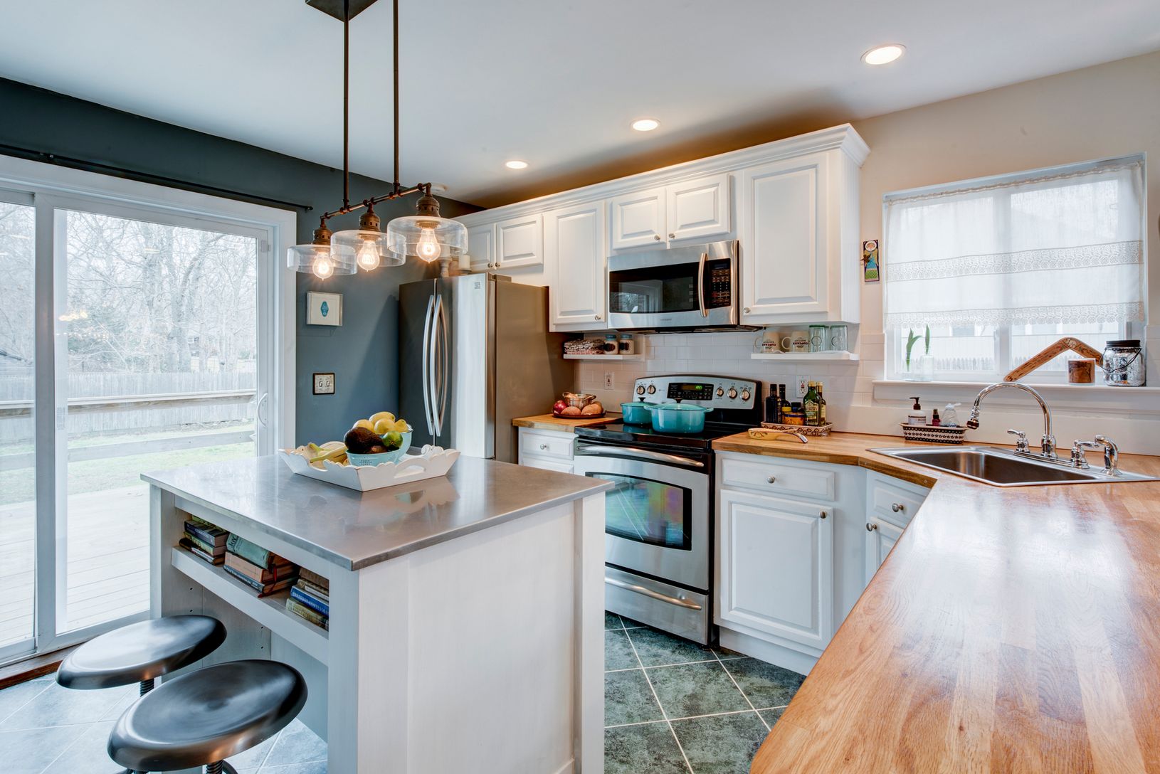 Located on a quiet street in the Springs of East Hampton is a stylish turn-key Hamptons home perfect for summer or year round living. This warm and welcoming residence has an open floor plan with 3 spacious bedrooms, 2 stylish baths, light and bright living rooom w/cathedral ceiling, white brick fireplace, and dining area that flows to a chef's kitchen w/stainless steel appliances and butcher block counters. Step out to the rear deck and see l