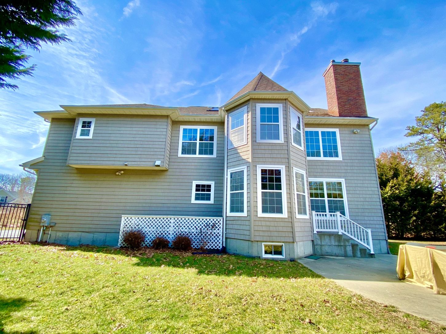 This well-kept 4 BR, 2.5 BA post-modern home sits at the very end of a quiet cul de sac. Enter via a grand foyer with cathedral ceilings into the airy main floor, which has a formal dining room, a sunny family room/den, a gourmet kitchen with breakfast nook, and a soaring great room with a 2-story stone wall fireplace and pellet stove. Upstairs, the bright primary suite includes a sitting room with wrap-around windows, a walk-in closet, and ov