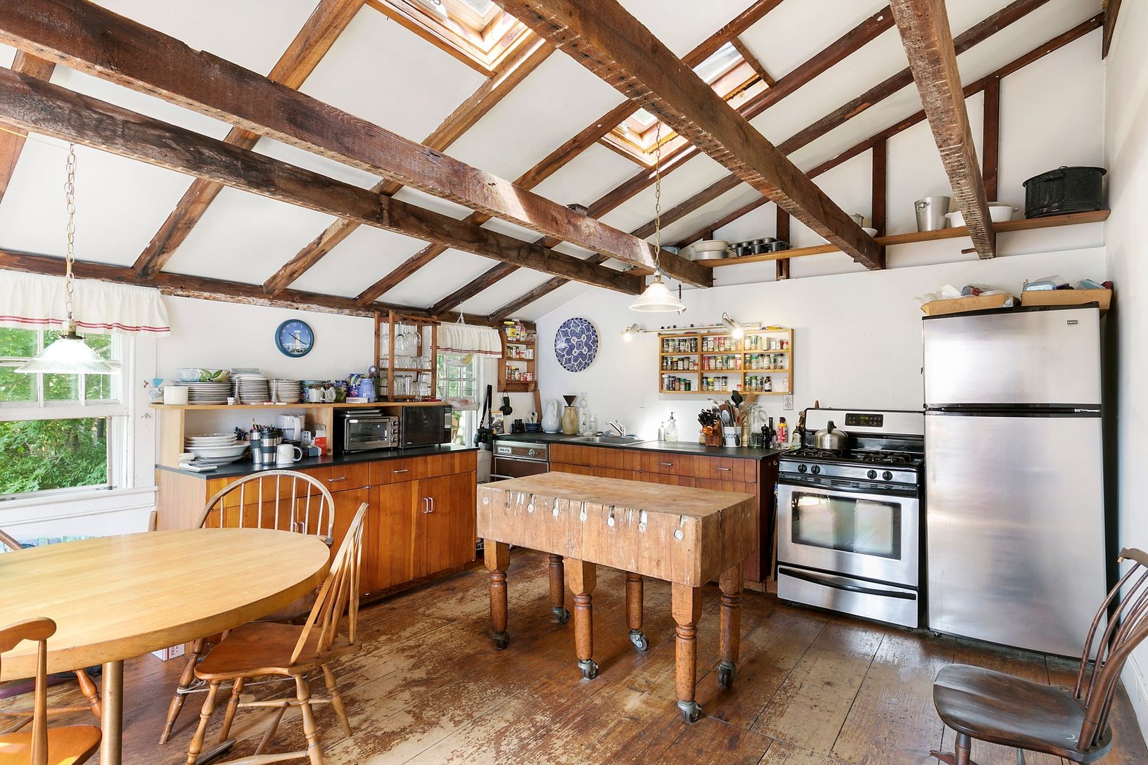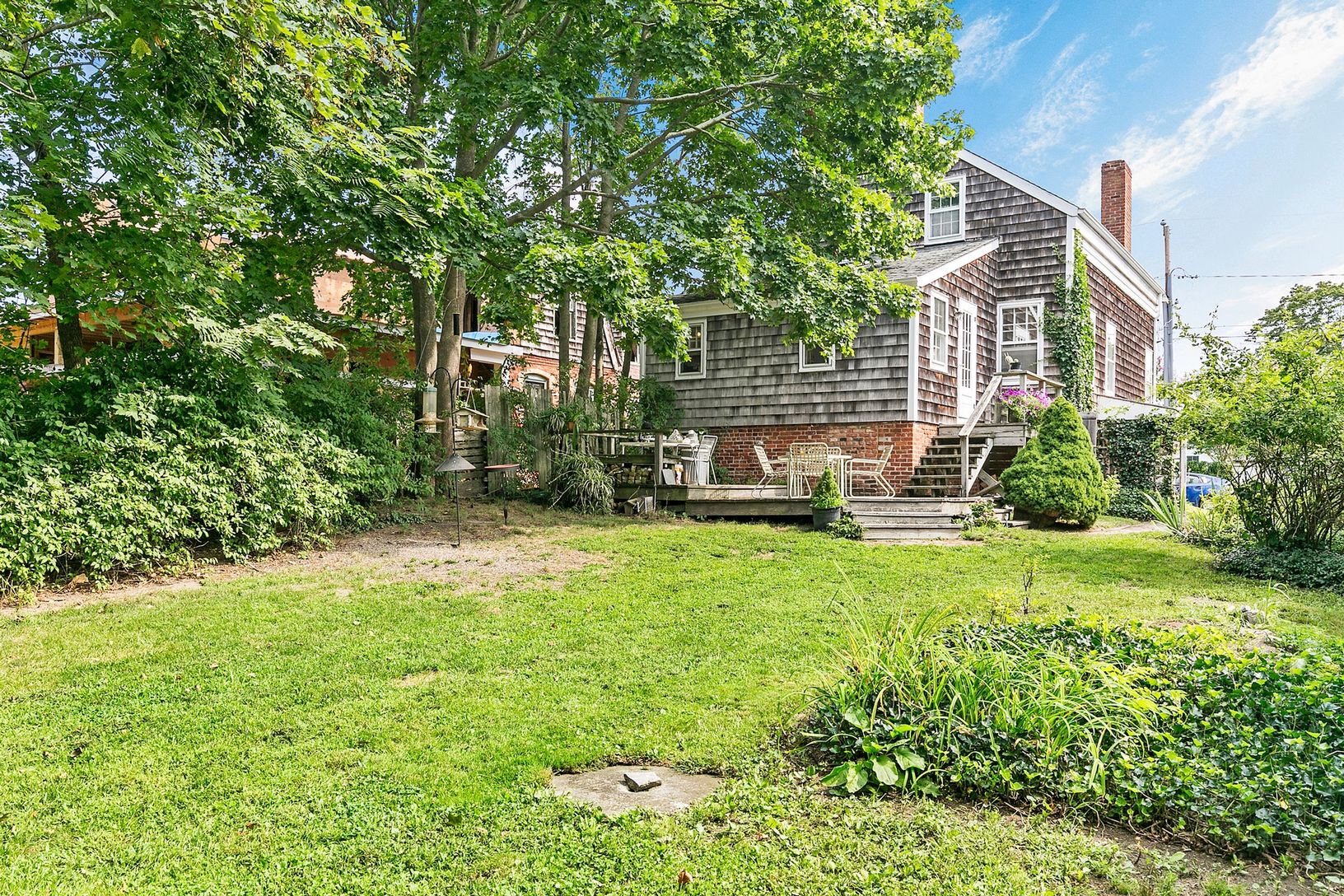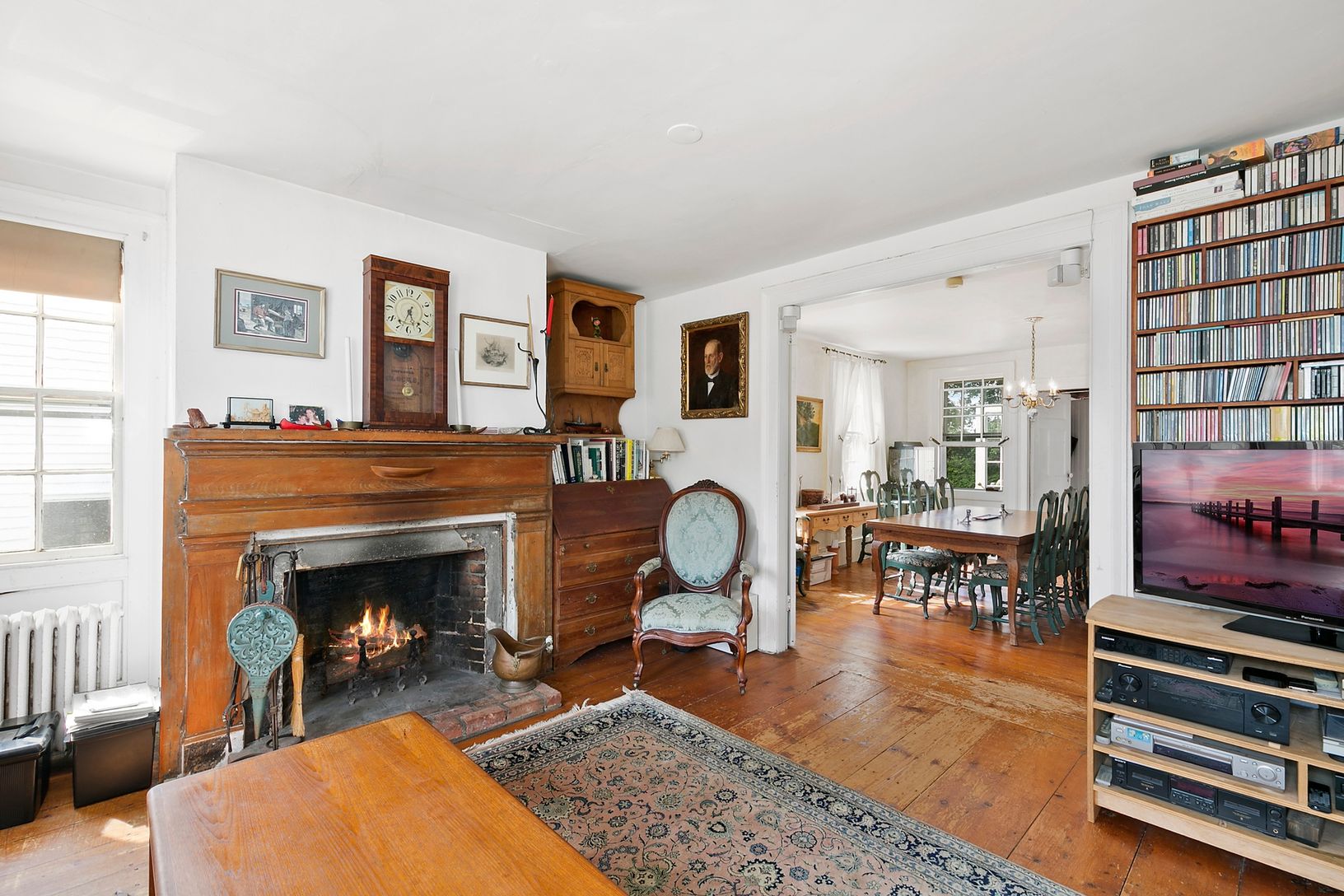 Built in the 1800's, this historic Sag Harbor Village gem comes with all the character and nostalgia of a New England architectural treasure. Original, wide plank pine floors and hand hewn exposed beam ceilings offer a warm and genuine ambiance that harkens back to the glory and wistfulness of this former whaling village. The formal entrance leads to an open, spacious living room and central parlor with wood-burning fireplace. The galley styl