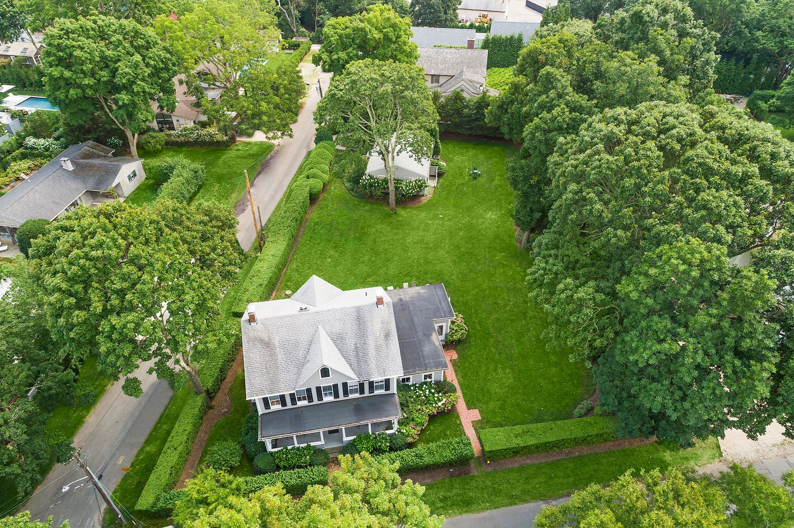 You thought an opportunity like this would never present itself but here it is: The possibility of a compound on one of the best streets in Sag Harbor Village! This 1840's Greek Revival residence at 27 John Street offers a classic floor plan including a foyer with original staircase, front and rear parlors with fireplace, library/bedroom, formal dining room, powder room and large country kitchen with adjoining sun room. The second floor offers