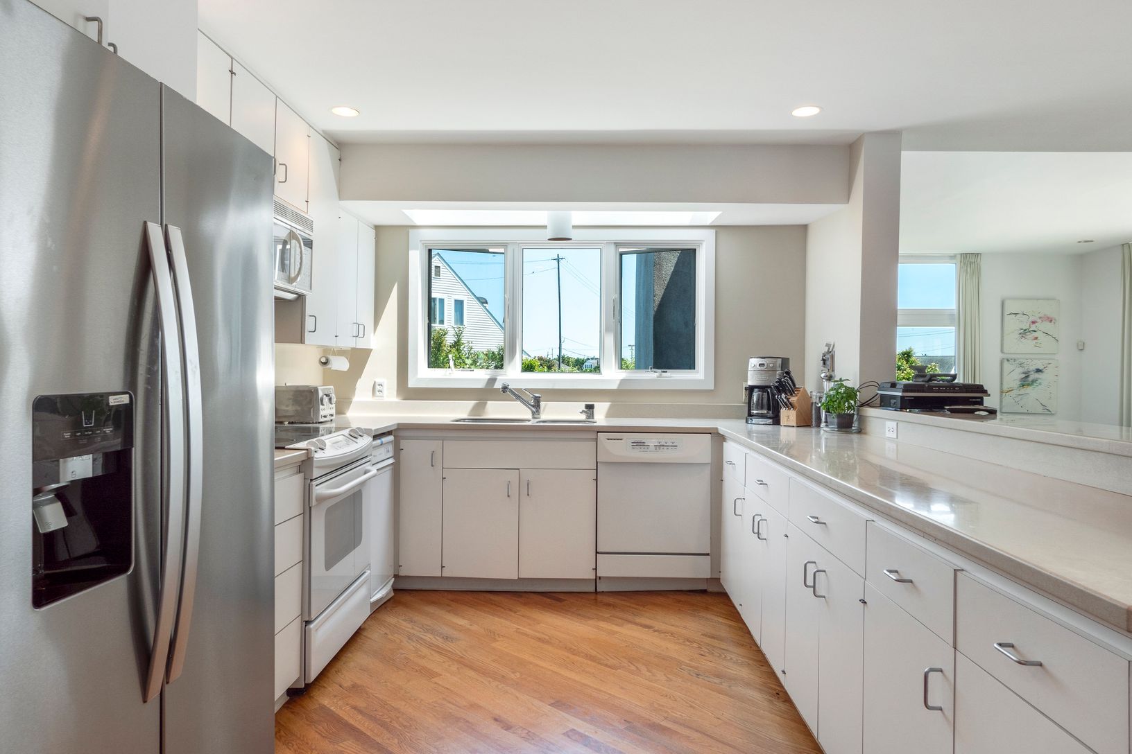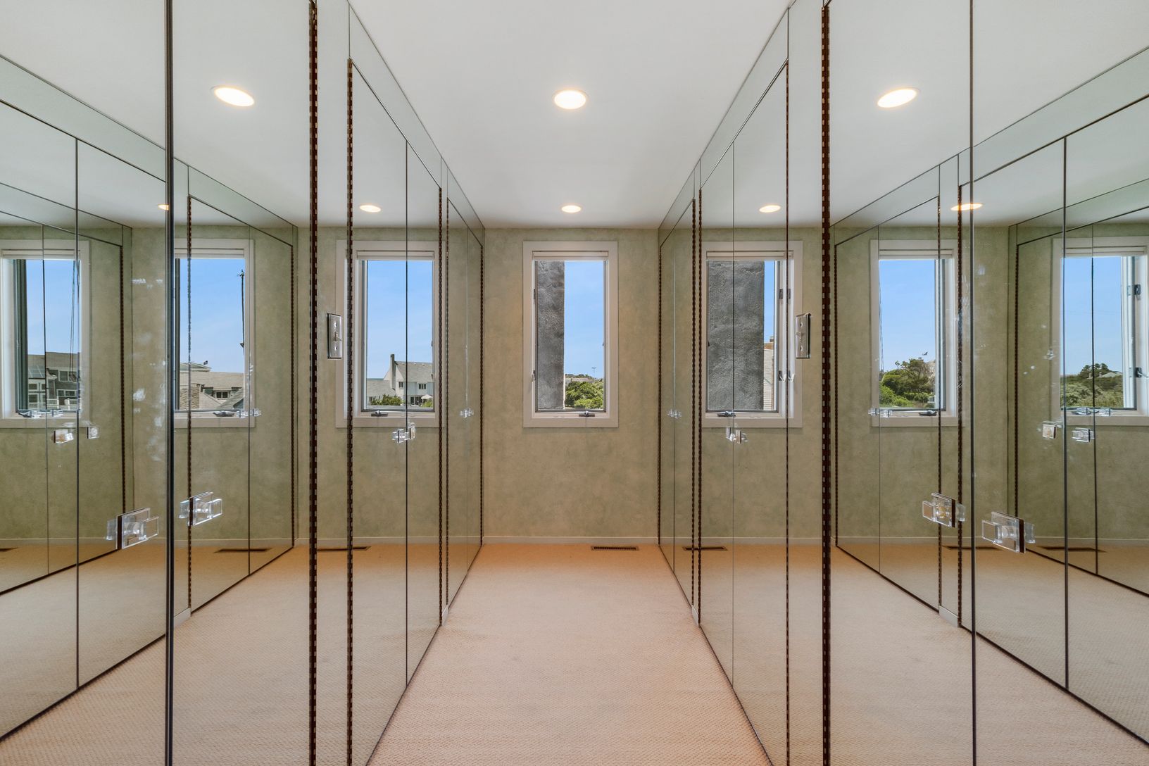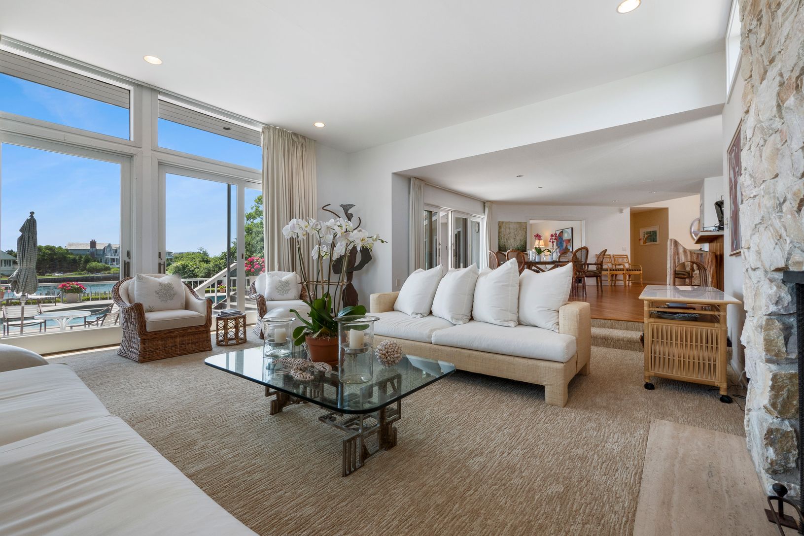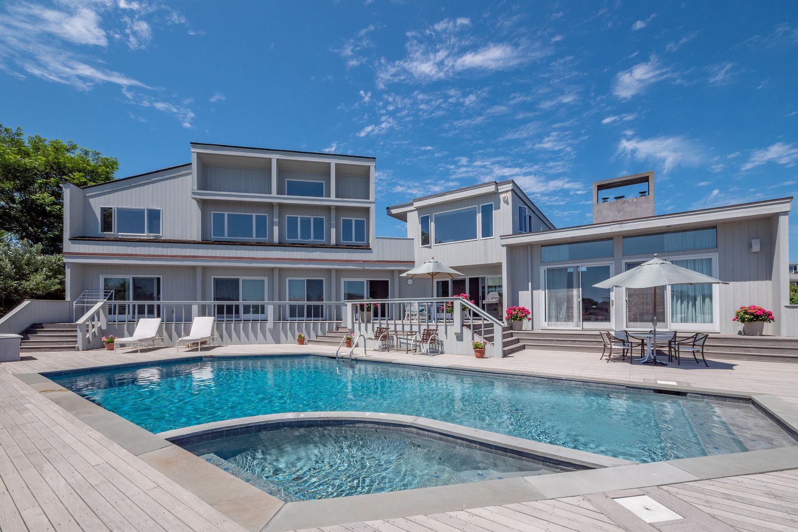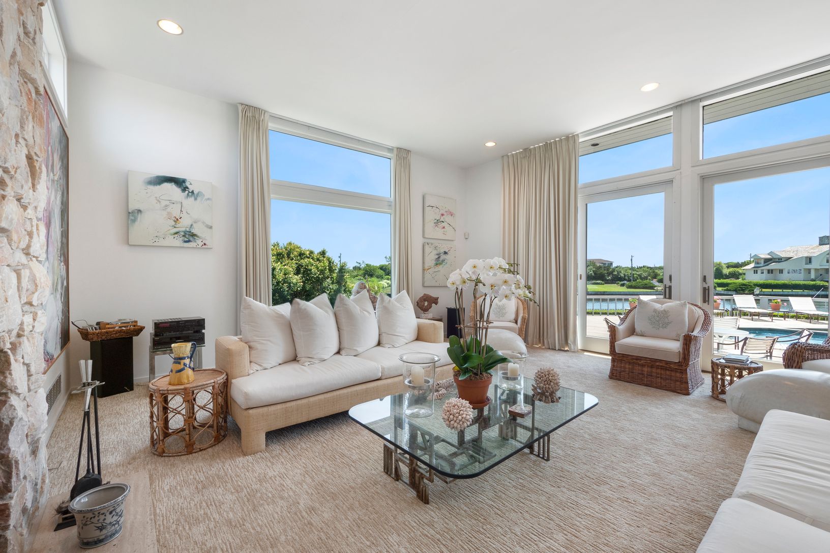 Secluded at the end of a quiet cul-de-sac, this 5-BR Contemporary opens on the back side to extraordinary views of the Quogue Canal and glimpses of the ocean beyond. An airy foyer leads to a main living area with floor-to-ceiling windows, sliding glass doors, and sea breezes from every direction. Also on the first floor are three bedrooms with adjoining baths, laundry, an open kitchen, and a sunny family room/den. Upstairs the primary suite ha