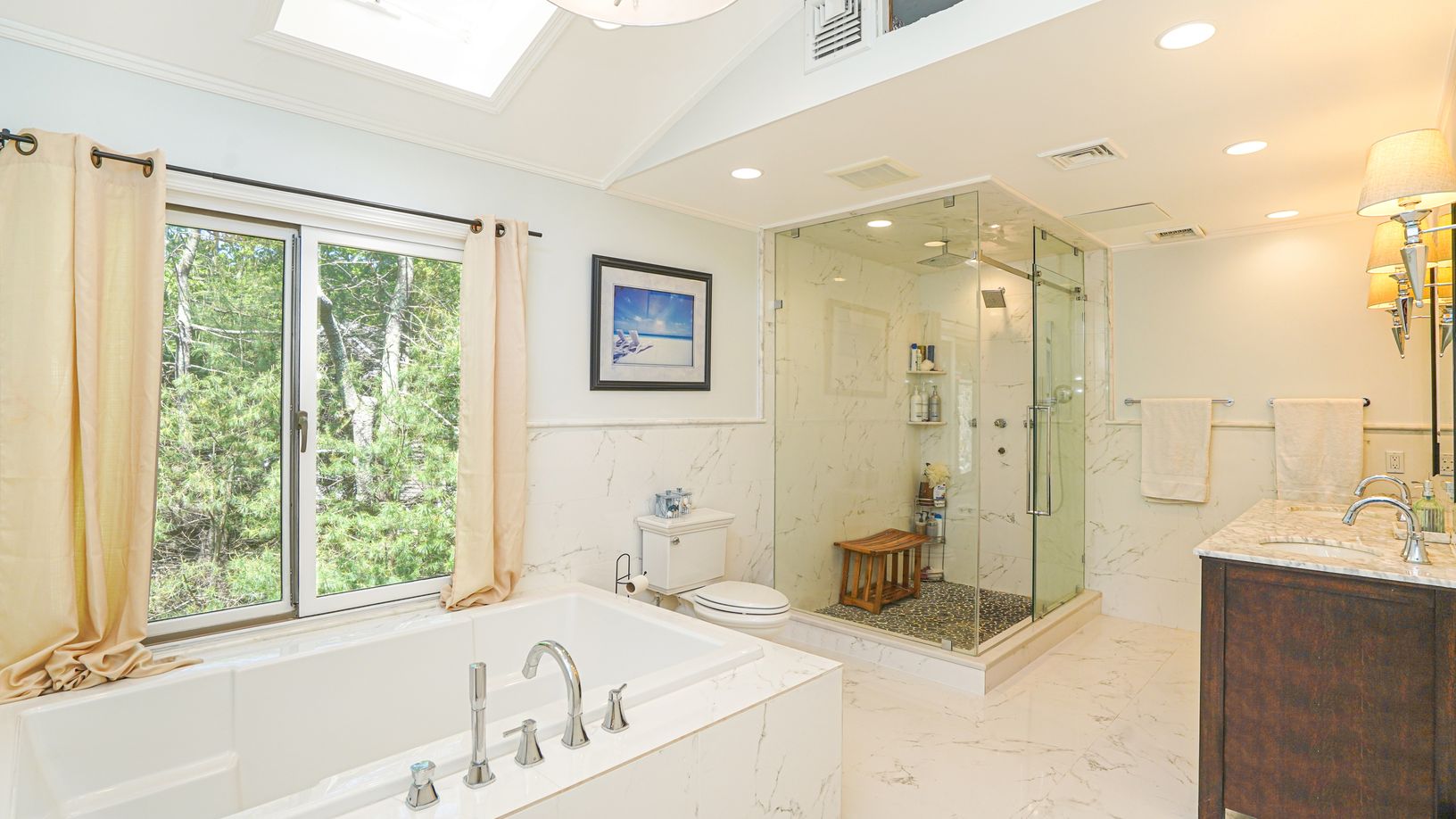 The oasis you seek in the Hamptons, just off 3-Mile Harbor Road near the marinas, restaurants and downtown shopping! Immaculately maintained 4Br, 4Bth home on approximately three-quarter acre property with mature plantings providing quiet seclusion and privacy. The back yard boasts a salt-water pool, a built-in barbecue area and fire pit that can be accessed from all three floors. Ample space to enjoy time alone or join in the summer fun. The