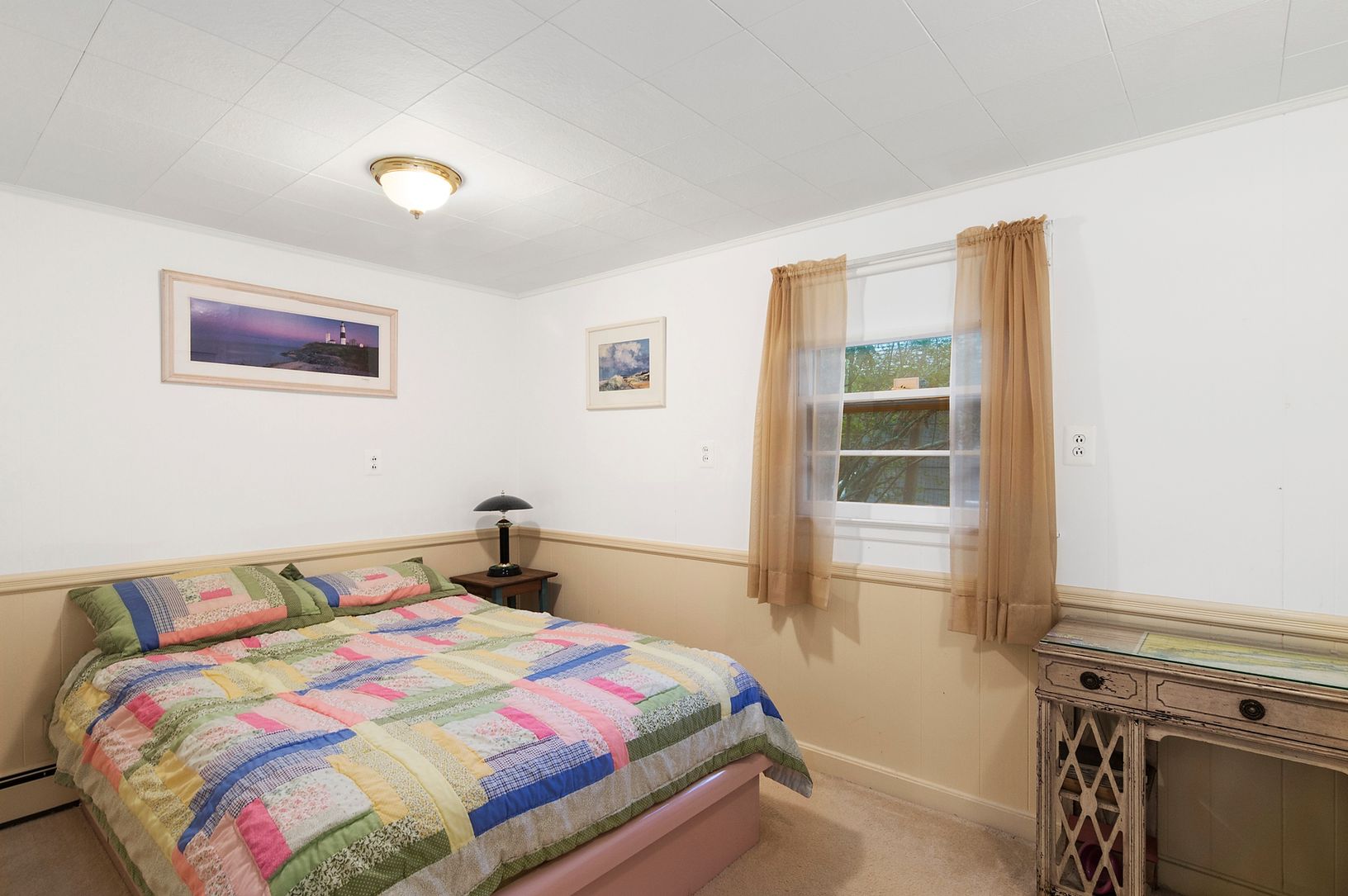 Located a short ¼ mile from a sandy bay beach, this 4 bedroom 2 bathroom home is centrally located between Amagansett and Montauk and directly across the Napeague stretch from the the Atlantic Ocean. This two story home is designed to accommodate guests with one bedroom, bathroom, den with fireplace and kitchenette on the first floor. The second floor is finished with a full kitchen, living room, dining room, full bathroom and 3 bedrooms. J