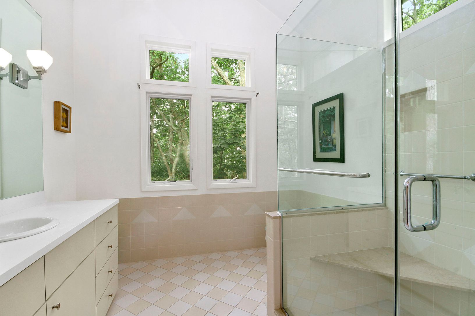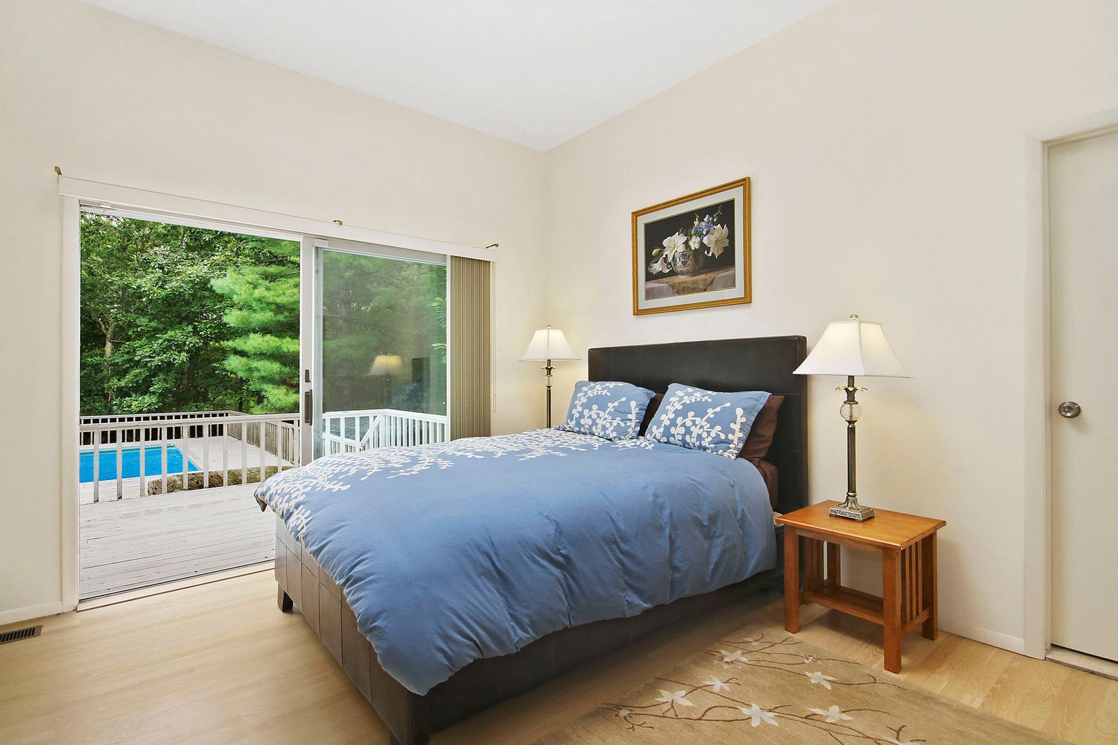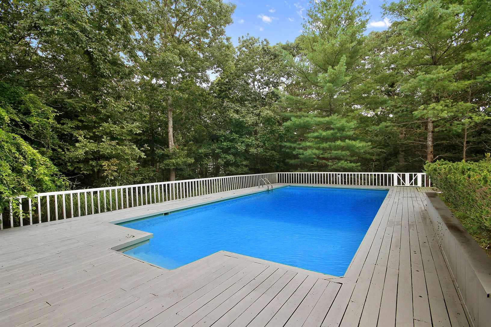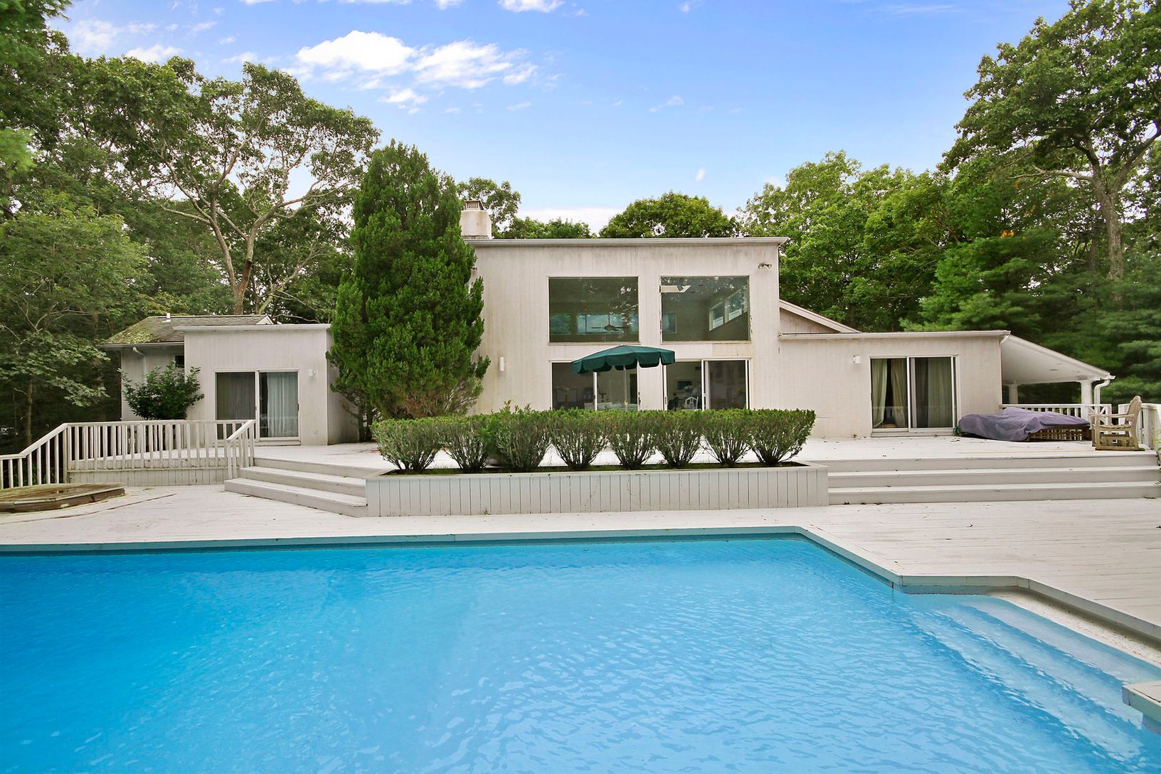 This four bedroom five and a half bath contemporary East Hampton home is a must see. Situated on a private 1.1 acre lot with reserve on two sides this quiet neighborhood of Landfall has it all. The beaches and state park land are right around the corner if one chooses to leave this homes back yard oasis. A large deck and pool along with a covered porch are accessible from most of the rooms in the home. This home has an ideal set up for gue
