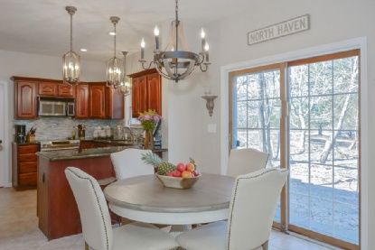Located in the desirable North Haven area of Sag Harbor., this 4 bedroom, 2 1/2 bath home is a short drive or bike ride to the village center. The interior has an open flow through the kitchen, den areas. For more formal entertaining there is a separate dining room and living room with wood burning fireplace. The upstairs has a master suite with full bathroom, three bedrooms and another full bath. In addition there is an attached 2 car gara