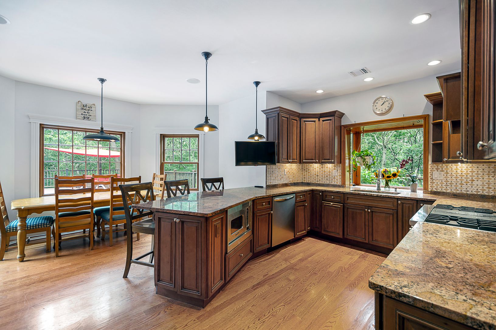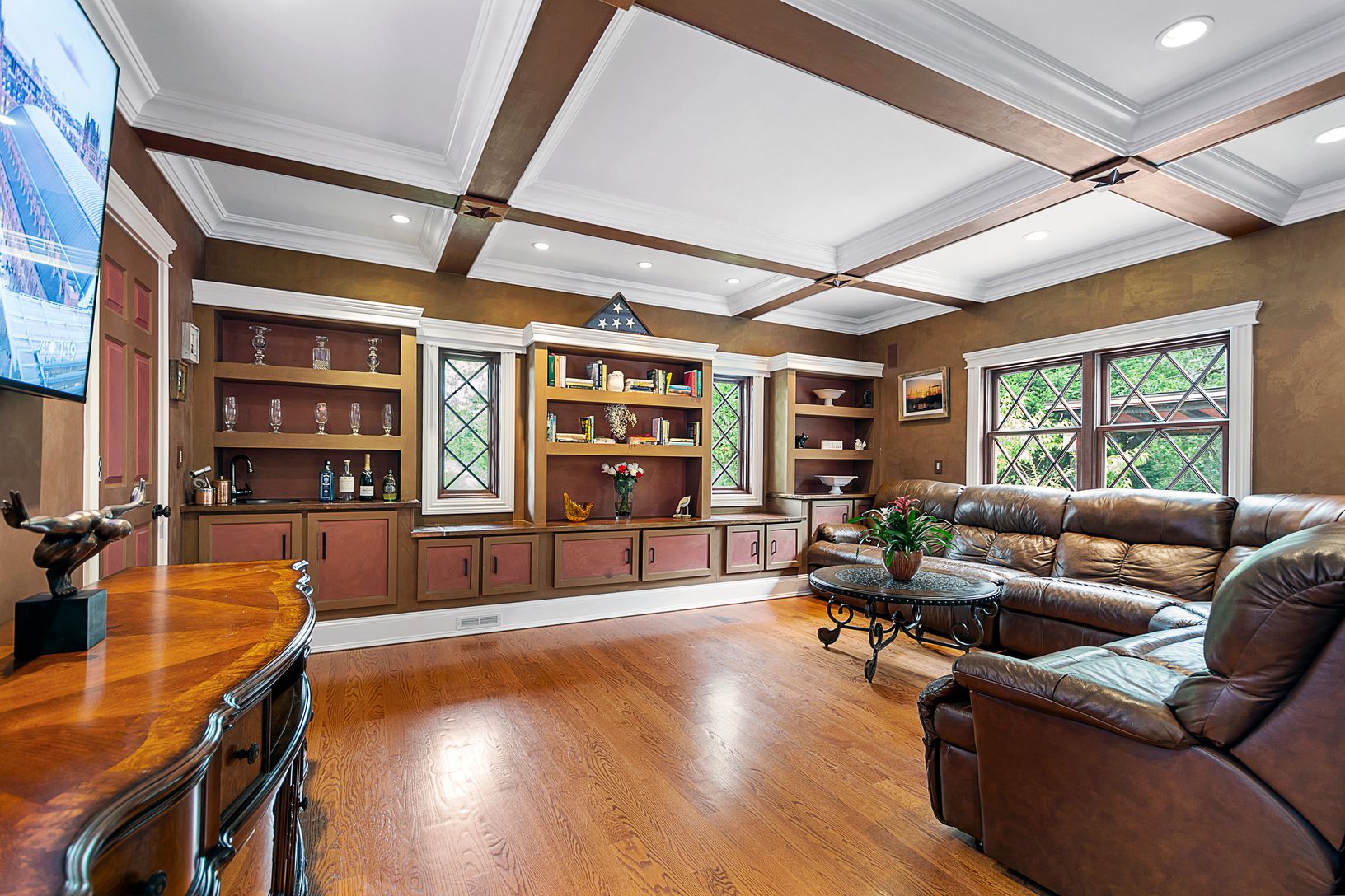 Experience expansive living from this 4-bedroom, 3-bath Post Modern luxury home nestled on 1.05 acres. Step into grandeur through a double height entrance foyer and enjoy outdoor bliss with the landscaped yard with pond and cascading waterfall. Entertain in style with a pool, hot tub and outdoor kitchen. Need more space? A carriage house awaits your imagination, while the basement offers endless possibilities. Perfect for lavish gatherings, pe