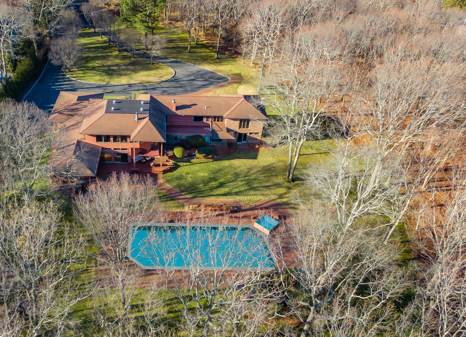 Tranquility awaits at this peaceful 1.28-acre estate. Featuring a large parcel at the end of its own exclusive cul-du-sac, the sizable property comprises a spacious 6,000-square-foot contemporary home, complete with sprawling lawns, oversized 25-foot-by-65-foot Gunite pool, outdoor kitchen, Zen water garden and access to nature trails and parkland. Property is within 1 mile of three different water sources--a sandy beach, a pond and a spot tha