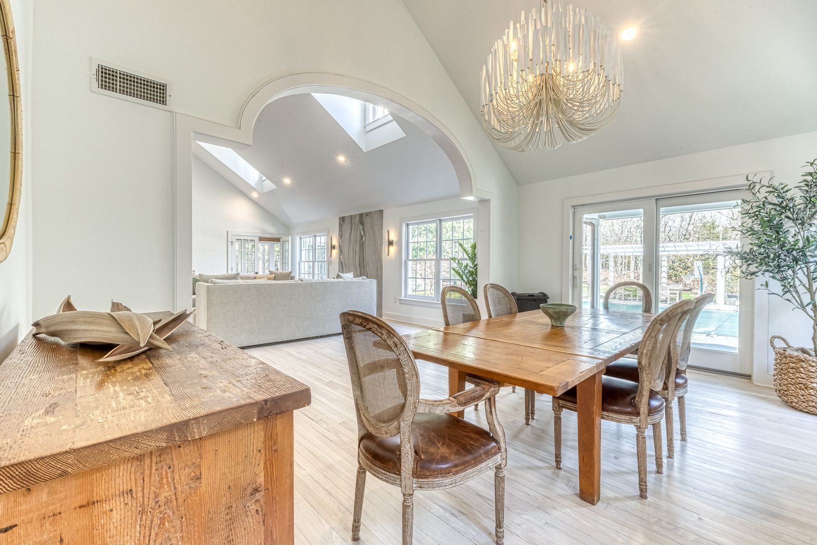 Located at the tip of Three Mile Harbor, this traditional 2022 renovated Hamptons home features 5 bedrooms and 4 ½ bathrooms. The eat-in kitchen features Viking, Wolf, Bosch and Sub-Zero appliances and is fully outfitted with a coffee bar (Nespresso, drip, Keurig, etc). Entertainment spaces include the light filled, vaulted ceiling living room with remote controlled fireplace, dining room, the quaint sunroom with imported terra cotta tile and