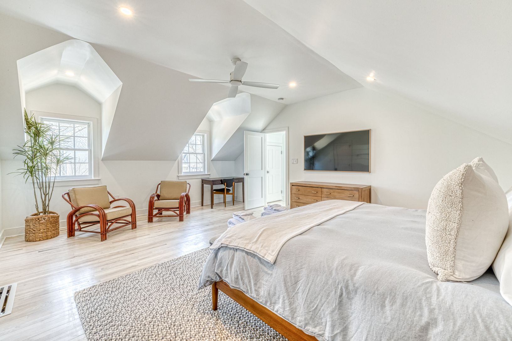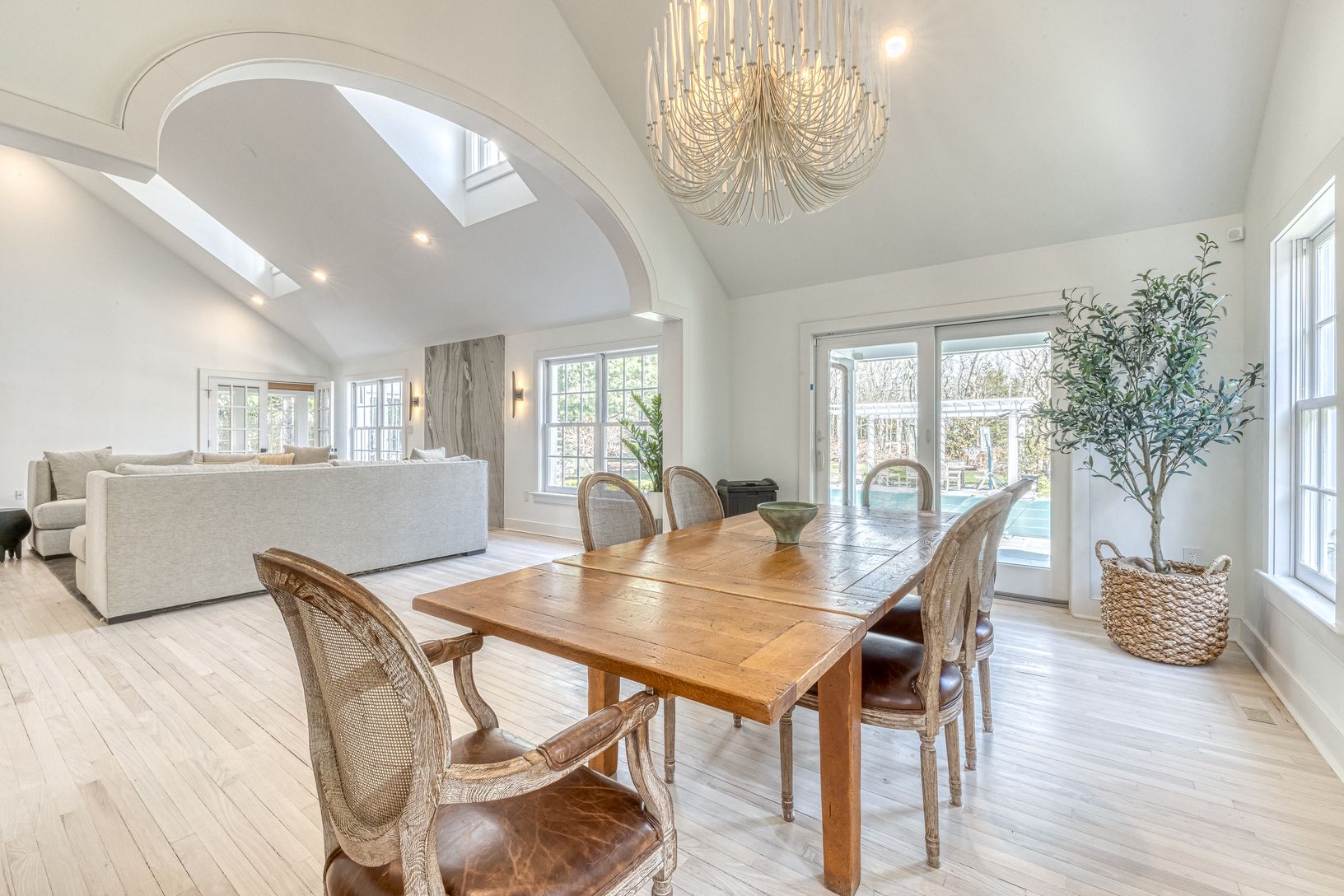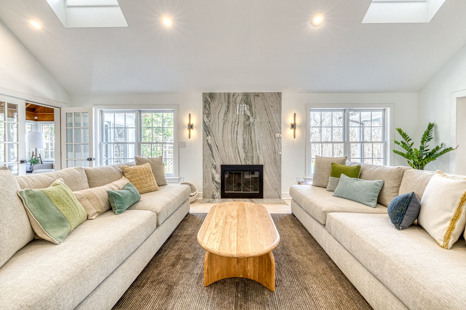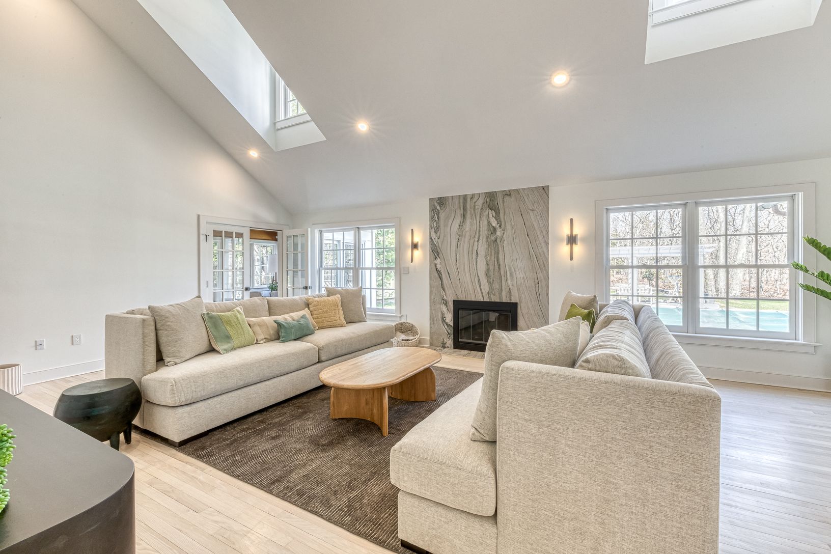 Available for Weekly Rentals. Inquire. Located at the tip of Three Mile Harbor, this traditional 2022 renovated Hamptons home features 5 bedrooms and 4 ½ bathrooms. The eat-in kitchen features Viking, Wolf, Bosch and Sub-Zero appliances and is fully outfitted with a coffee bar (Nespresso, drip, Keurig, etc). Entertainment spaces include the light filled, vaulted ceiling living room with remote controlled fireplace, dining room, the quaint sun
