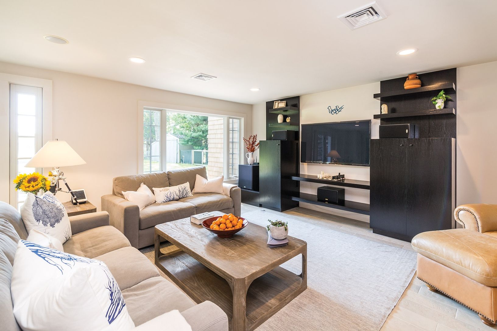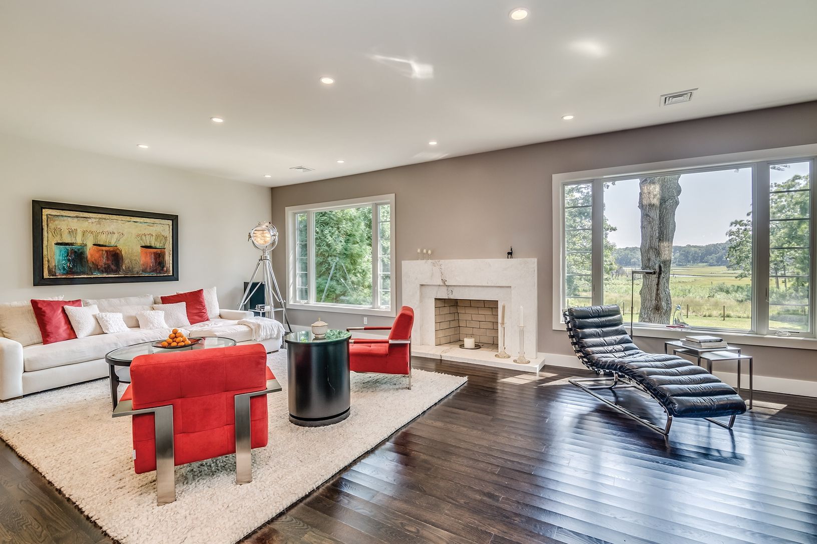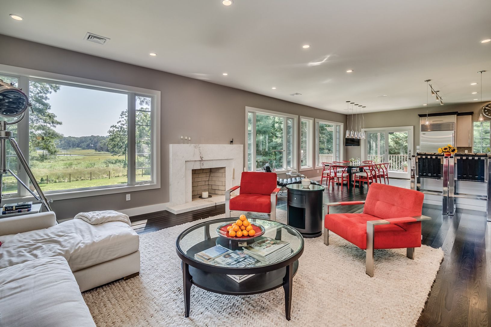 A complete renovation has infused contemporary chic into this traditional shingled home on 1.86+/- acres in bucolic North Haven. A true smart home, it features Control4 home automation addressable via iPad or iPhone. Enter to light-filled open living areas featuring high ceilings and a wall of south-facing windows showcasing views across open reserves and water. Open plan living areas include the great room with custom fireplace, formal dinin