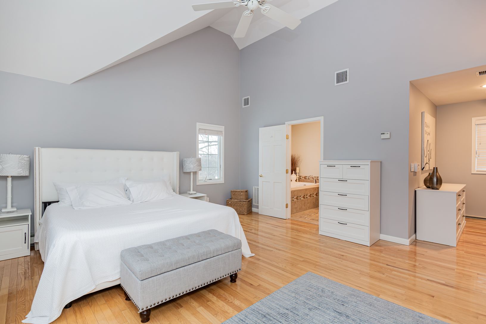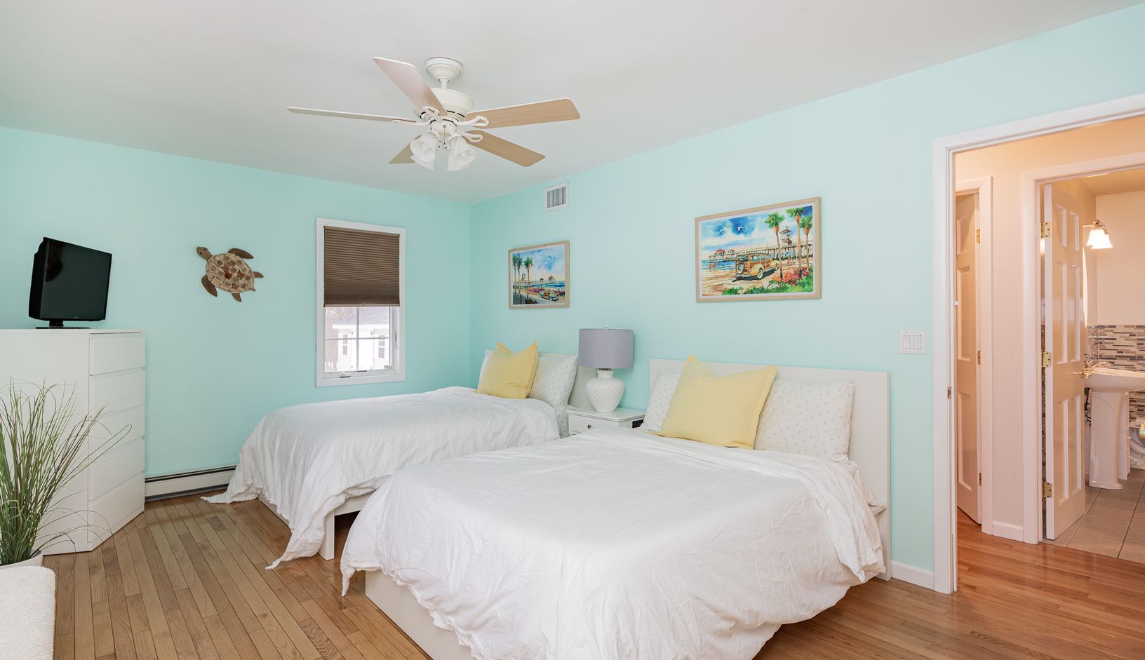 This fresh, beach-inspired South of the Highway Westhampton summer rental offers a bright, turnkey setting for an effortless summer vacation. Recently painted and newly furnished, the home feels crisp, clean, and thoughtfully updated throughout. Set far south on a privately hedged and gated corner lot, this 4-bedroom residence provides both space and privacy. Two spacious king size en-suite bedrooms offer comfortable accommodations upstairs, w
