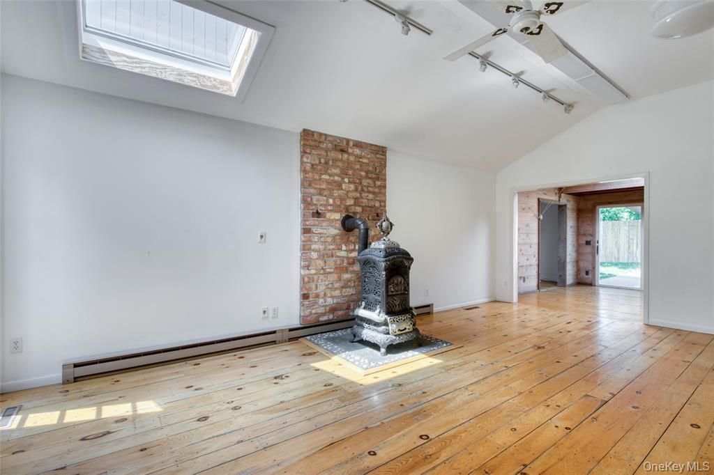 Cutchogue, North Fork work-live annual rental features 2 plus bedrooms, 2.5 baths and lots of light in contemporary farmhouse style. Open floor plan features large living room with decorative wood stove, dining room, eat in kitchen with sitting area and deck access. Bonus room and 2 car garage on first floor PLUS upstairs large owner's suite with private full bath, and additional bedroom and loft plus a second full bath. A perfect house in the