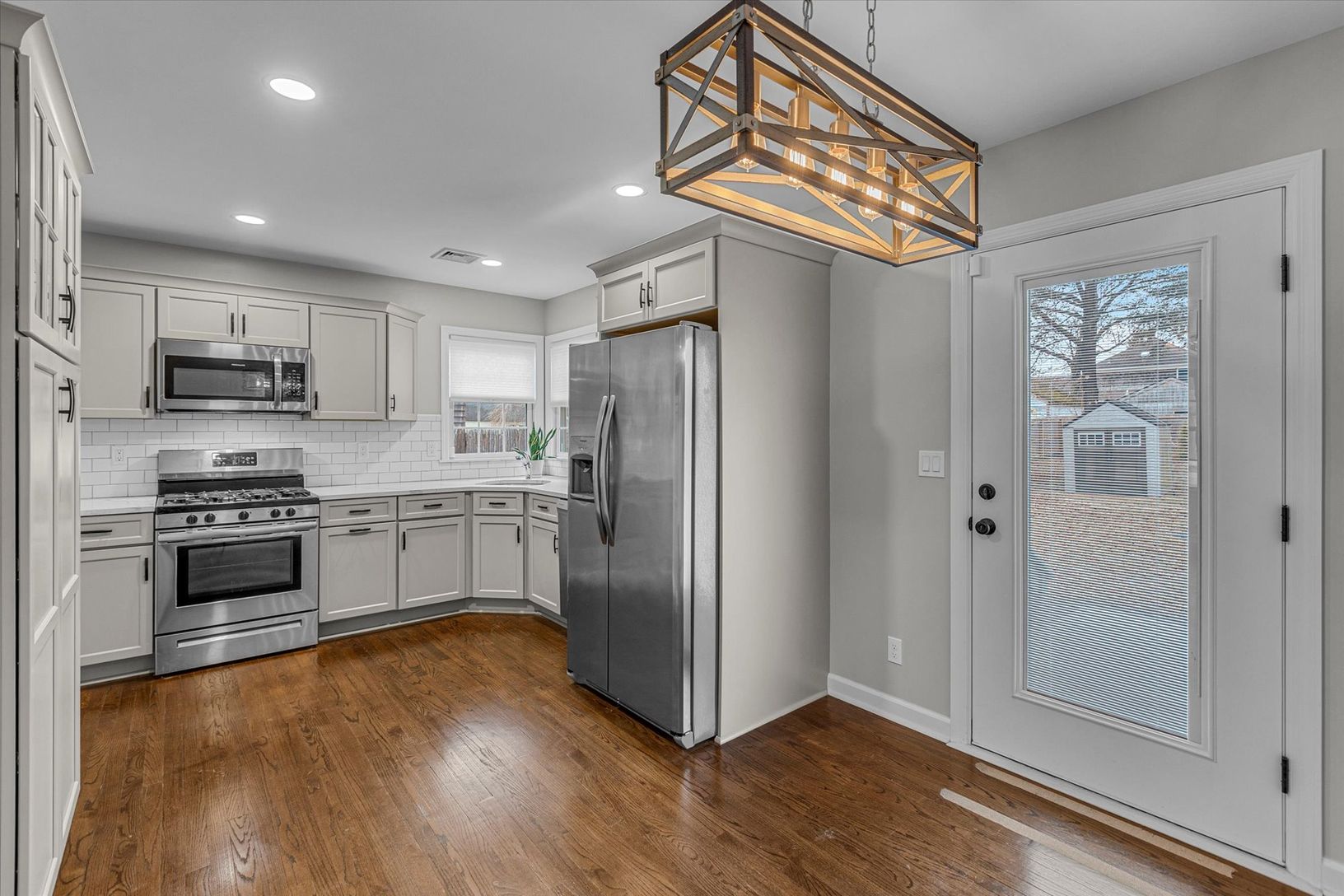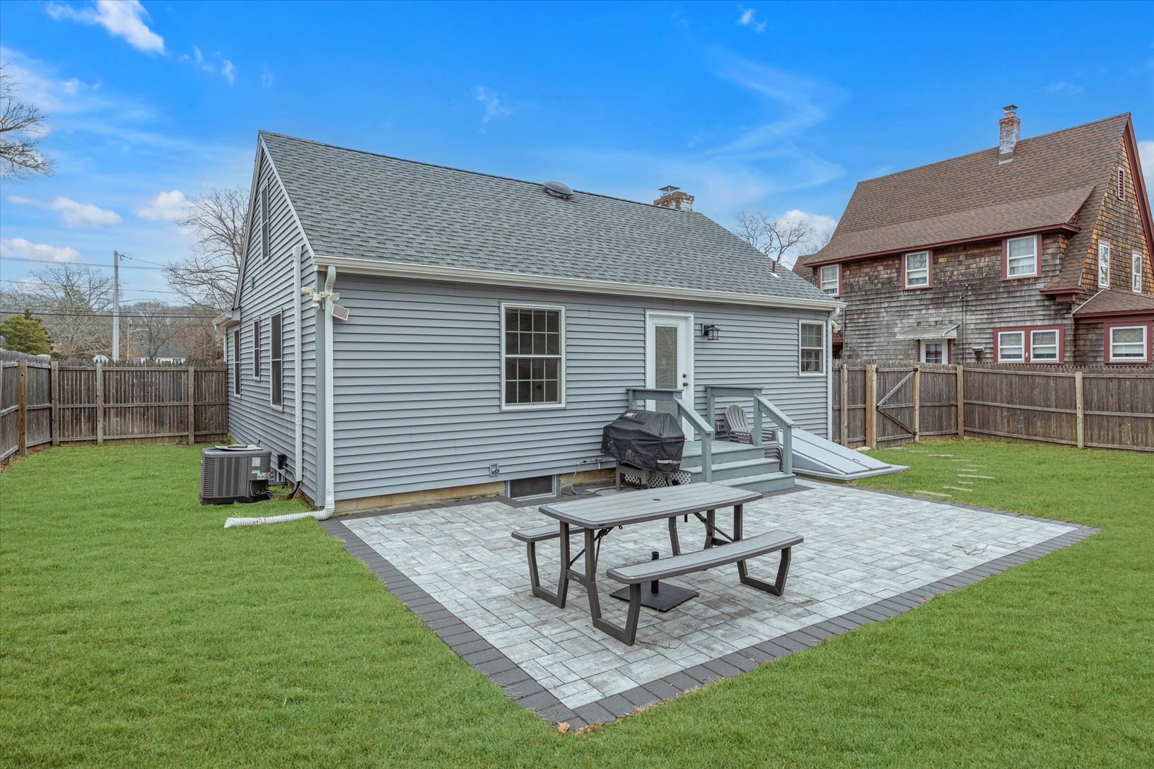 Mint ranch on 1/2 acre, fully renovated in 2020, this petite charmer with fully fenced half acre yard is has hardwood floors, thoughout, CAC and natural gas heat. Living room with fireplace, beautiful quartz countertops and stainless in kitchen, 2 bedrooms and 1 full bath. The full basement has outside access thru bilco doors and state of the art energy efficient Navien tankless boiler. And extra bonus is walk-up stand-up attic for extra stora