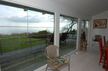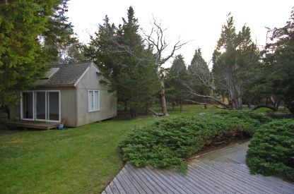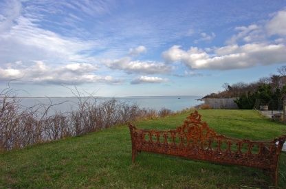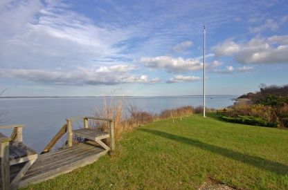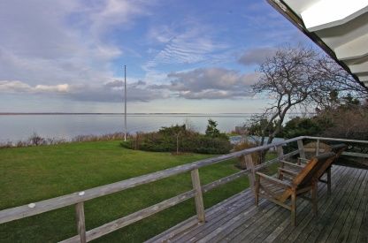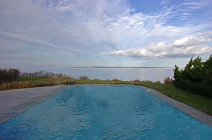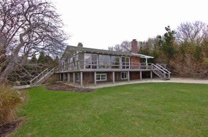 Originally the home of culinary giant Craig Claiborne this 60's modern beach home rests high above Gardiners Bay on a double lot with 180' of waterfront. With mature landscaping, gunite pool on the waterside and expansion plans by noted architect Robert Marino this home with spectacular views of Gardiners Island, Montauk and the New England coastline has a special past and awaits YOUR special future.