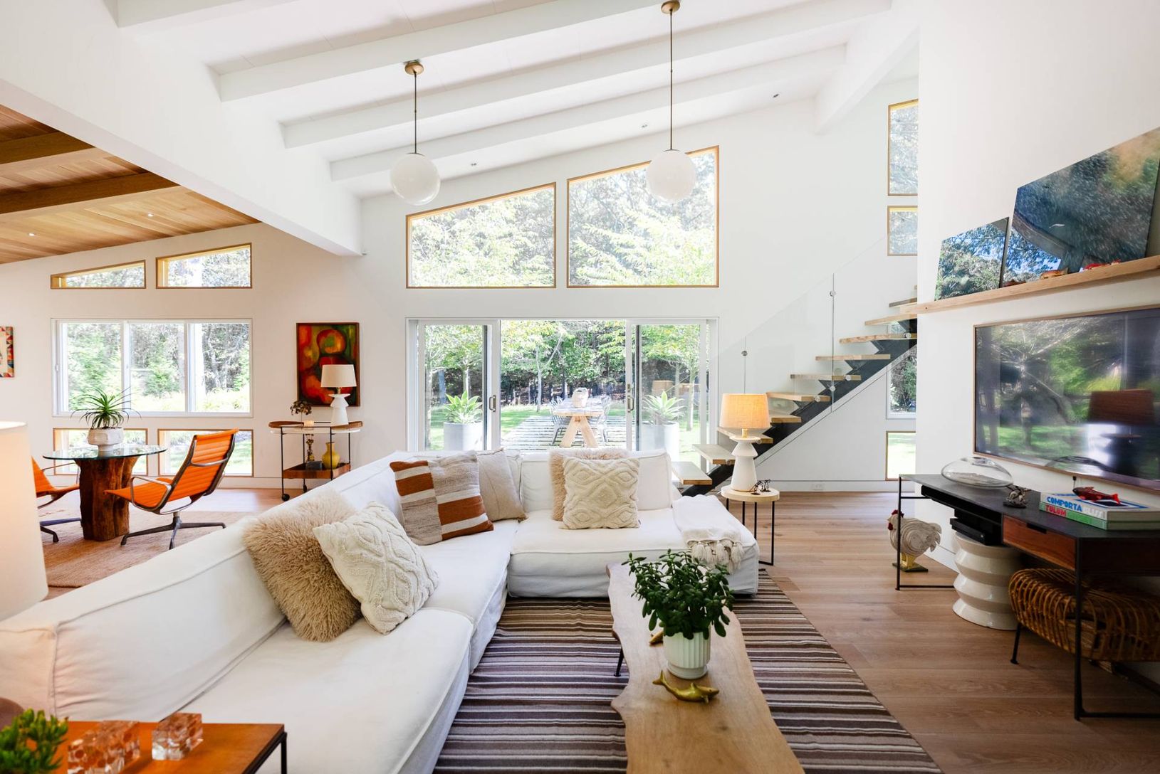 Introducing a timeless masterpiece that seamlessly blends the retro charm of the 1970s with the comforts of modern living. This meticulously renovated home, a true gem, was completely reimagined in 2022, featuring a significant addition that has expanded its allure. Nestled on a sprawling 1.8-acre parcel of seclusion, the property boasts a circular driveway and exquisite landscaping that beckons you in. The first floor welcomes you with an ope