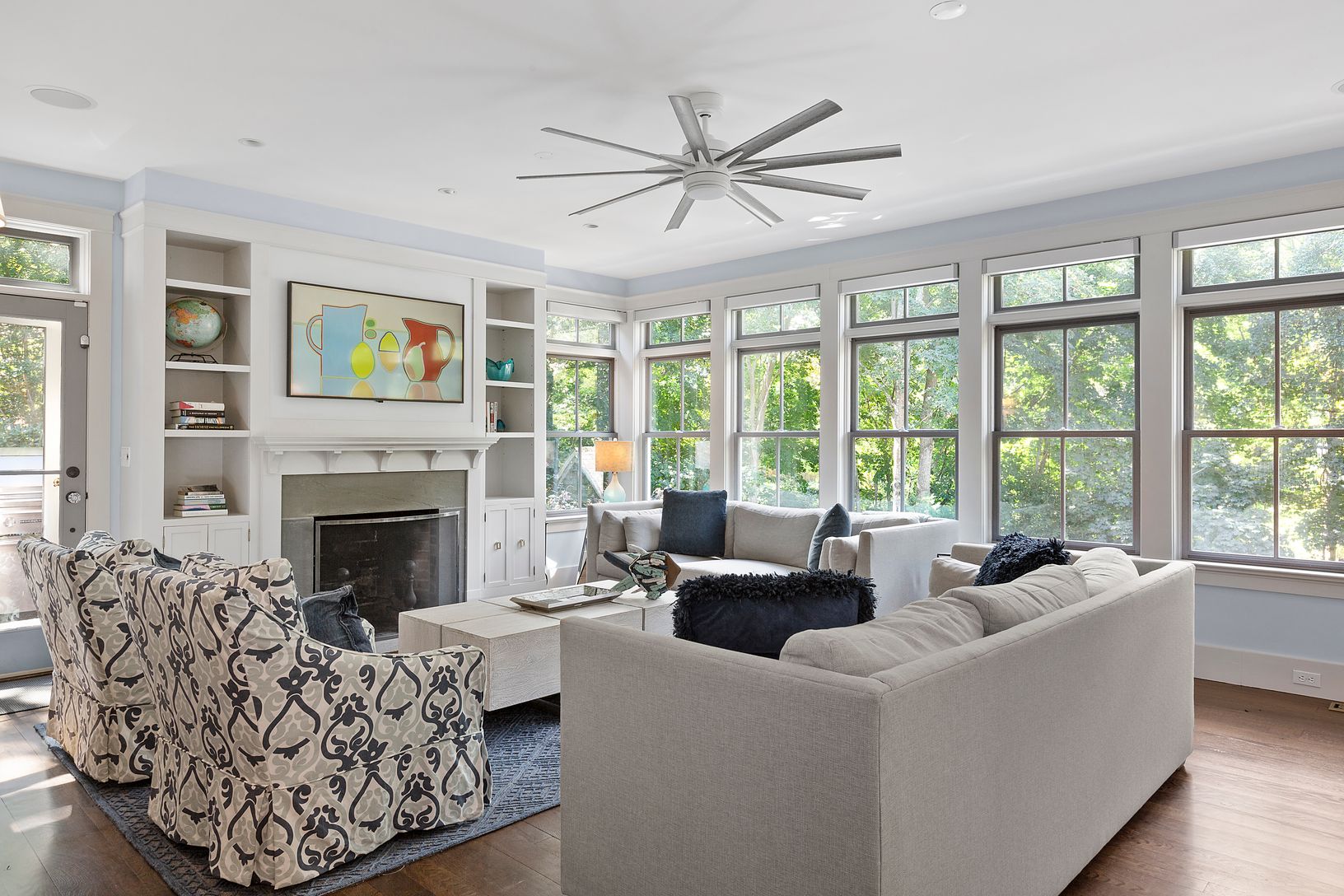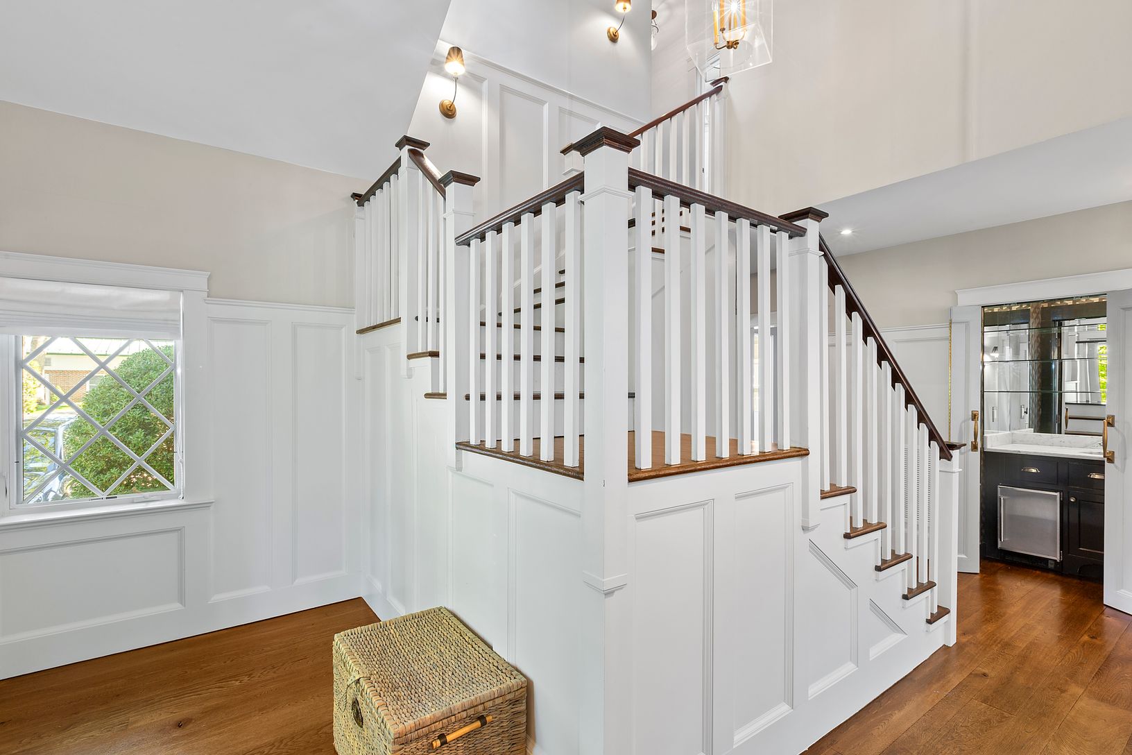 Located in the heart of Sag Harbor Village, this turn-key home on .34 acres offers five bedrooms, four full baths, and two half baths combining 4,000 sqft of living space on three beautifully renovated levels. The main floor features a dining room with a wood-burning fireplace, office with custom built-ins, powder room, and ensuite guest bedroom. Hidden behind double doors is a fabulous wet bar and pantry, making entertaining in the adjoining