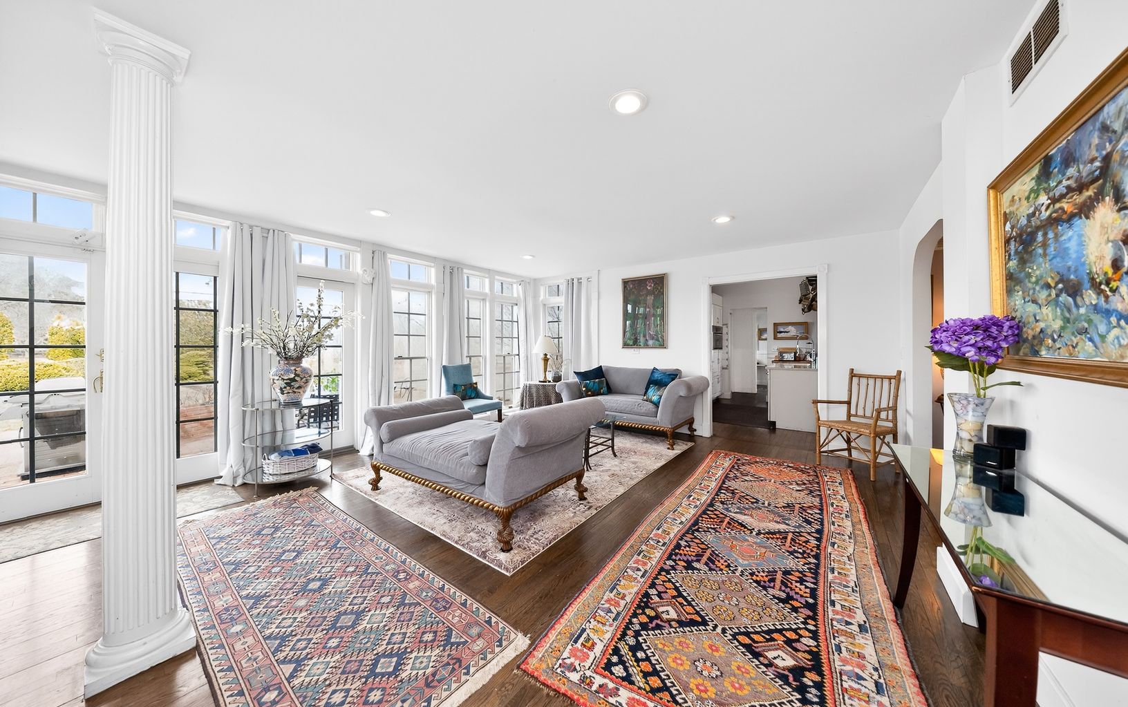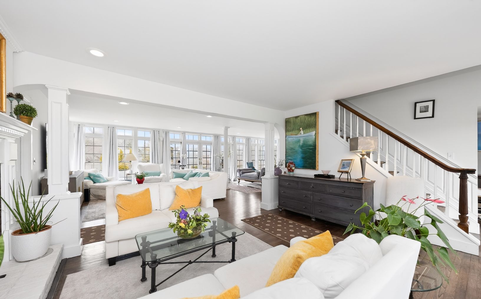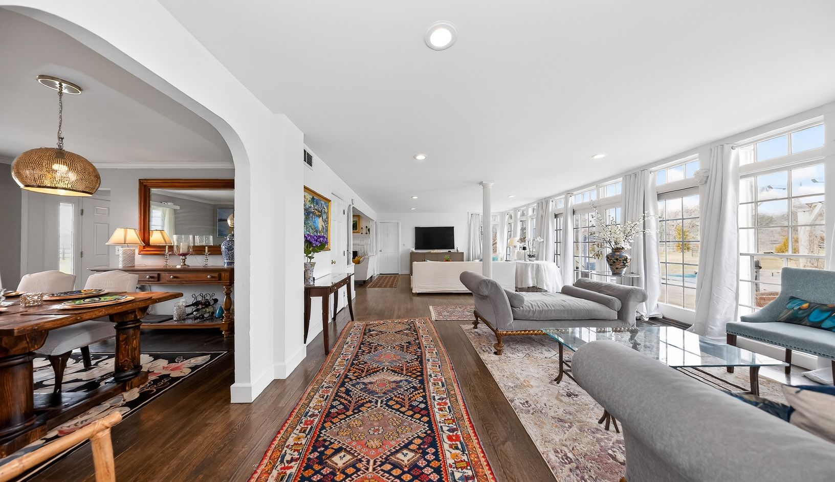 Nestled in beautiful horse country yet just moments from the village, this private 4-acre estate offers the perfect blend of country tranquility and convenience. The home features four bedrooms, each with a full en suite bath, plus a guest half-bath. The main-floor suite includes a king bed; two upstairs bedrooms offer queen beds; the fourth upstairs bedroom has a king that can convert to twins. New kitchen opens to large, welcoming living spa