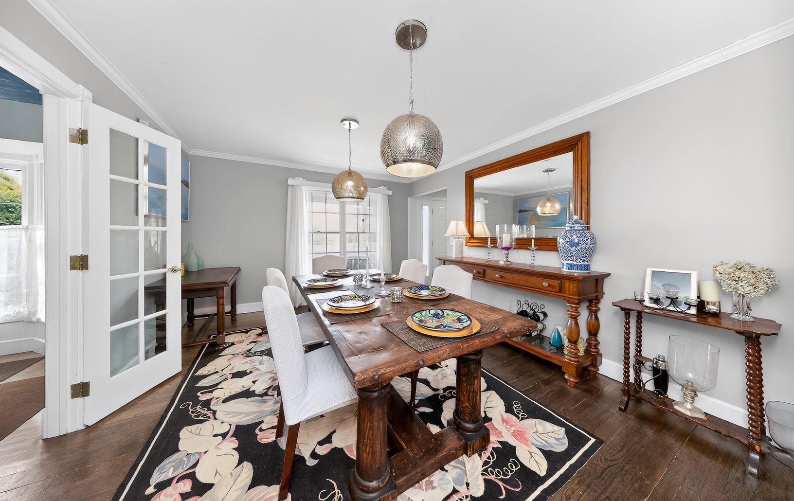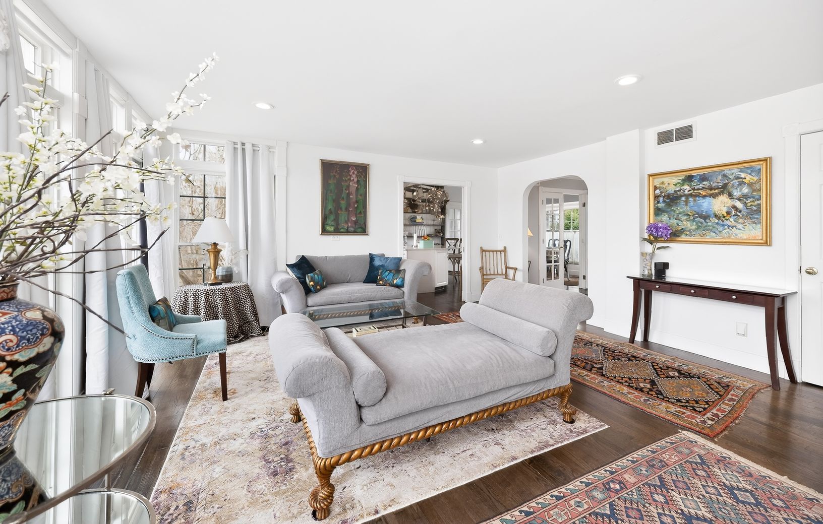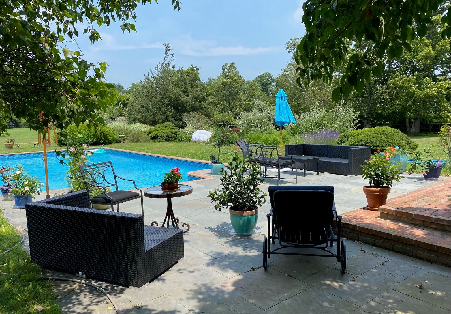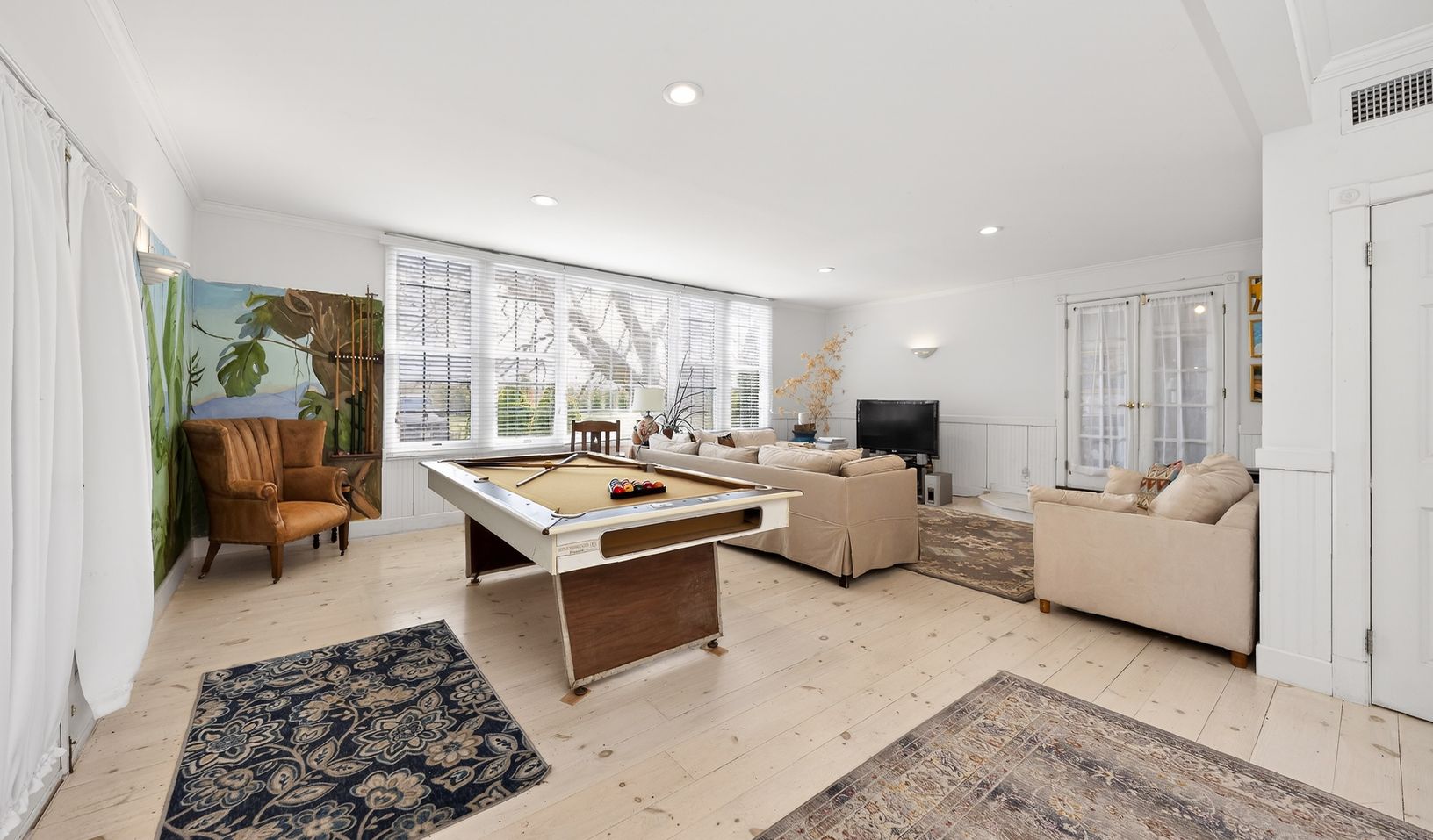 Nestled in beautiful horse country yet just moments from the village, this private 4-acre estate offers the perfect blend of country tranquility and convenience. The home features four bedrooms, each with a full en suite bath, plus a guest half-bath. The main-floor suite includes a king bed; two upstairs bedrooms offer queen beds; the fourth upstairs bedroom has a king that can convert to twins. New kitchen opens to large, welcoming living spa
