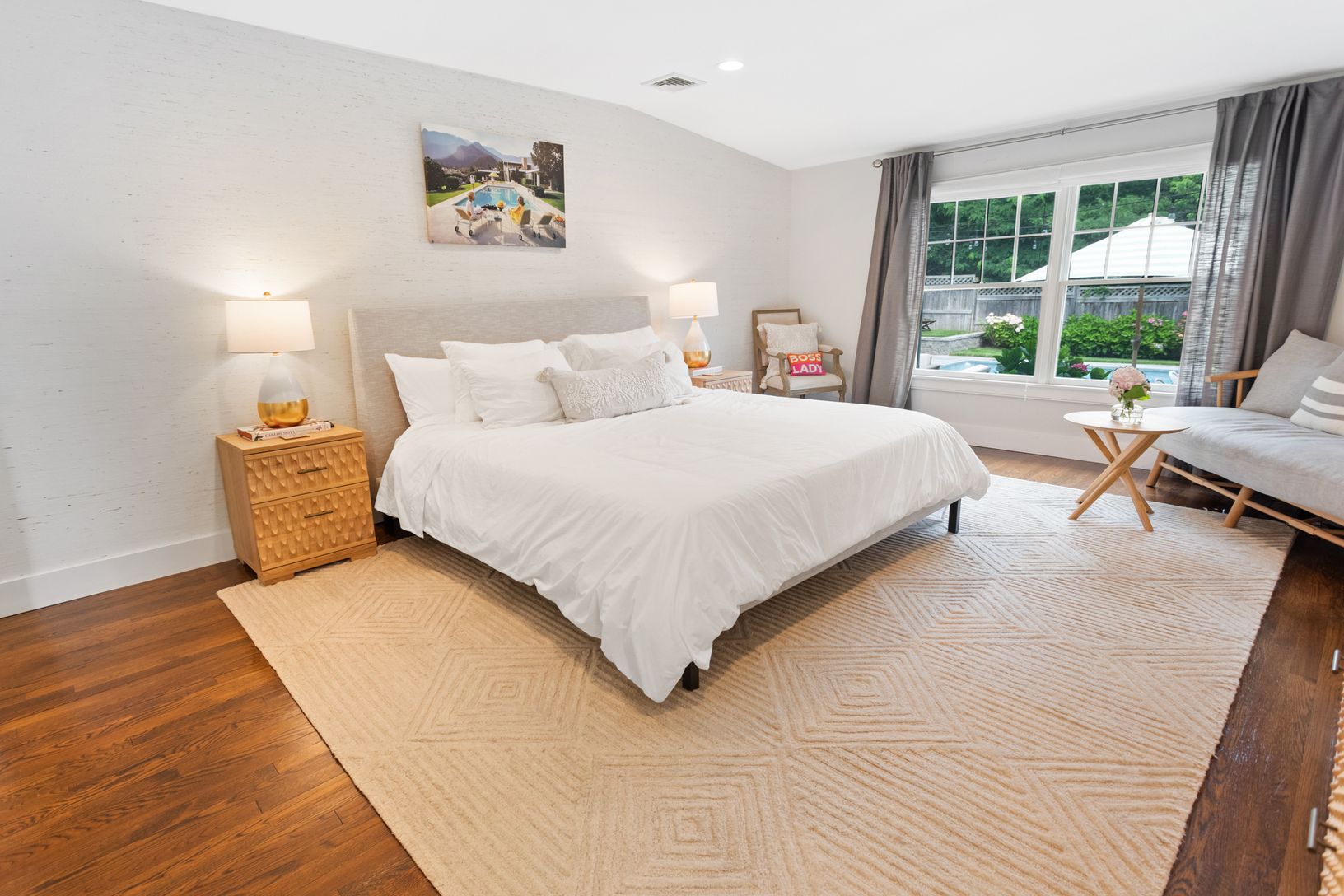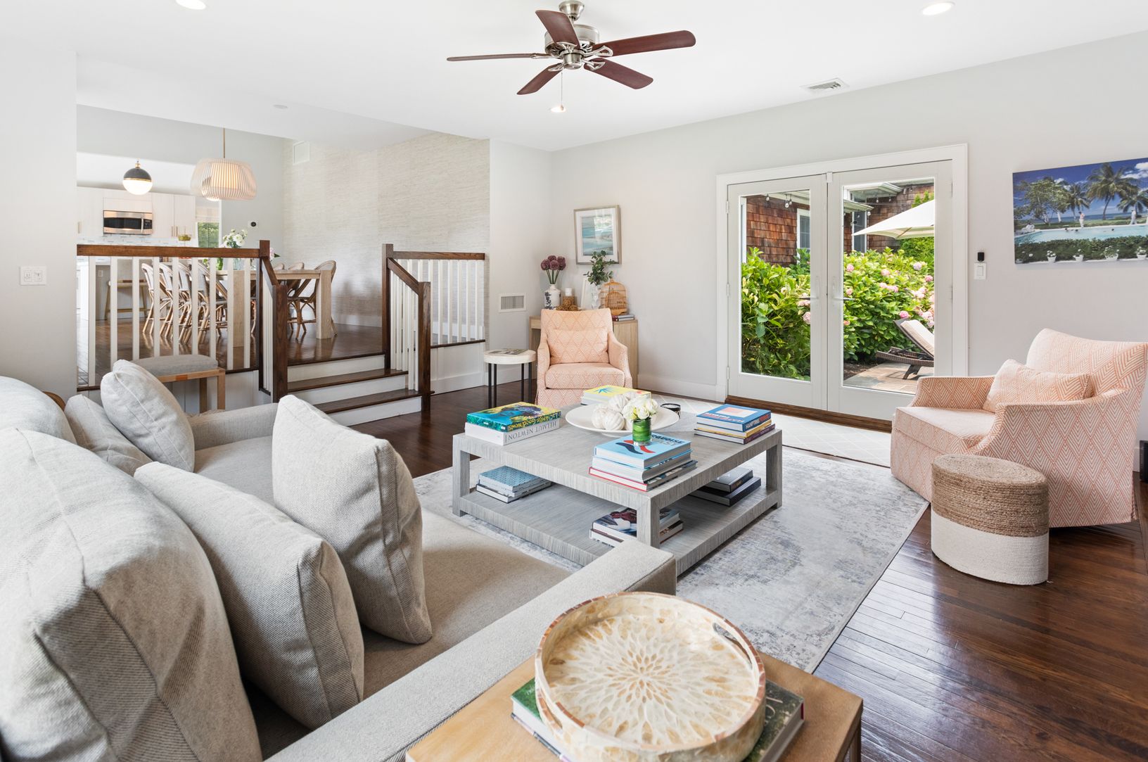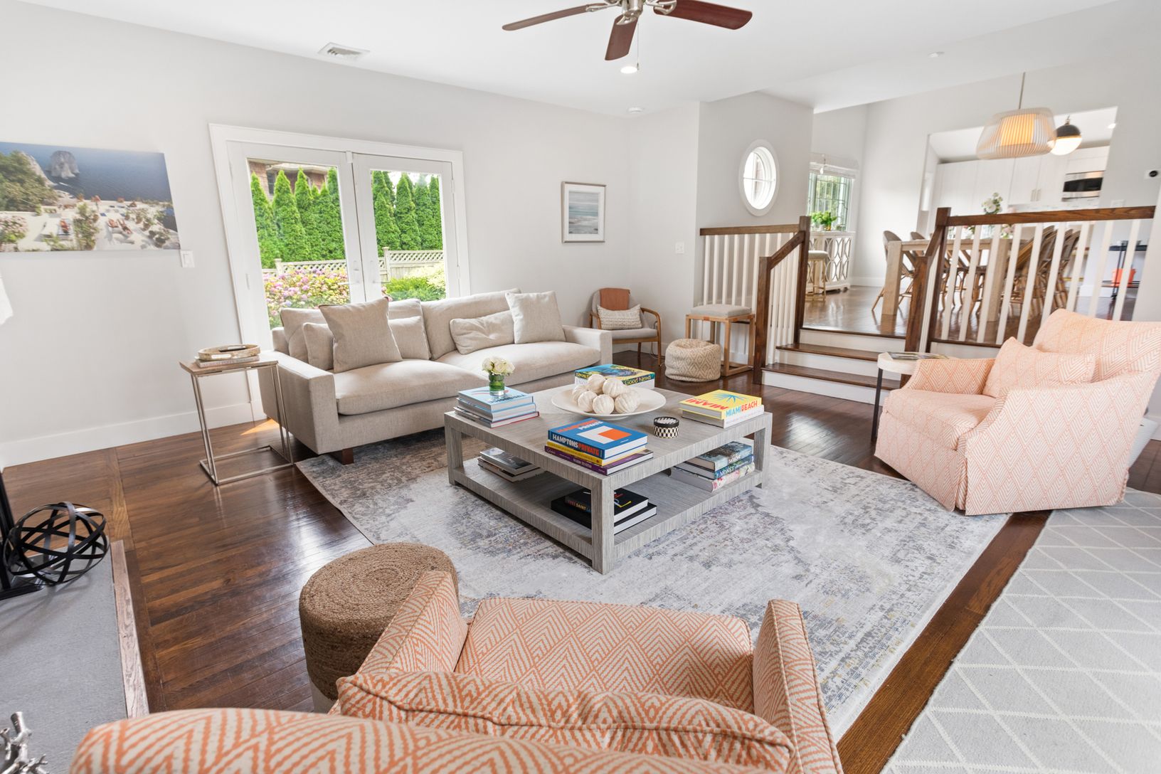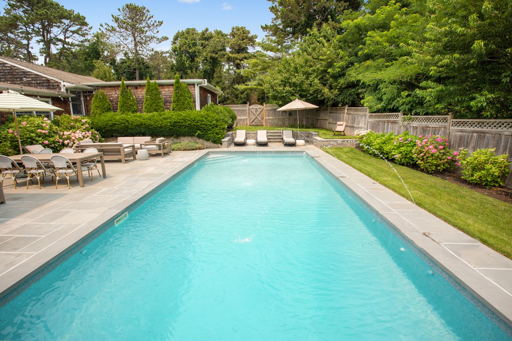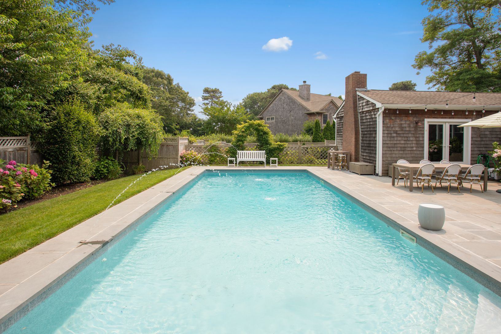 This south of the highway Southampton property is the perfect summer oasis. The home boasts 4 bedrooms and 3 full bathrooms. It features a stunning gourmet kitchen with stainless steel appliances that flows seamlessly into a dining area and living room anchored by a wood burning fireplace. Glass sliders open onto blue stone patios surrounding the inviting pool, ideal for relaxation and hosting gatherings. Additional highlights include a spacio