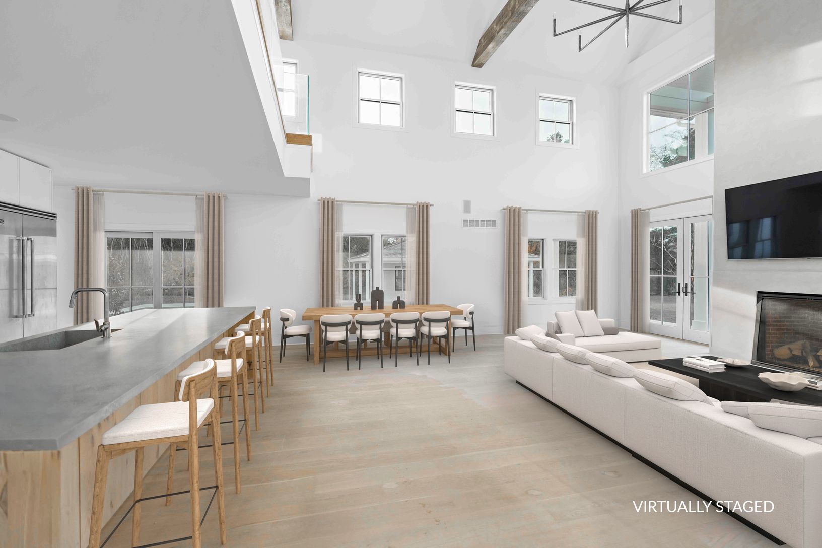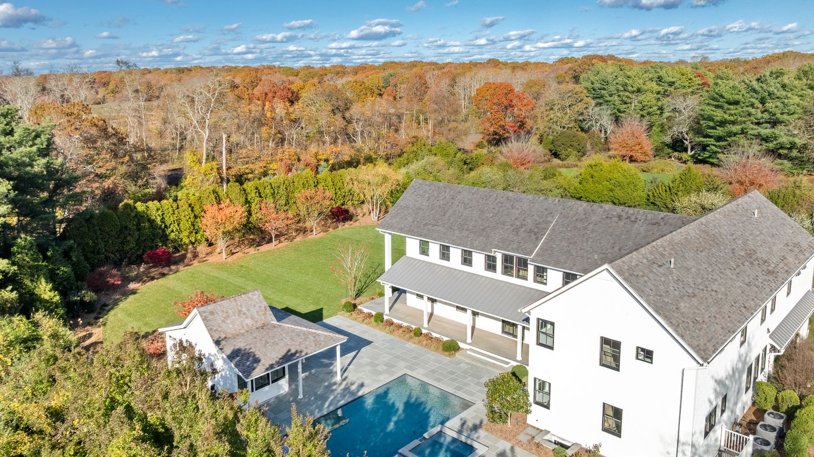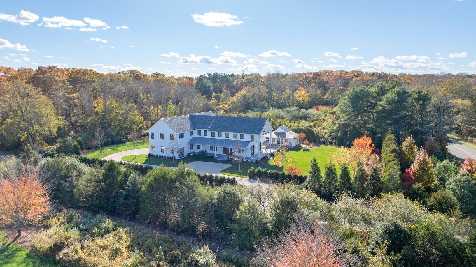 Welcome to this exceptional estate set on 1.3 beautifully landscaped acres, offering the perfect blend of modern sophistication and timeless craftsmanship. Wrapped in classic cedar shingle siding with a welcoming covered front porch, this home exudes warmth and understated elegance from the moment you arrive. The circular driveway provides ample parking, while an electric gated entry ensures privacy and security. Across from a scenic preserve