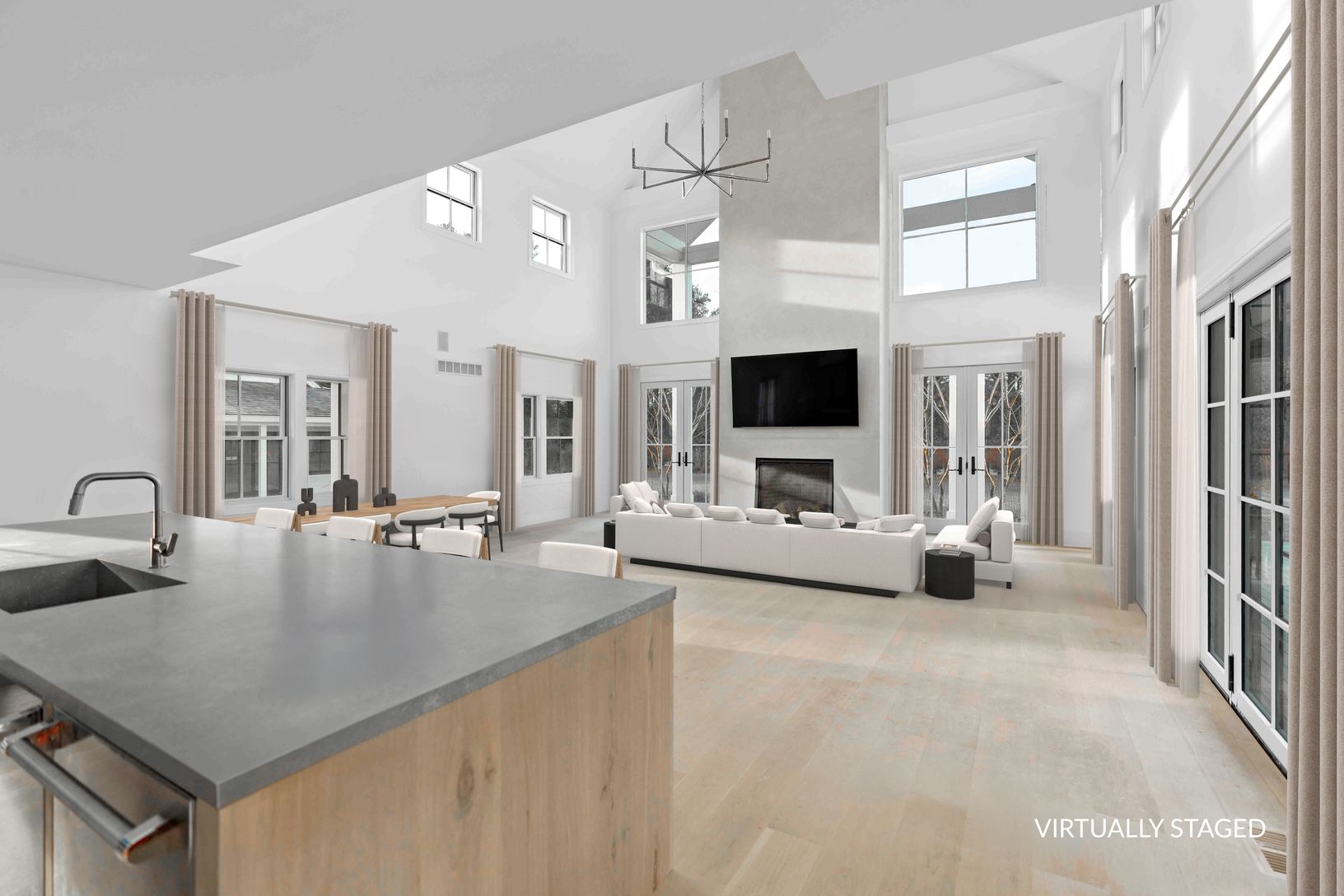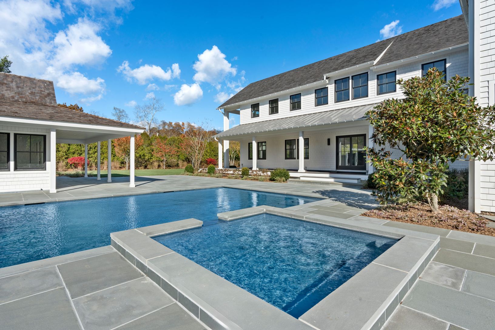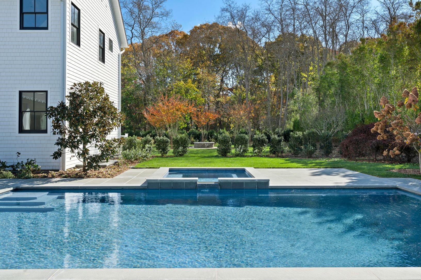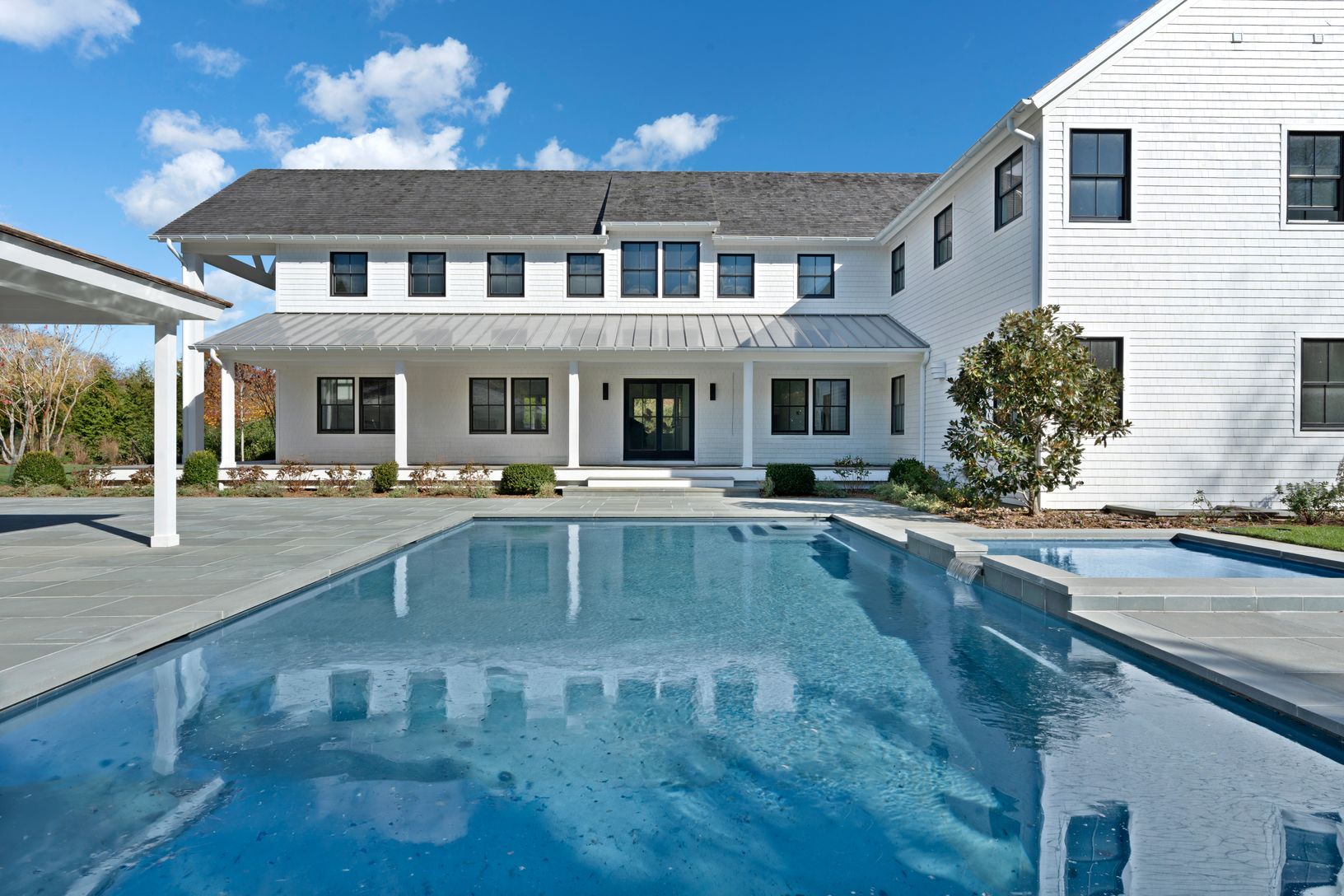 Welcome to this exceptional estate set on 1.3 beautifully landscaped acres, offering the perfect blend of modern sophistication and timeless craftsmanship. Wrapped in classic cedar shingle siding with a welcoming covered front porch, this home exudes warmth and understated elegance from the moment you arrive. The circular driveway provides ample parking, while an electric gated entry ensures privacy and security. Across from a scenic preserve