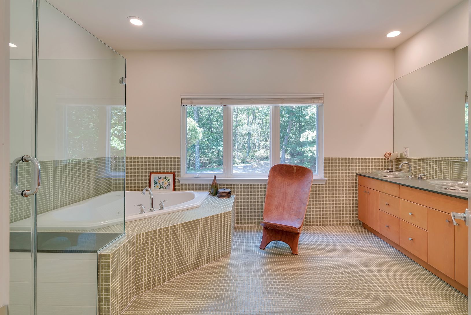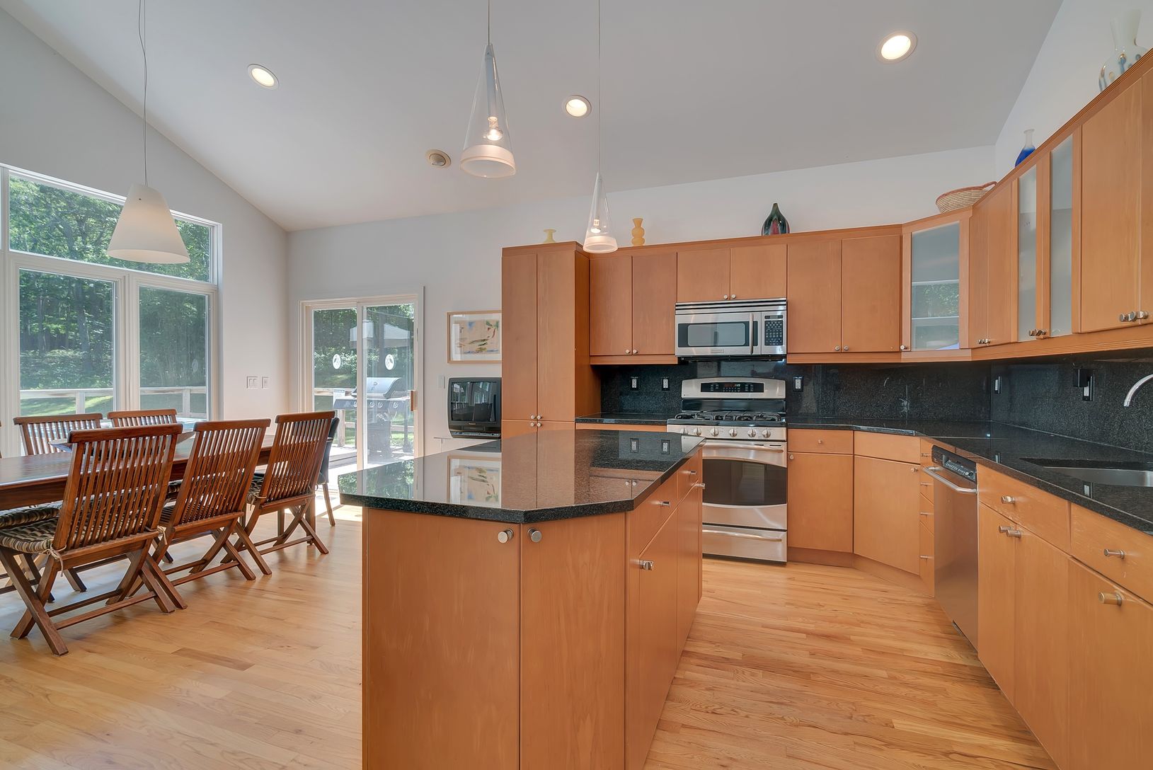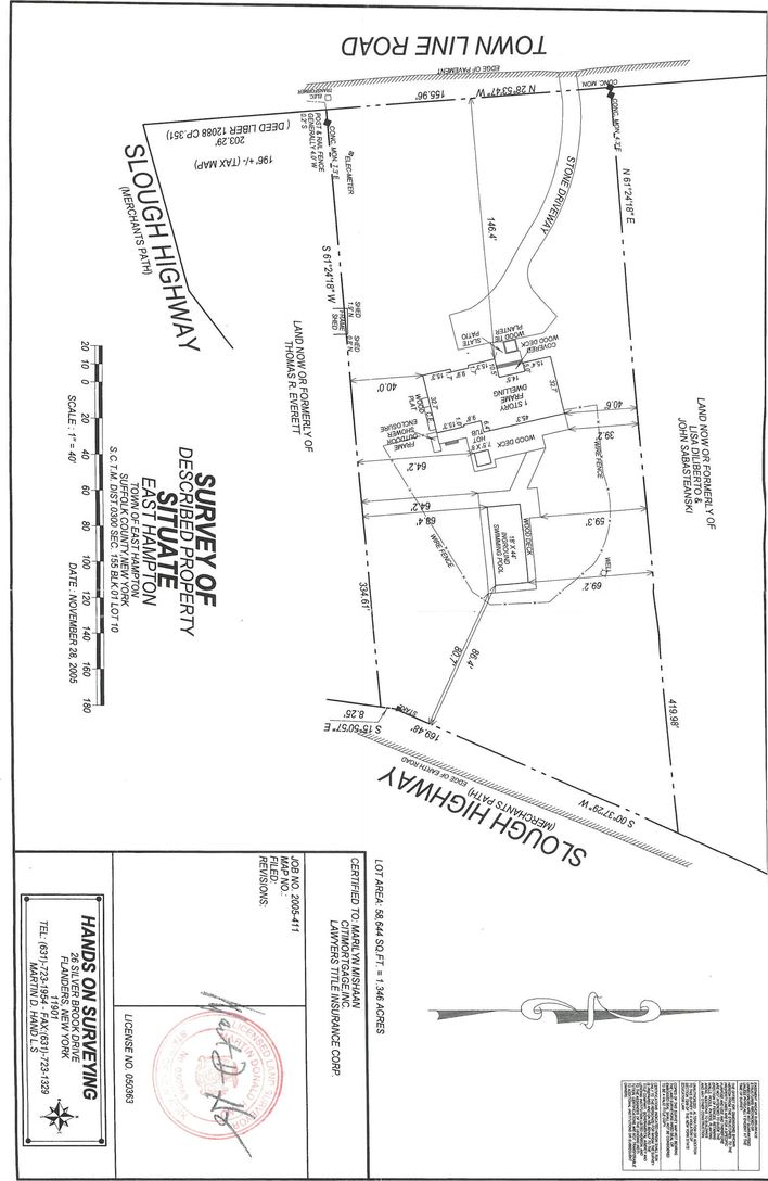 Located at 275 Town Line Rd Sag Harbor also known as 142 Merchants Path Wainscott this new to the market one level contemporary has it all. There is approximately 2,500 sf of living space consisting of open plan vaulted ceiling living room with double sided fireplace ,cooks kitchen, dining area, master bedroom with large ensuite bath with jacuzzi, and on the other wing of the house three guest bedrooms and three baths. Multiple sliders and a s
