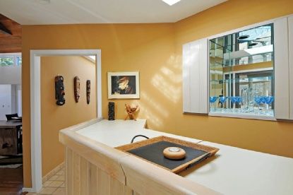 Situated on over 2 very private acres with room for tennis, this spacious one level contemporary's architecture commands your attention. This is an interesting and unique home offering a generous sized great room with vaulted beamed ceiling, a dramatic stone fireplace and walls of glass opening to a beautiful covered deck by the heated pool. The large eat-in-kitchen has an adjacent laundry/pantry/mudroom and a separate wet bar area which is ve