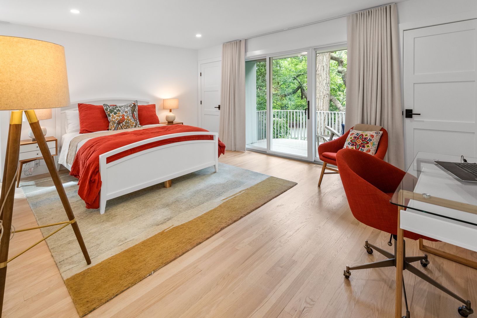 The first floor offers effortless flow with two sunlit living spaces, a sleek kitchen, and a formal dining room-all opening through sliders to the outdoo