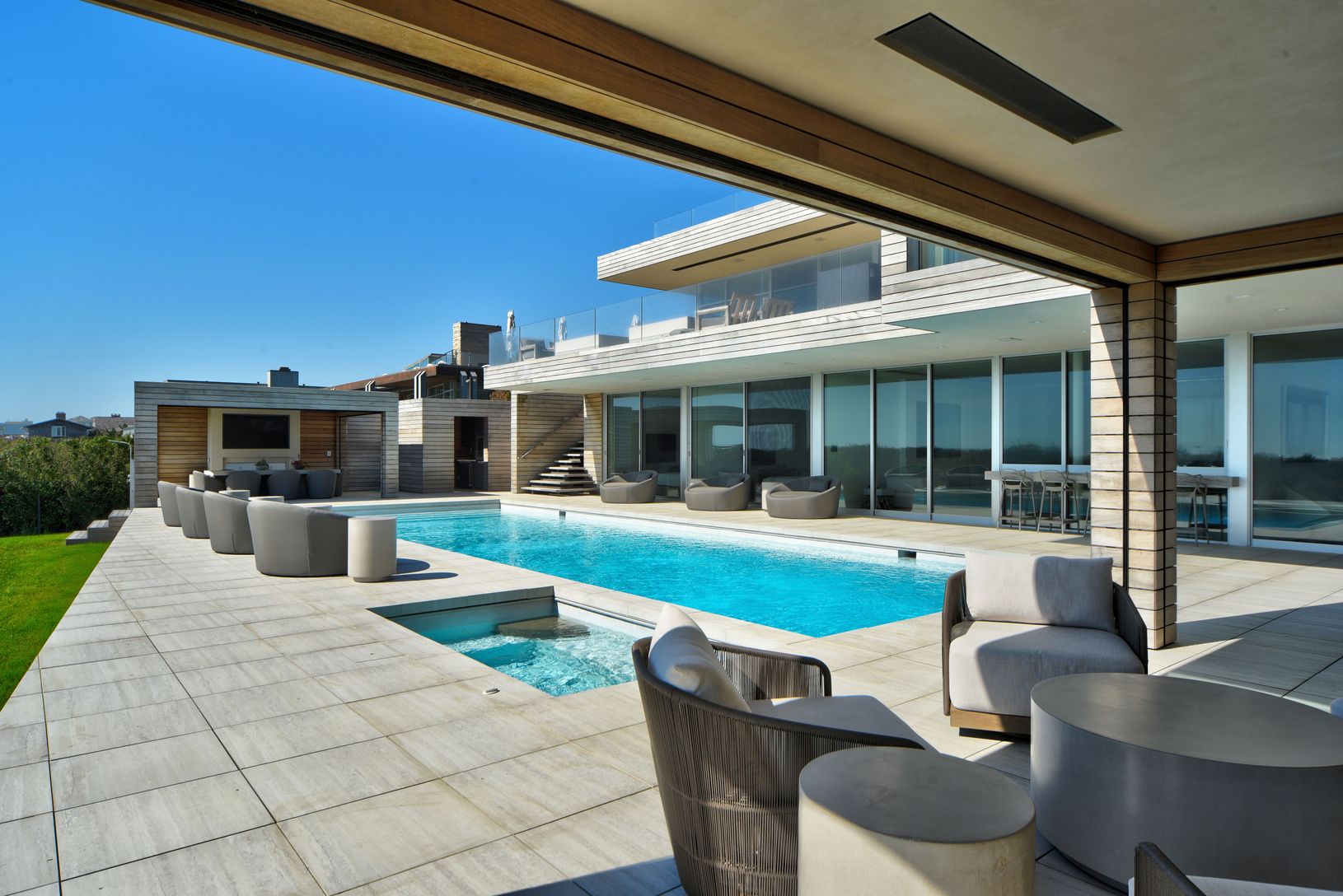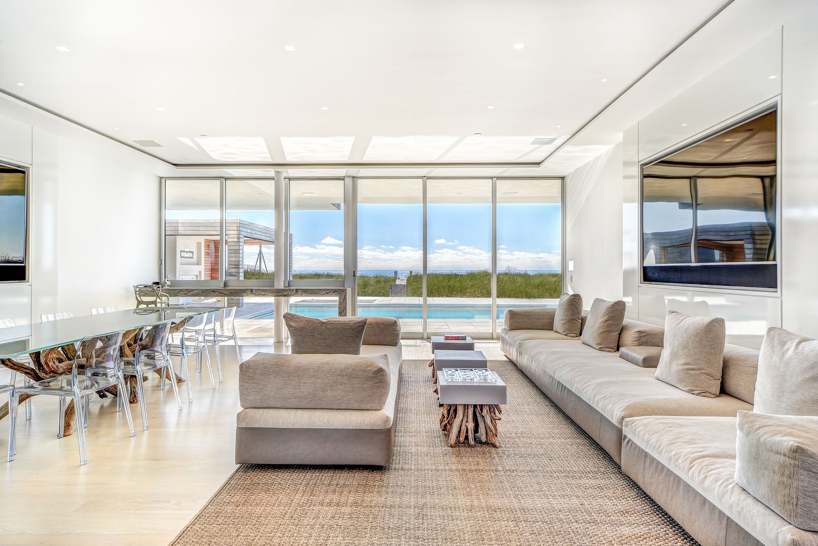 The most amazing oceanfront experience awaits if you are quick enough to rent this magnificent ode to Hampton beachfront living available for various time frames. The ultimate in luxury, this sprawling just completed modern beachside estate offers one renter an unparalleled experience along 125' of pristine oceanfront within more than 11,000 SF of luxurious living space, within a striking modern edifice offering heroic views in all directions.