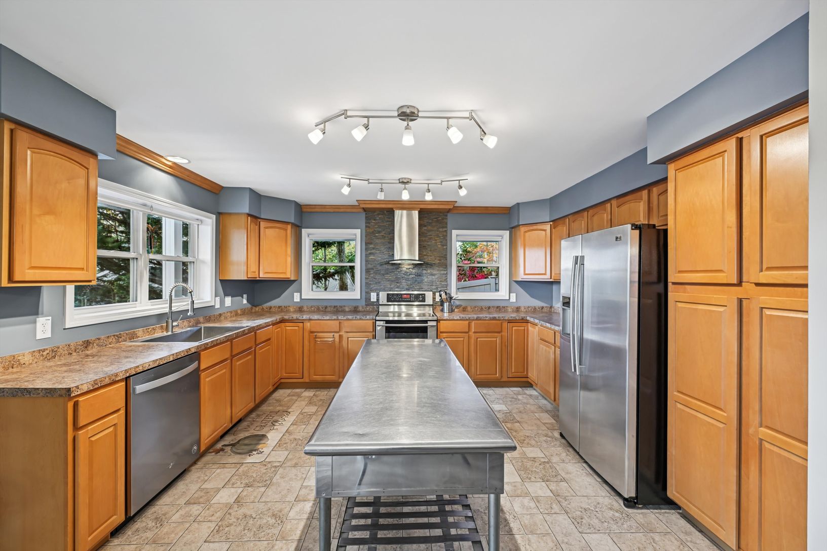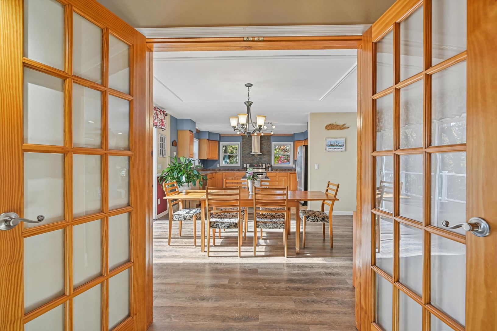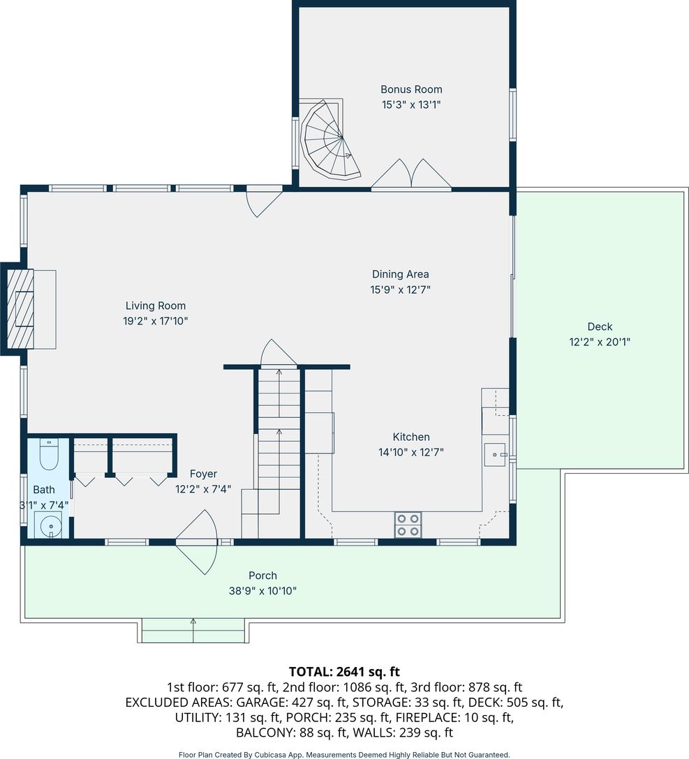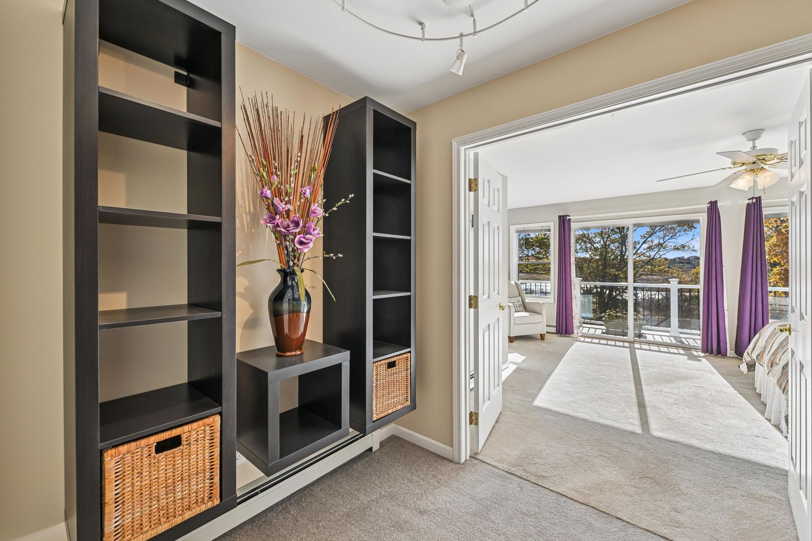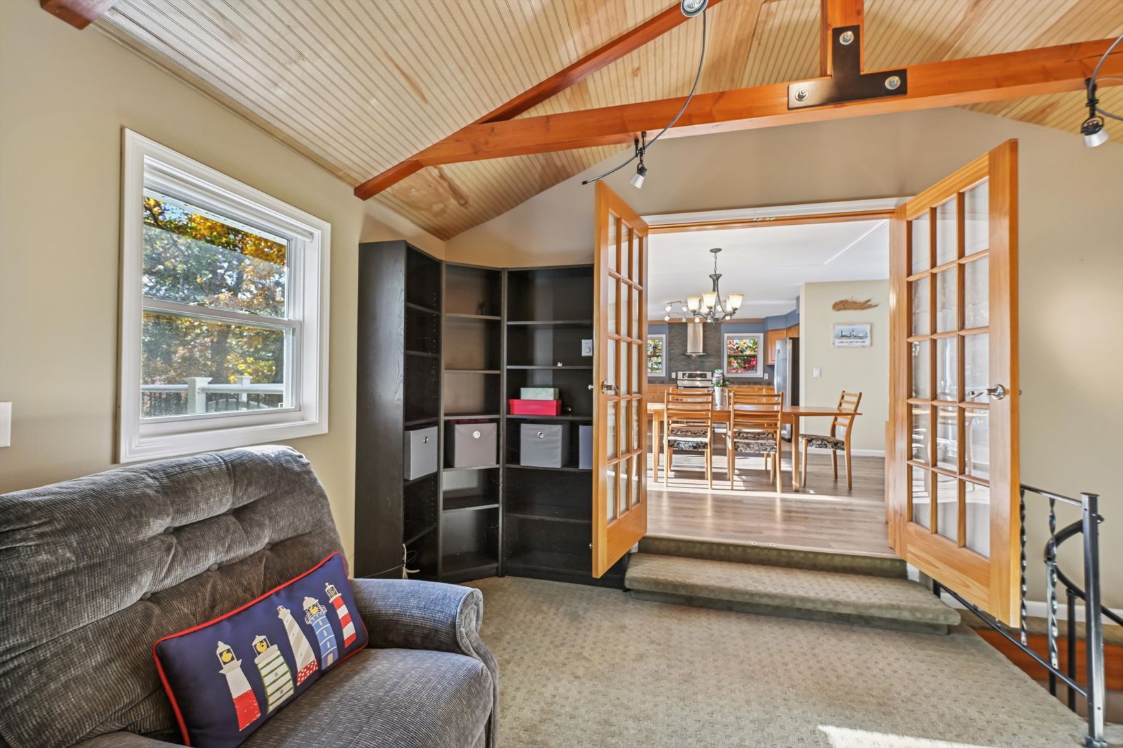 This enchanting home combines comfort, style, and convenience to offer a unique living experience. As you enter on the second level, you're greeted by a warm, inviting open-plan living room/dining room/kitchen. The heart of this space is the wood-burning fireplace, featuring a stunning stone surround crafted by a master mason. Adjacent to the living room, you'll find a bonus room that could easily serve as a third bedroom. A spiral staircase l