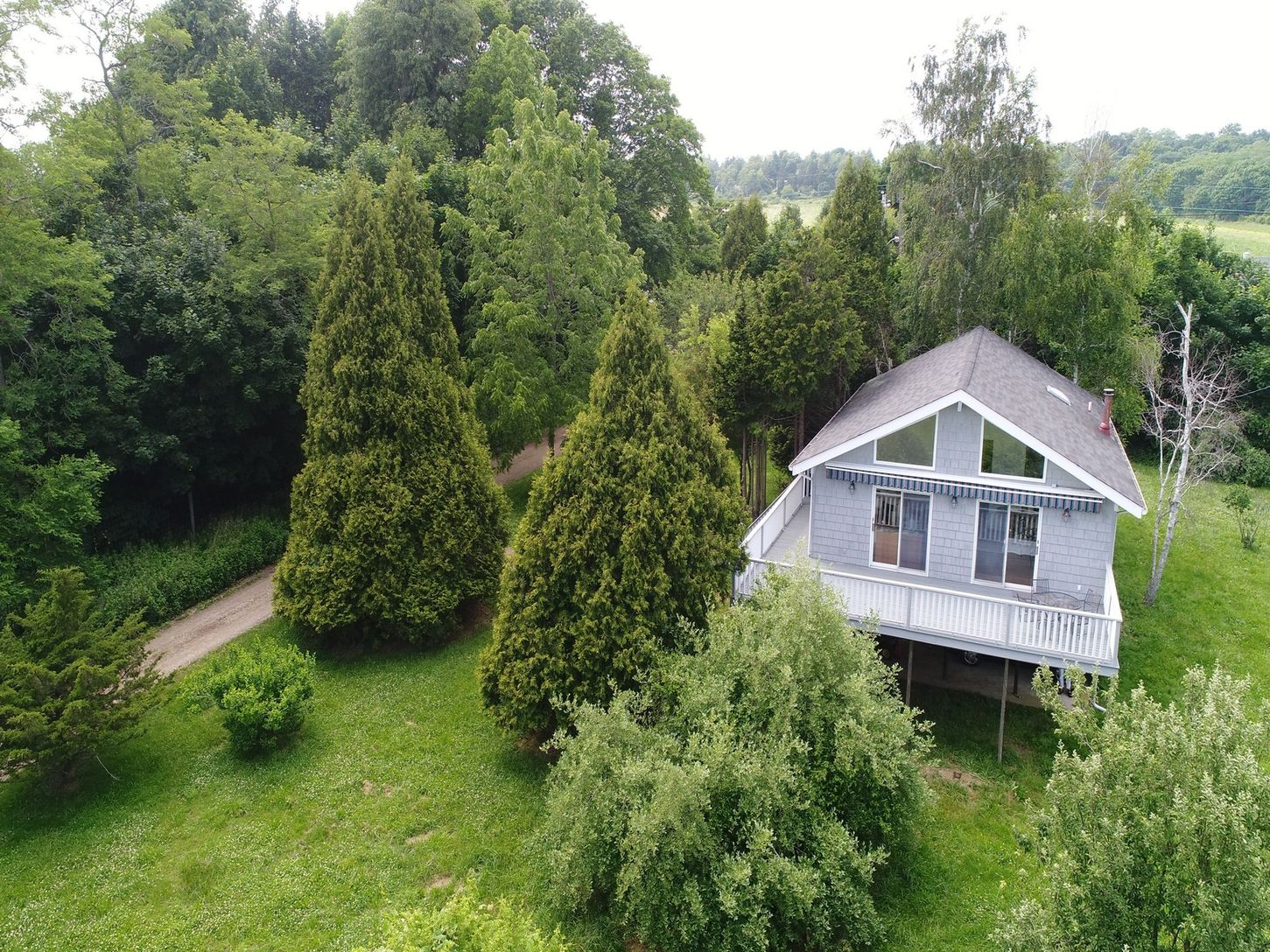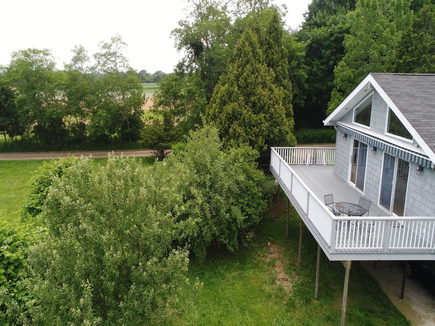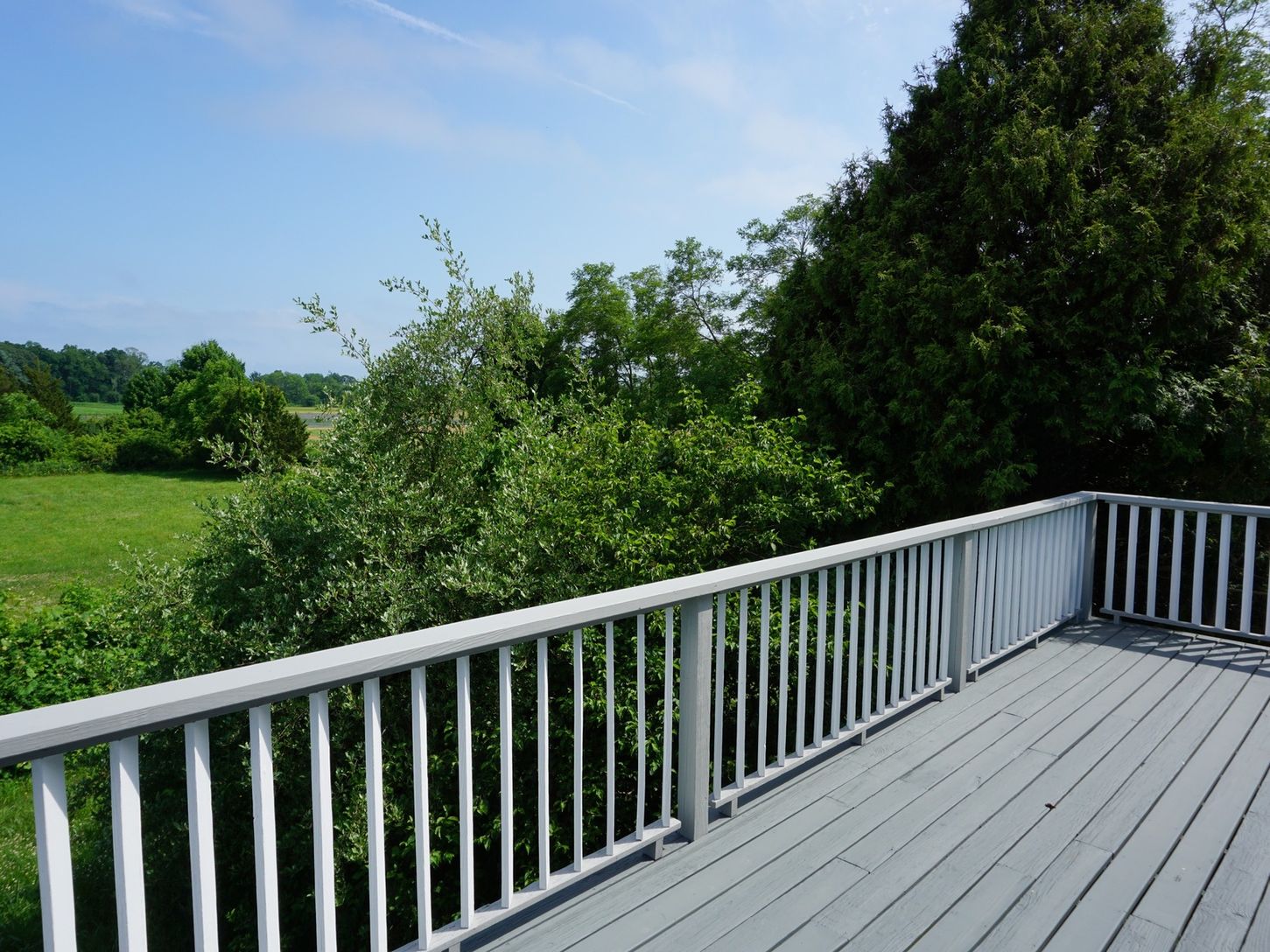 Contemporary, chic mid-century home on 2.2 acres in Orient. Three bedrooms, 2 full baths, open kitchen. Living room opening onto a wrap-around deck overlooking pastoral property with farm views. Hardwood floors, beautiful natural light & large retractable electric awning shading deck.