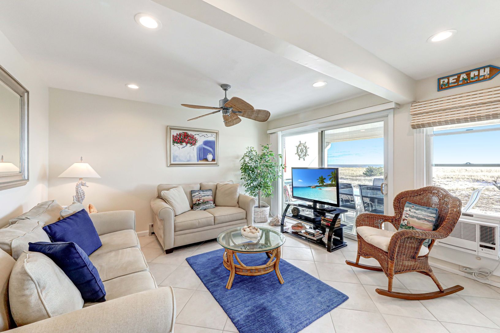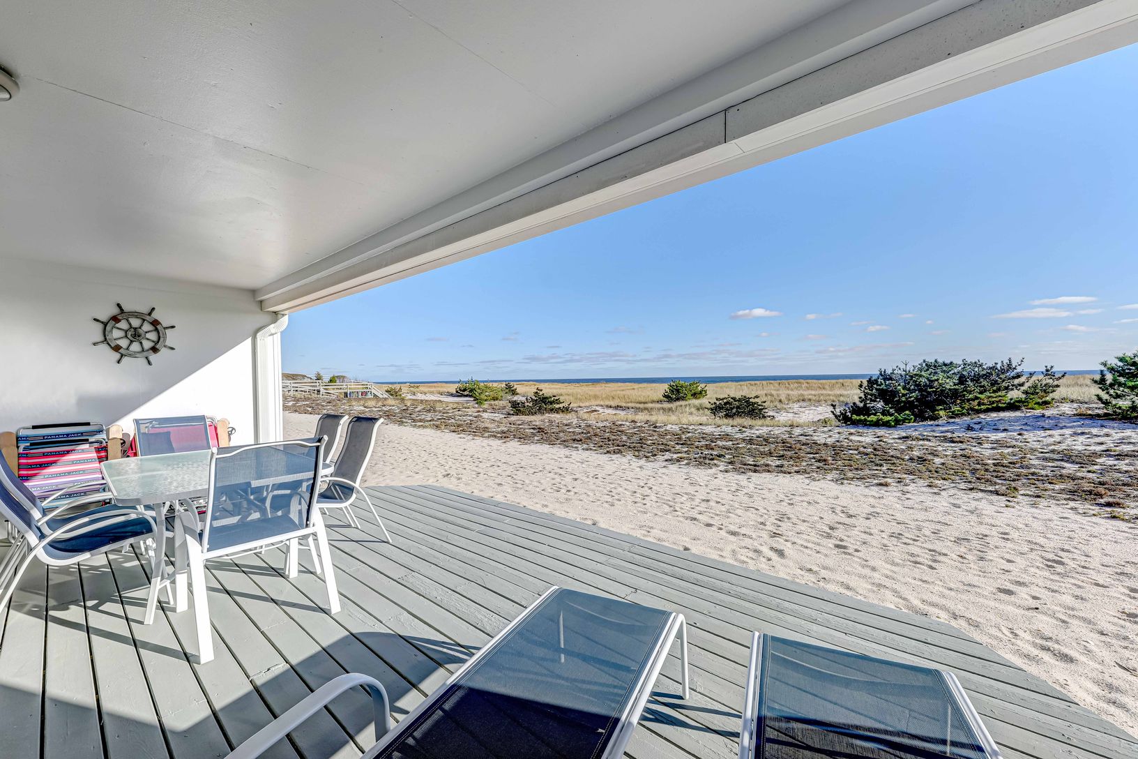 Situated just over the Jessups Lane bridge within the Ocean Dunes complex sits this spectacular oceanfront unit. The first floor unit boasts an ensuite bedroom, an additional guest bedroom, a full baths, and an open-concept kitchen, living room and dining room with double sliding glass doors that lead you to your own private deck just steps away from the sand. This condo unit provides you with front row seats to Long Island's first class sunri