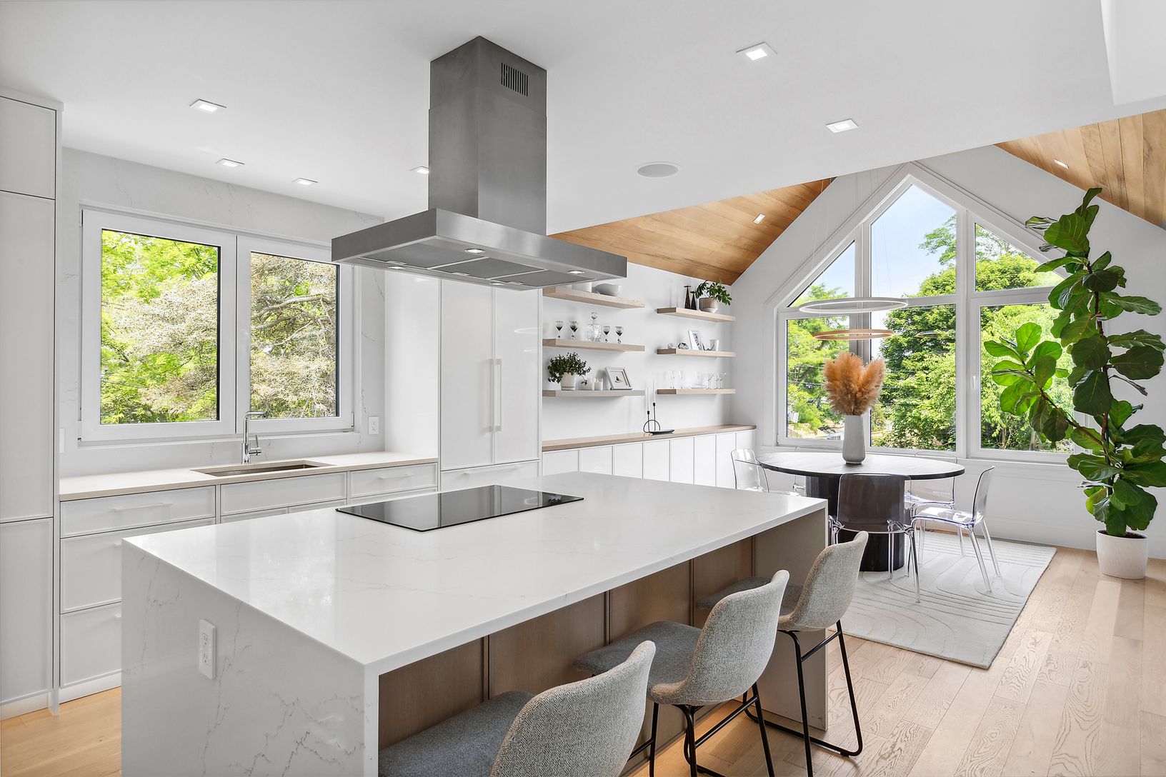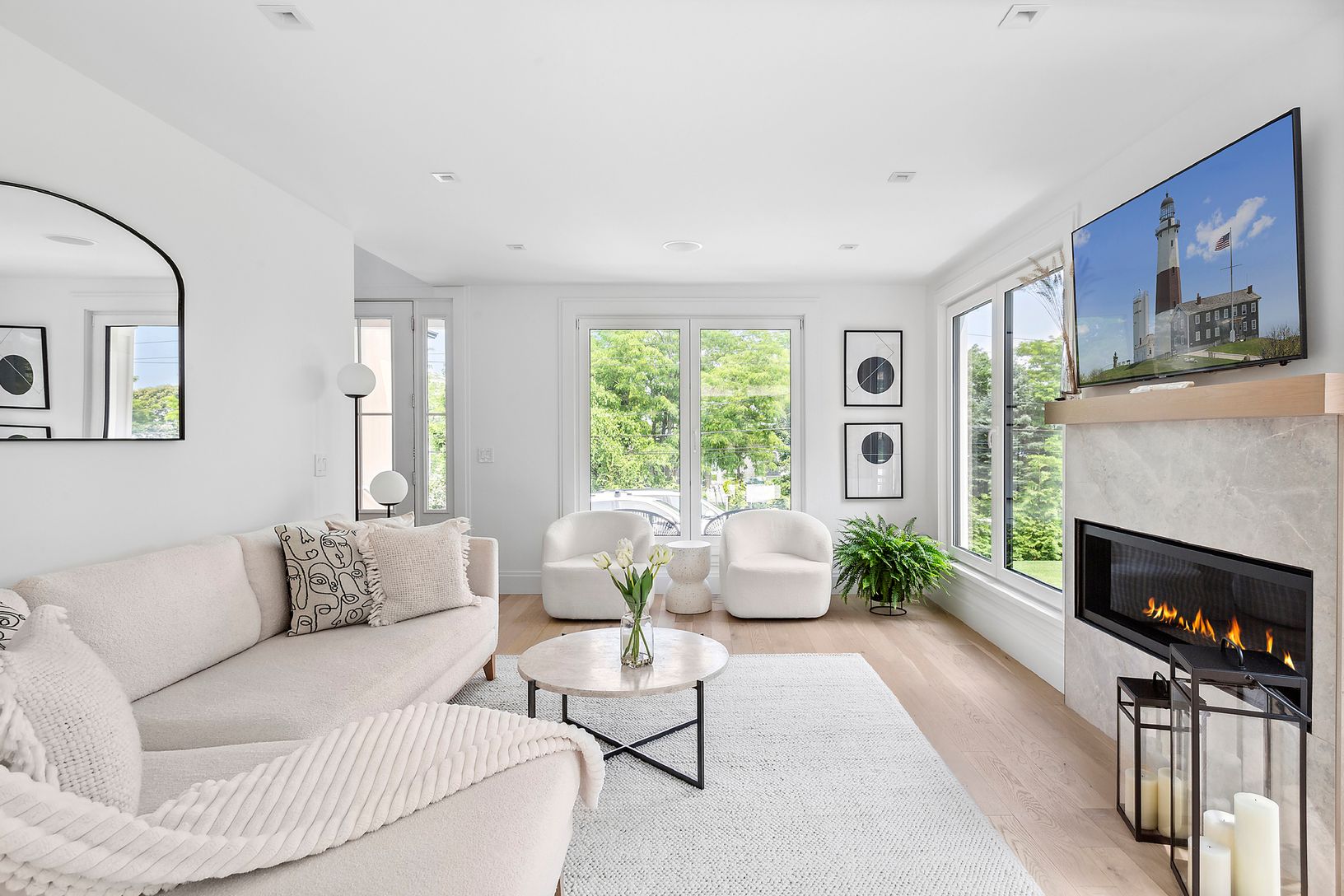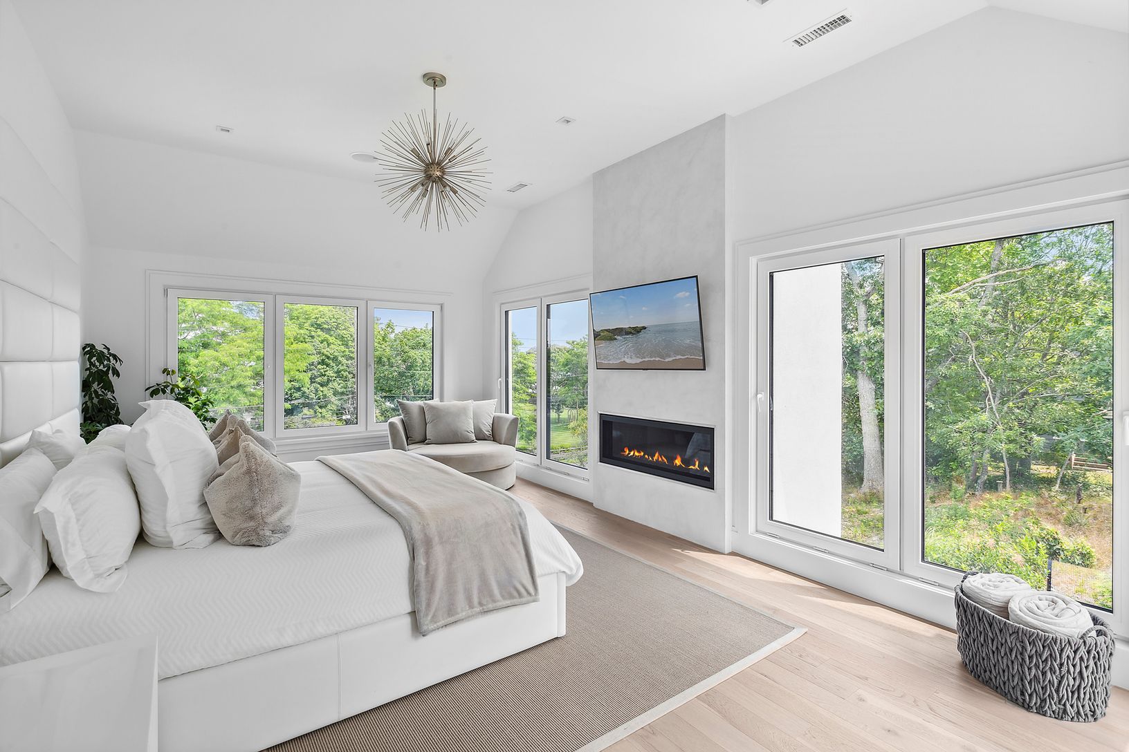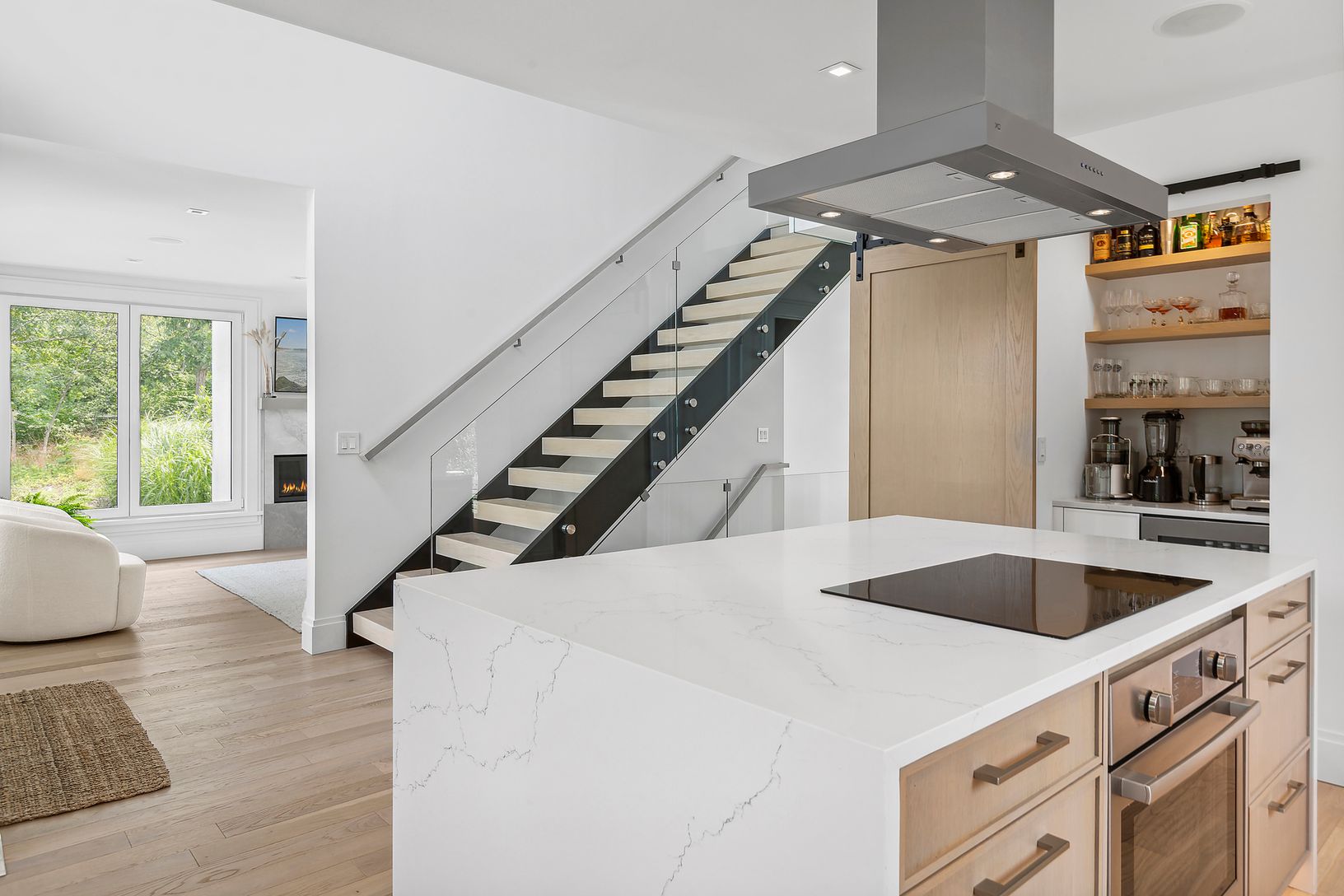 Welcome home to your 3200 +/- SF breathtaking 3-bedroom, 3.5-bath home, situated on 1.20 acres with every modern amenity, captivating winter water views on an idyllic setting. Details include, all-white oak flooring throughout, soaring open ceilings with tons of natural light pouring in through German imported windows, radiant heated bathroom floors, all of which exude elegance and sophistication. On the main level, you'll find a tastefully ap