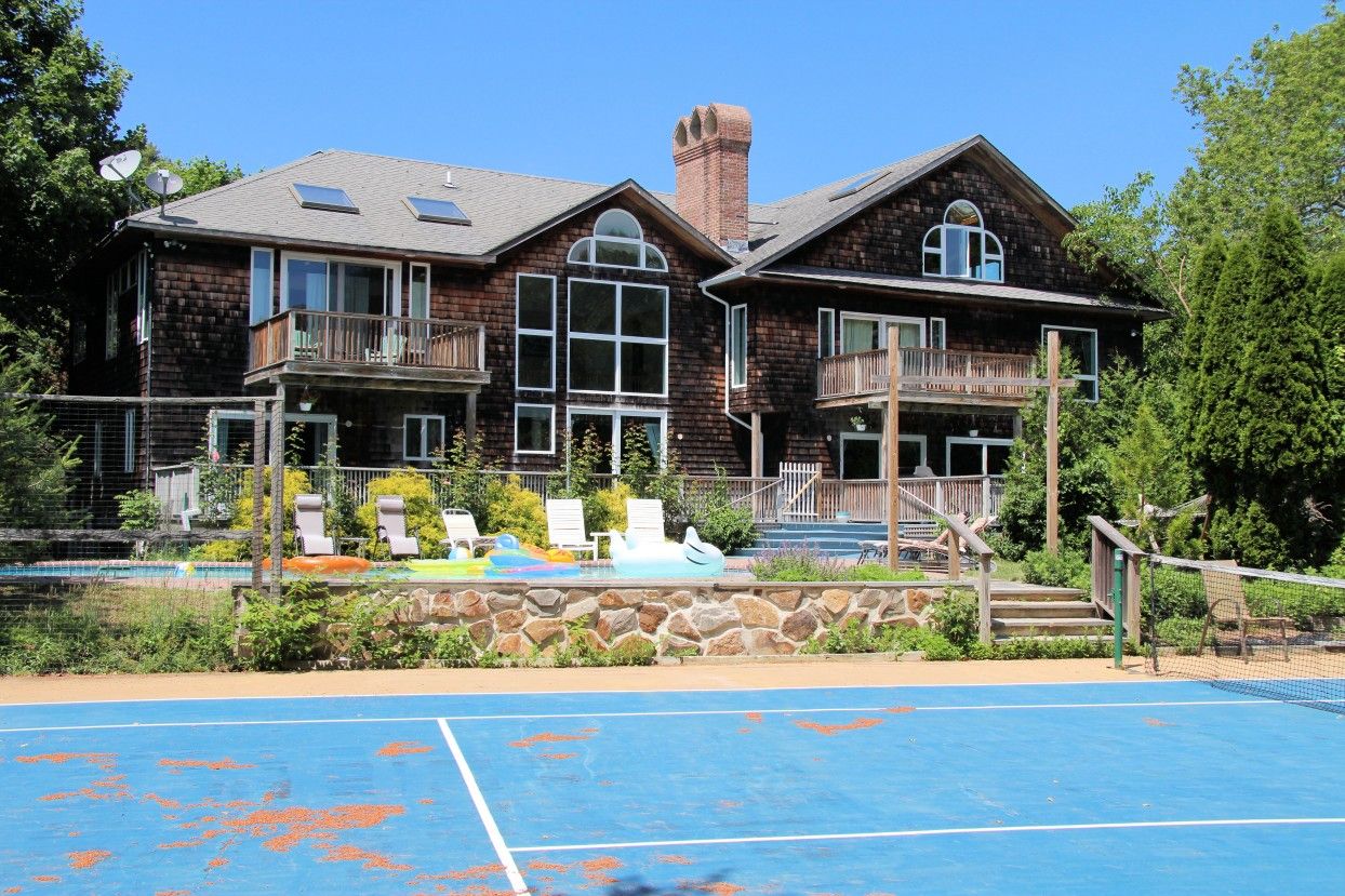 Very large 6 bedroom, 6 bath home with pool and tennis court. Front covered porch, multiple decks and very large home. Perfect summer rental, very private but close to town and the beach. Also available weekly for $7500 per week