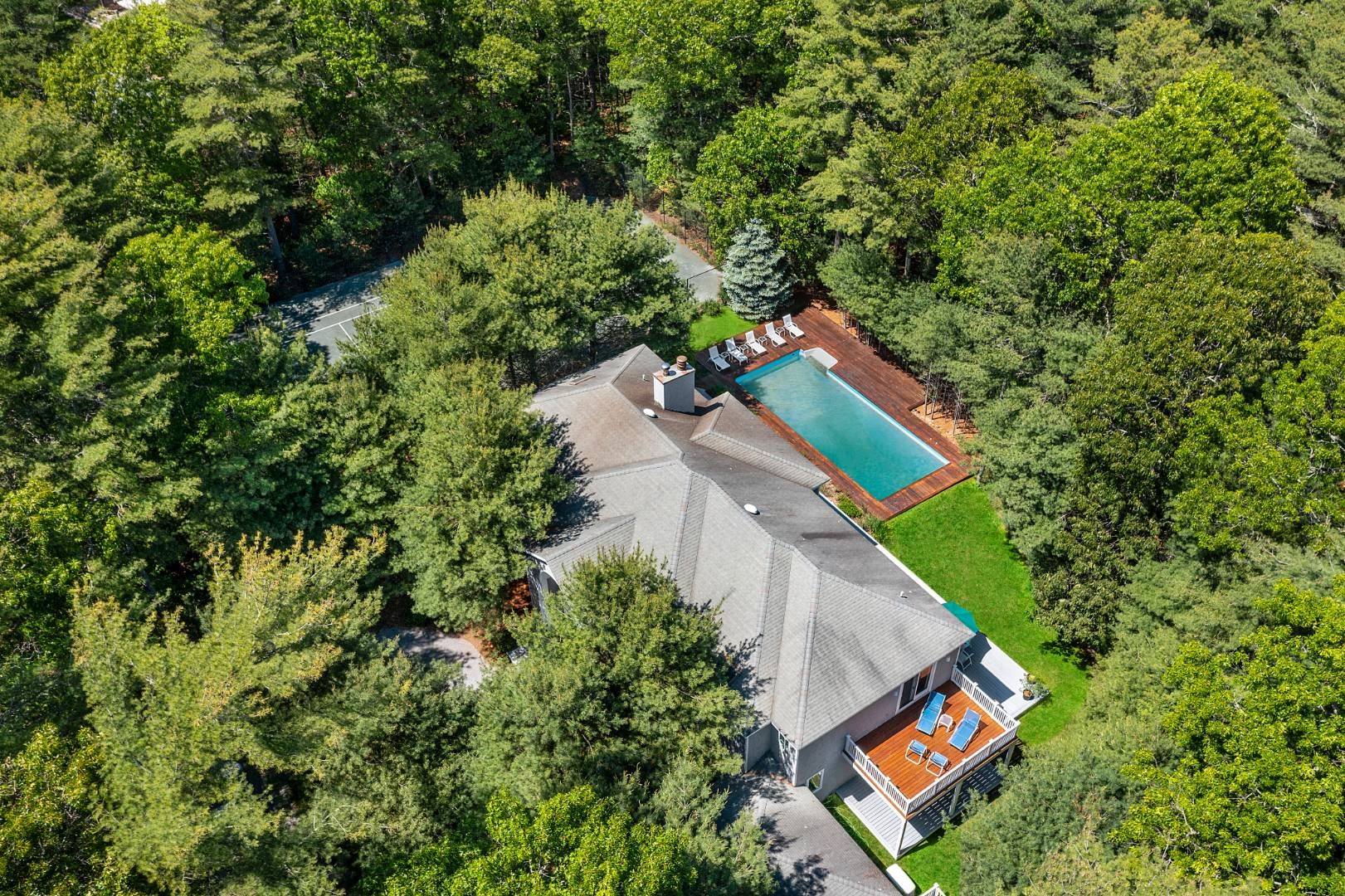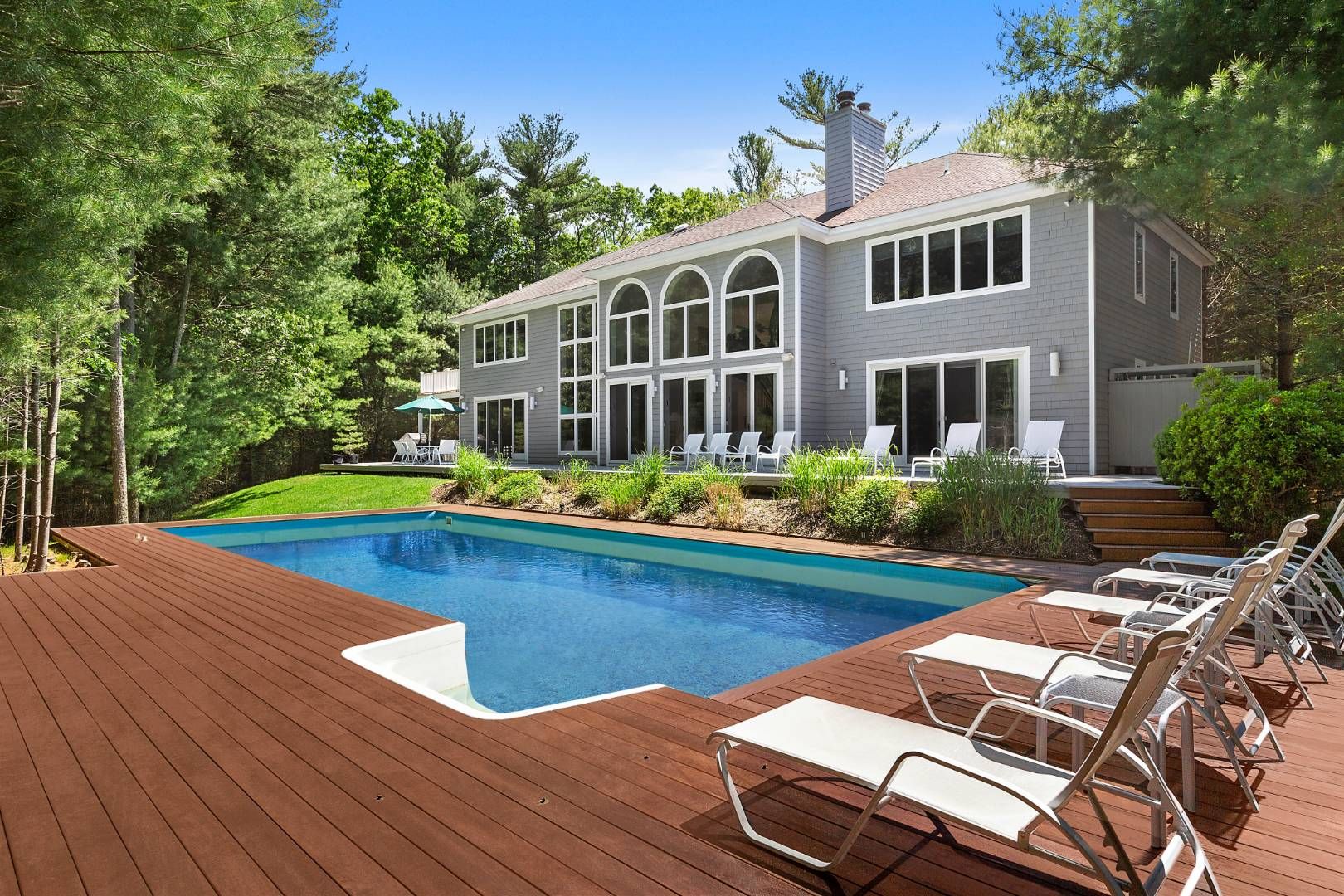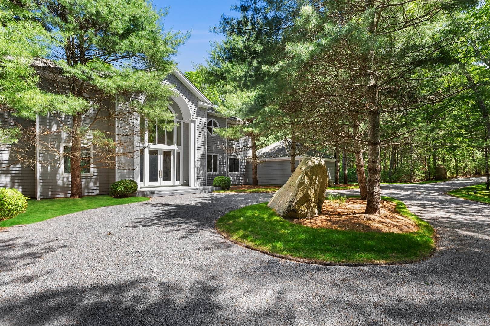 Rental Registration# 24-0,180 - Hidden at the end of a long wooded private driveway and surrounded by a nature preserve with beautiful trails this bright and sunlit 4500 +/- square foot postmodern home offers the ultimate in convenience, beauty and especially privacy. Located in the Bull Path area of East Hampton, this estate offers double height entry, a 22-foot-high ceiling in a large great room incorporating both living and dining areas alo