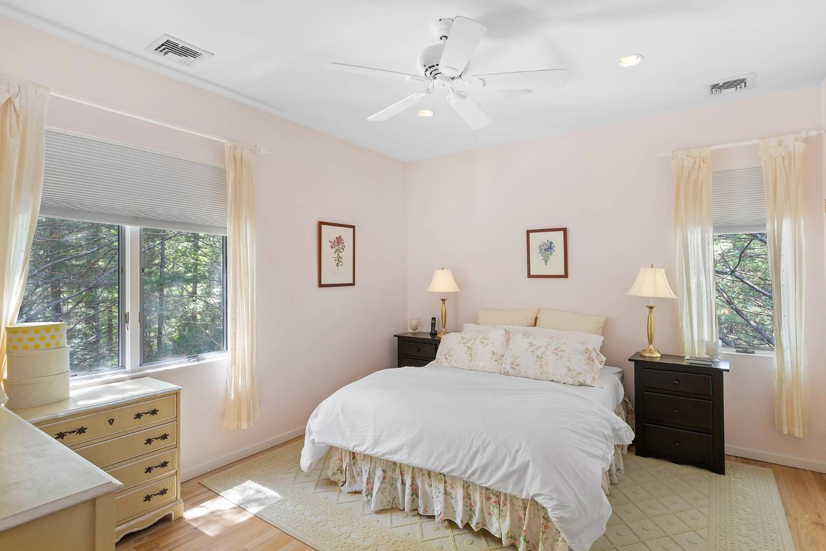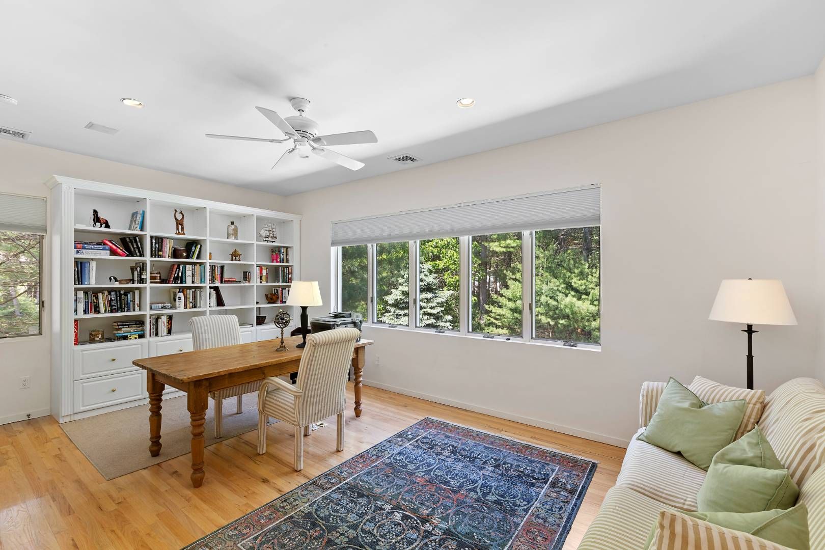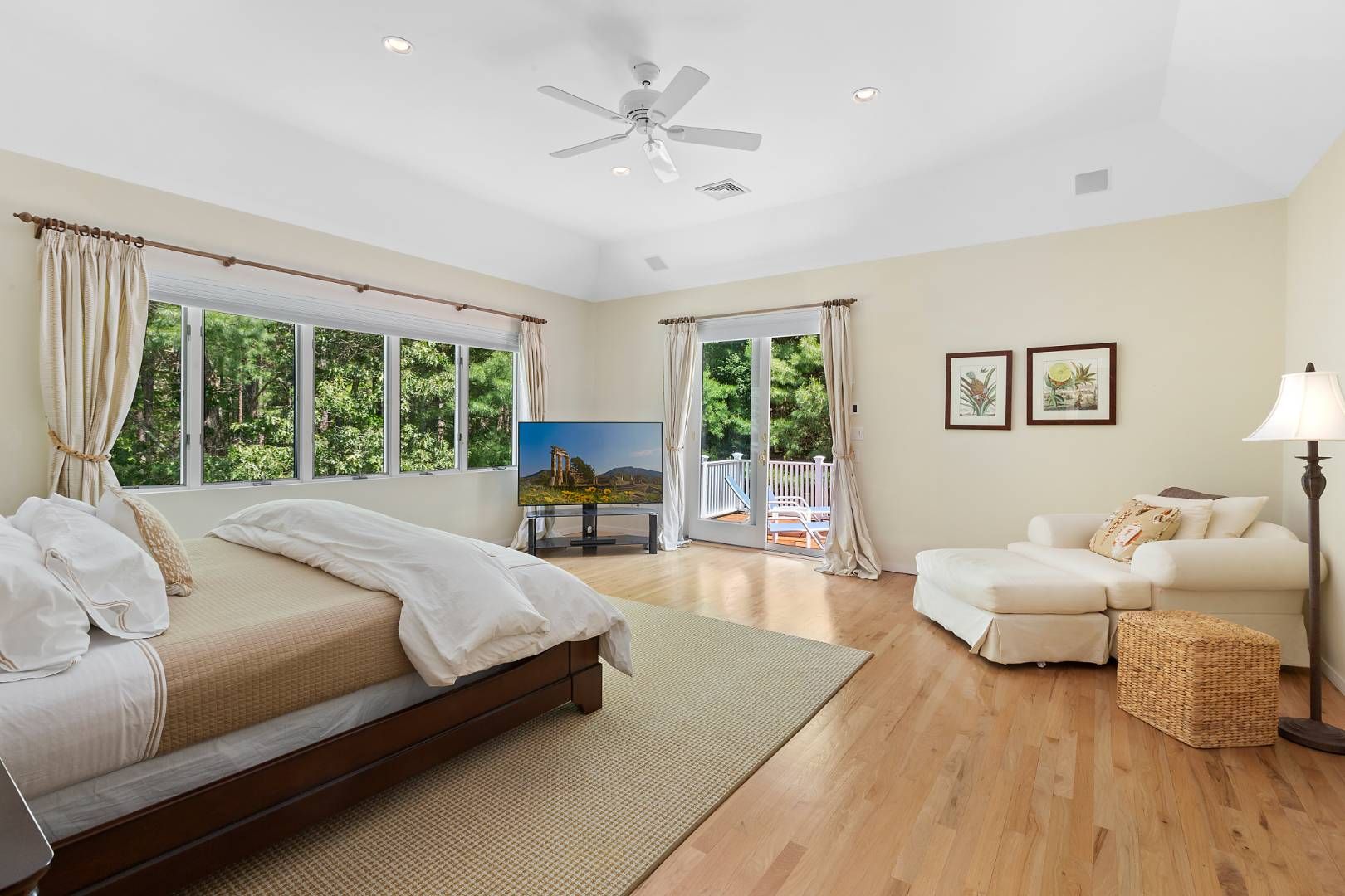 Rental Registration# 24-0,180 - Hidden at the end of a long wooded private driveway and surrounded by a nature preserve with beautiful trails this bright and sunlit 4500 +/- square foot postmodern home offers the ultimate in convenience, beauty and especially privacy. Located in the Bull Path area of East Hampton, this estate offers double height entry, a 22-foot-high ceiling in a large great room incorporating both living and dining areas alo