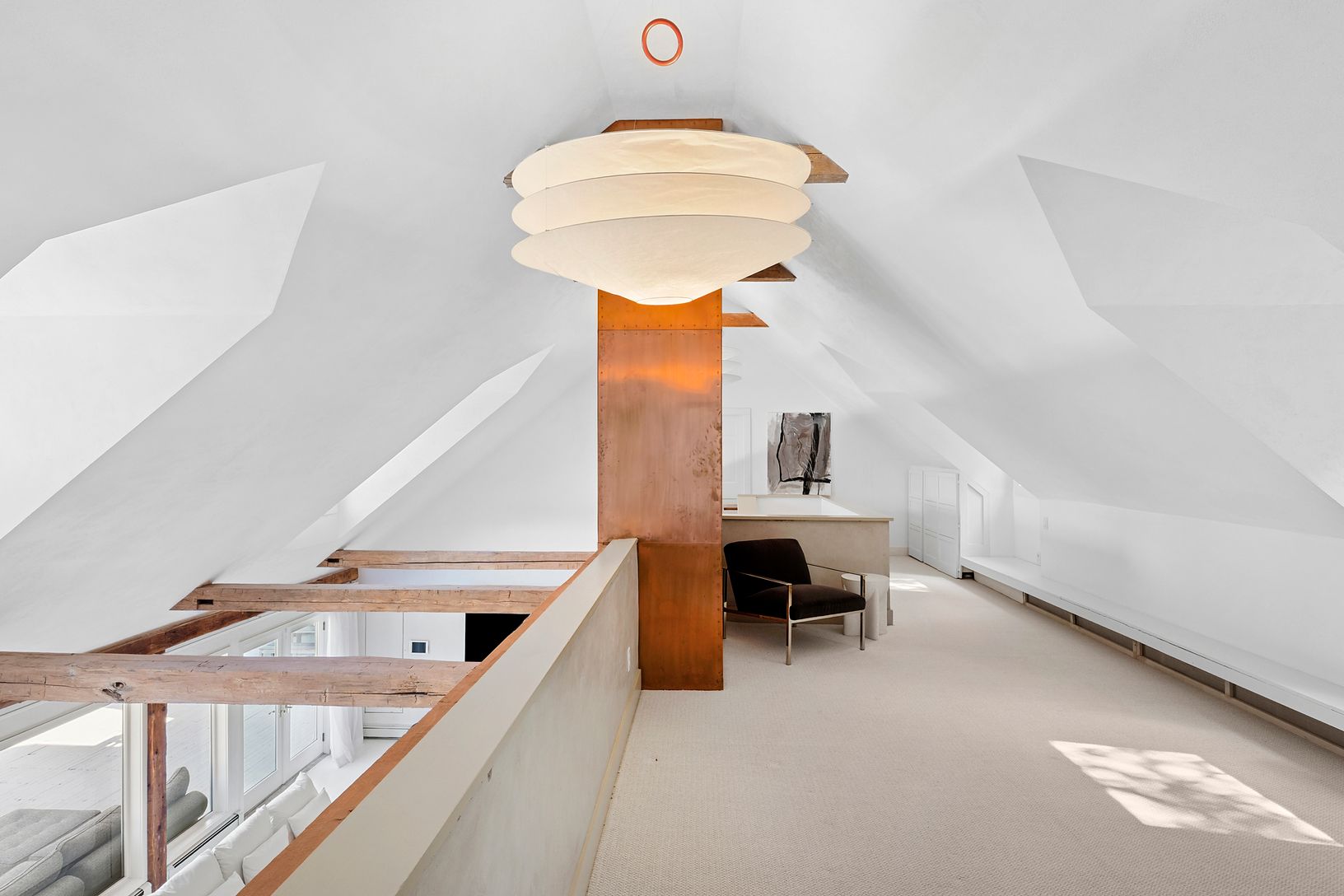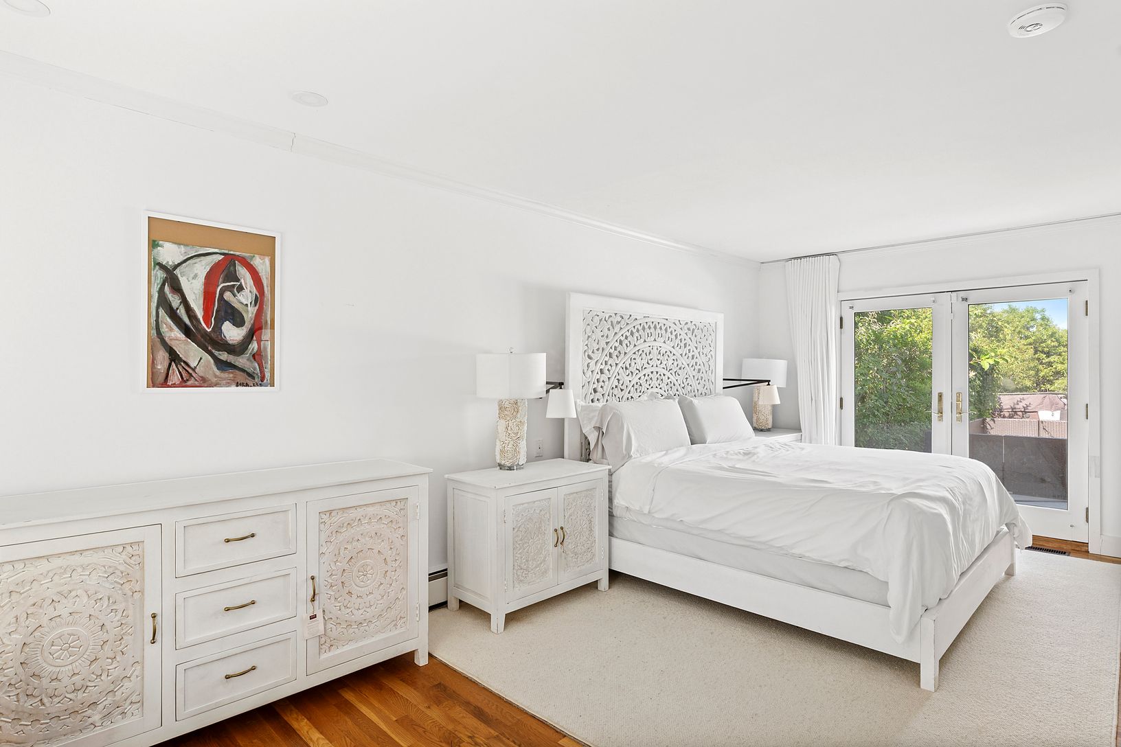 Set so high as to take advantage of the 180 degree view of Peconic Bay, this 6 bedroom, 4 bath house was meticulously designed by celebrity decorator Benjamin Noriega-Ortiz, who captured the openness and light through the use of color, materials, and architecture. The professional kitchen has high end appliances, marble counters, and plenty of space to cook and entertain. The kitchen leads to a dining area with enough seating for a dozen guest